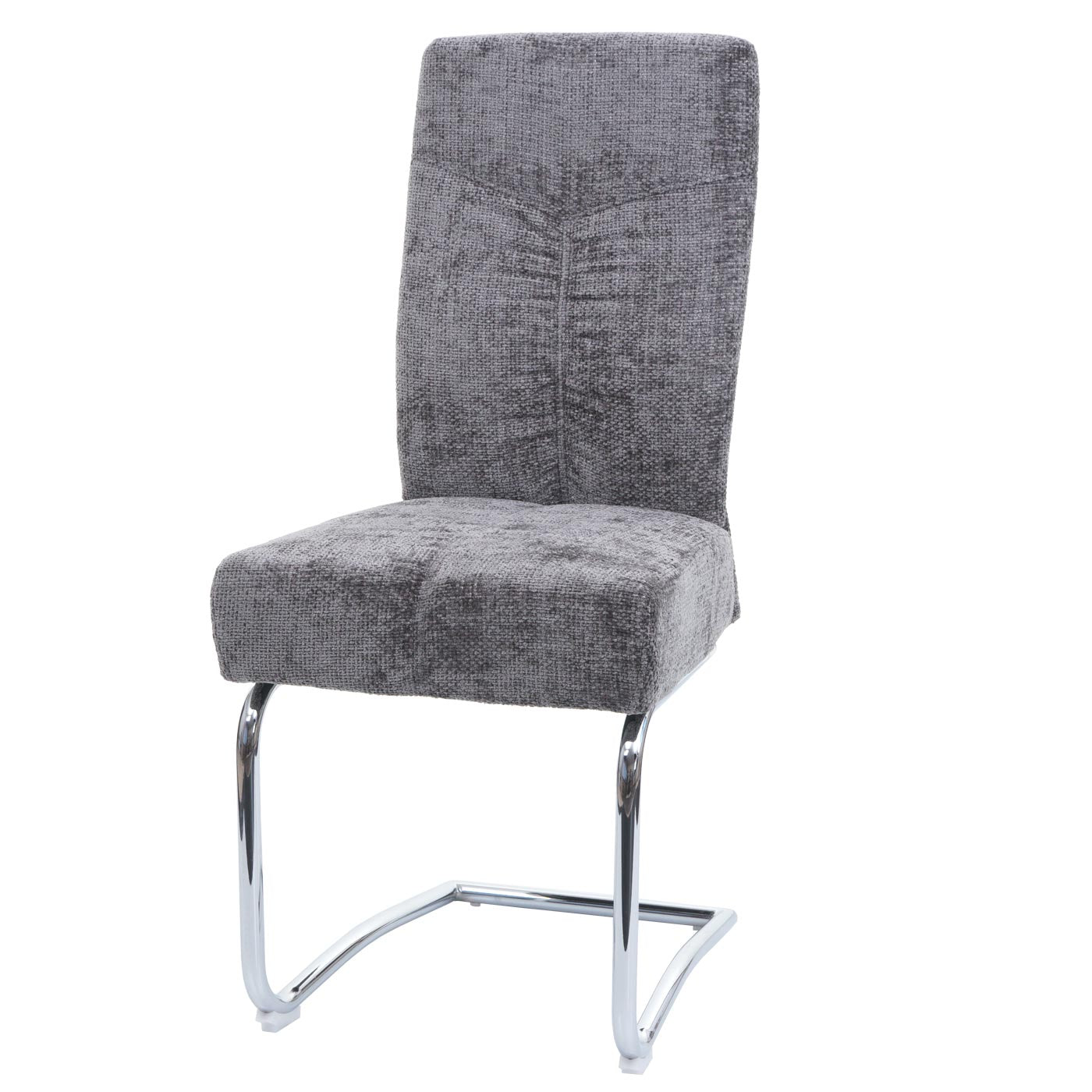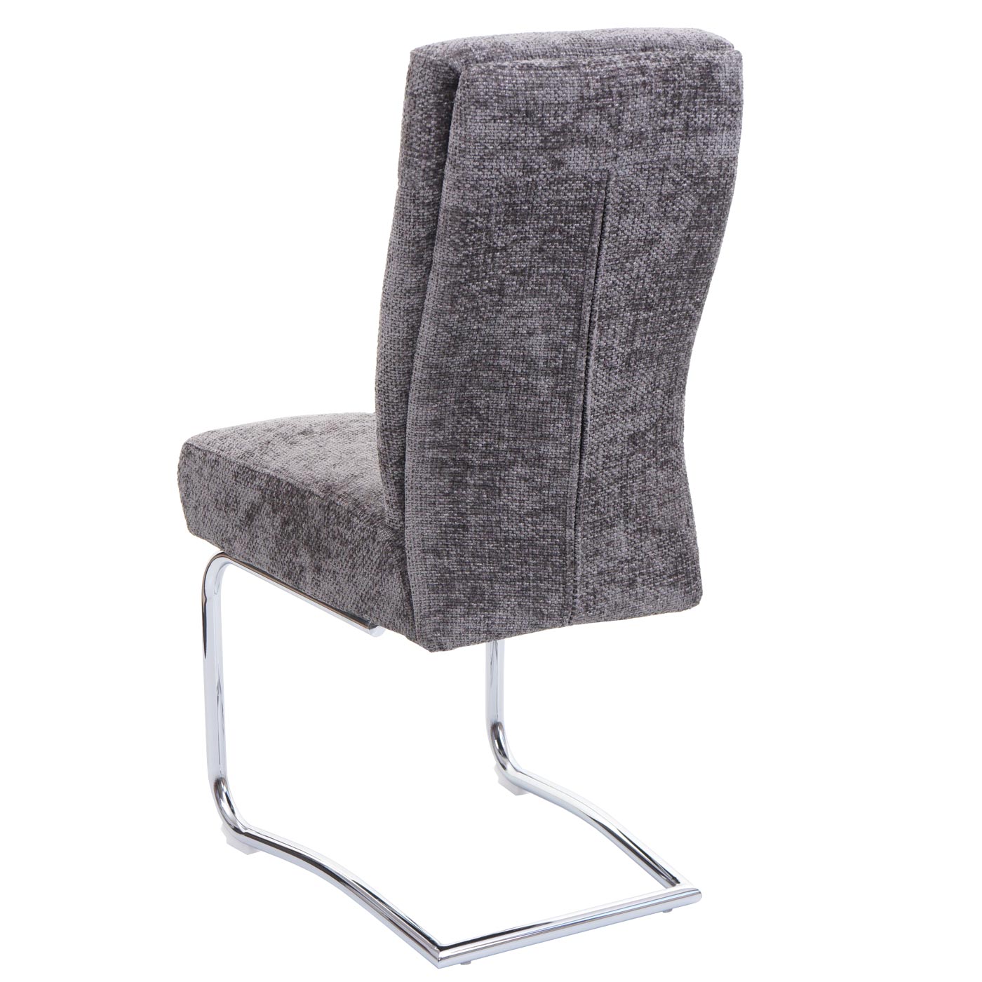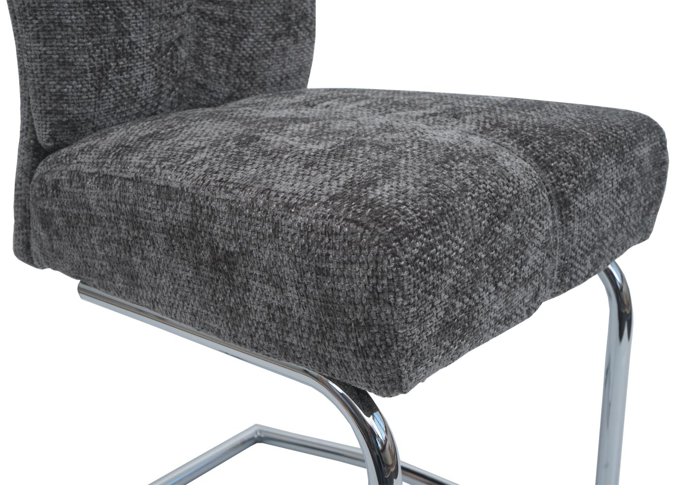 Lot de 2 chaises de salle à manger en métal et tissu chenille gris foncé cadre arrondi coutures décoratives 04_0007396
