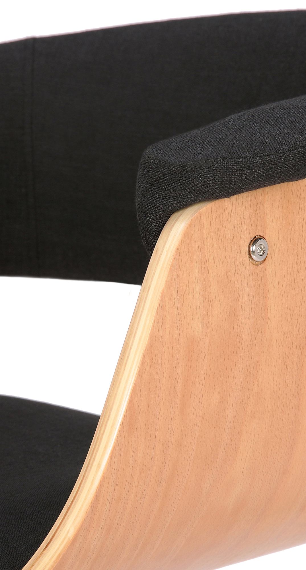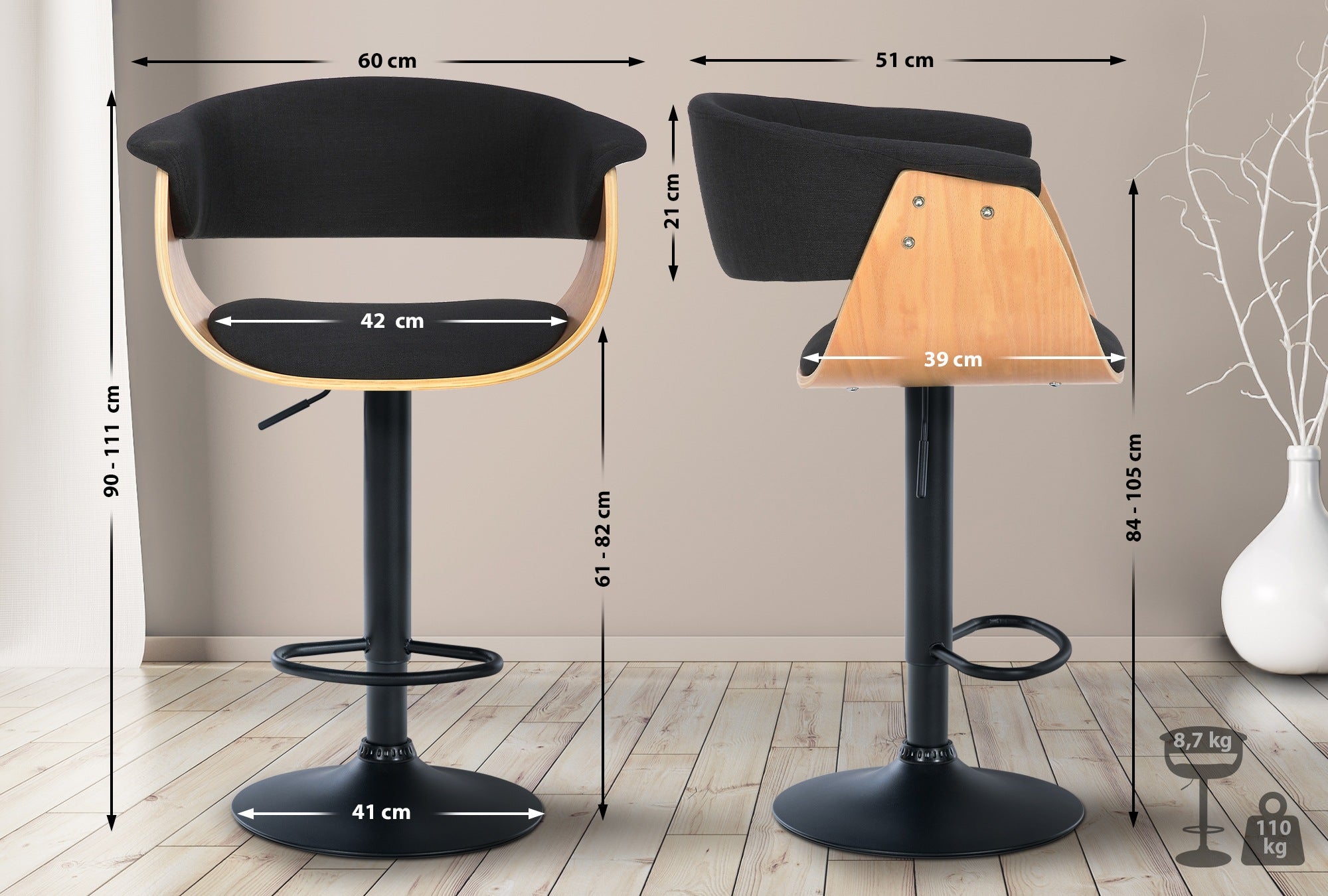 Tabouret de bar design moderne siège réglable en hauteur et pivotant en tissu noir coque en bois et métal noir 10_0005454