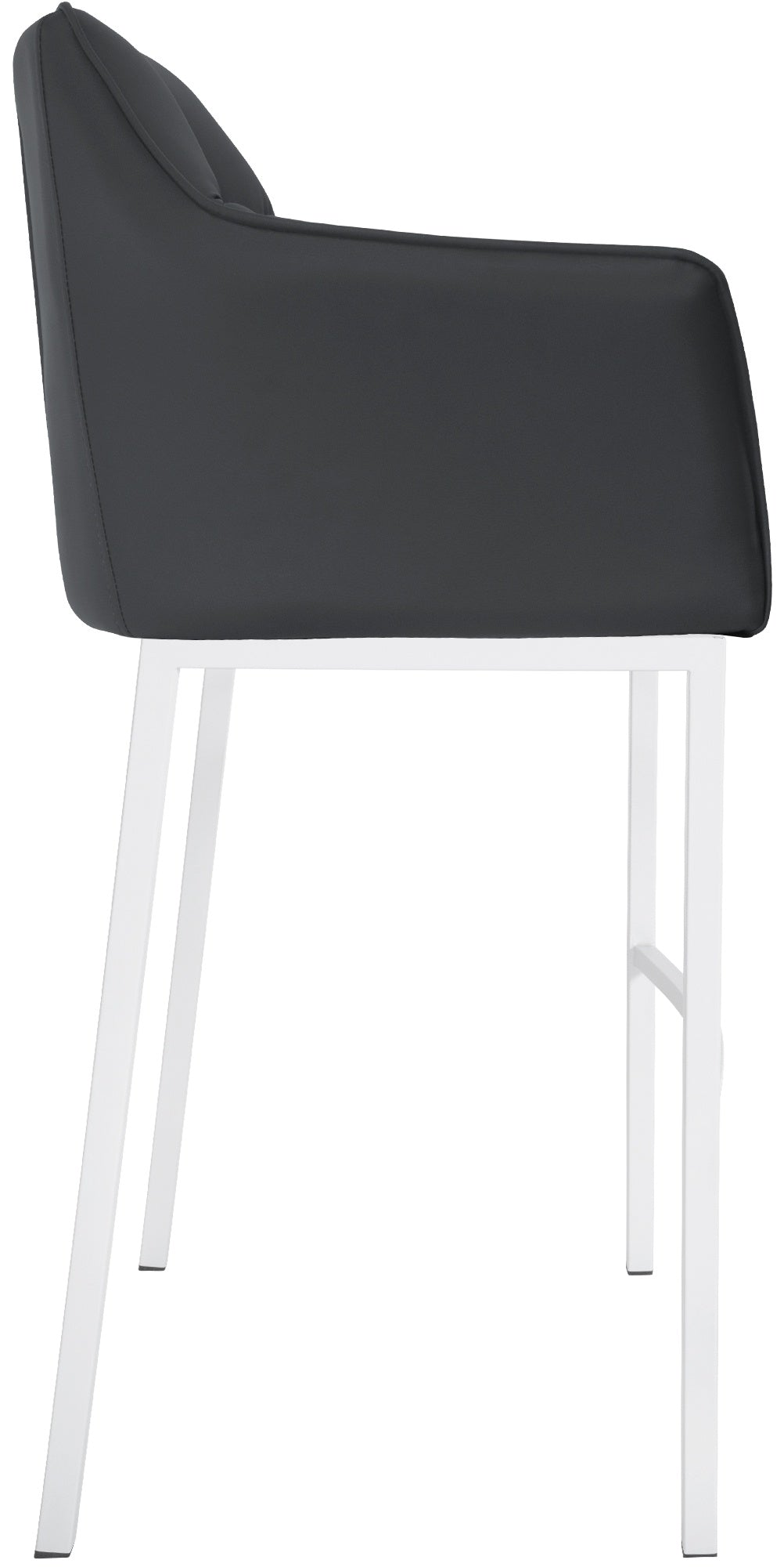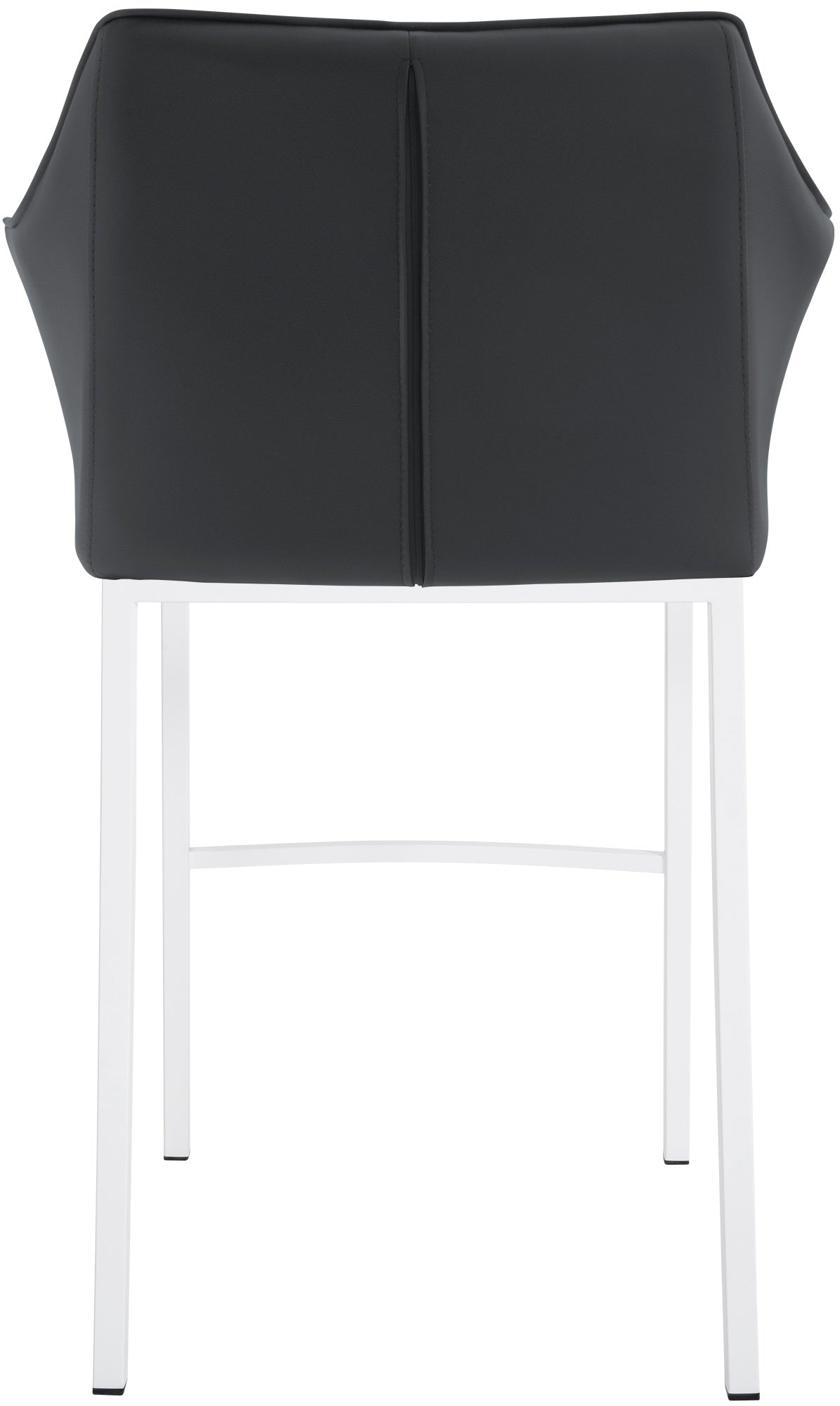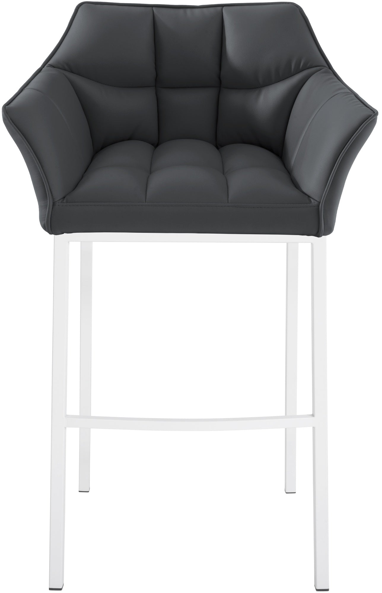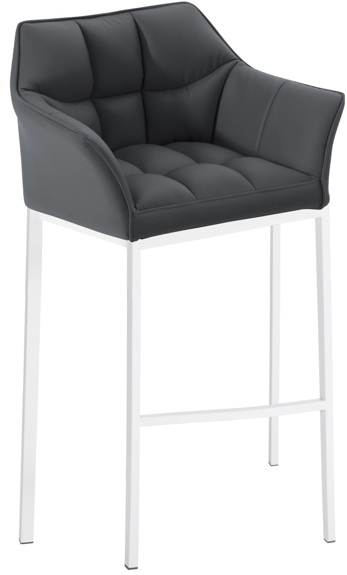 Tabouret de bar x1 assise enveloppante capitonnée en PVC gris foncé avec structure à 4 pieds en métal blanc 10_0006499