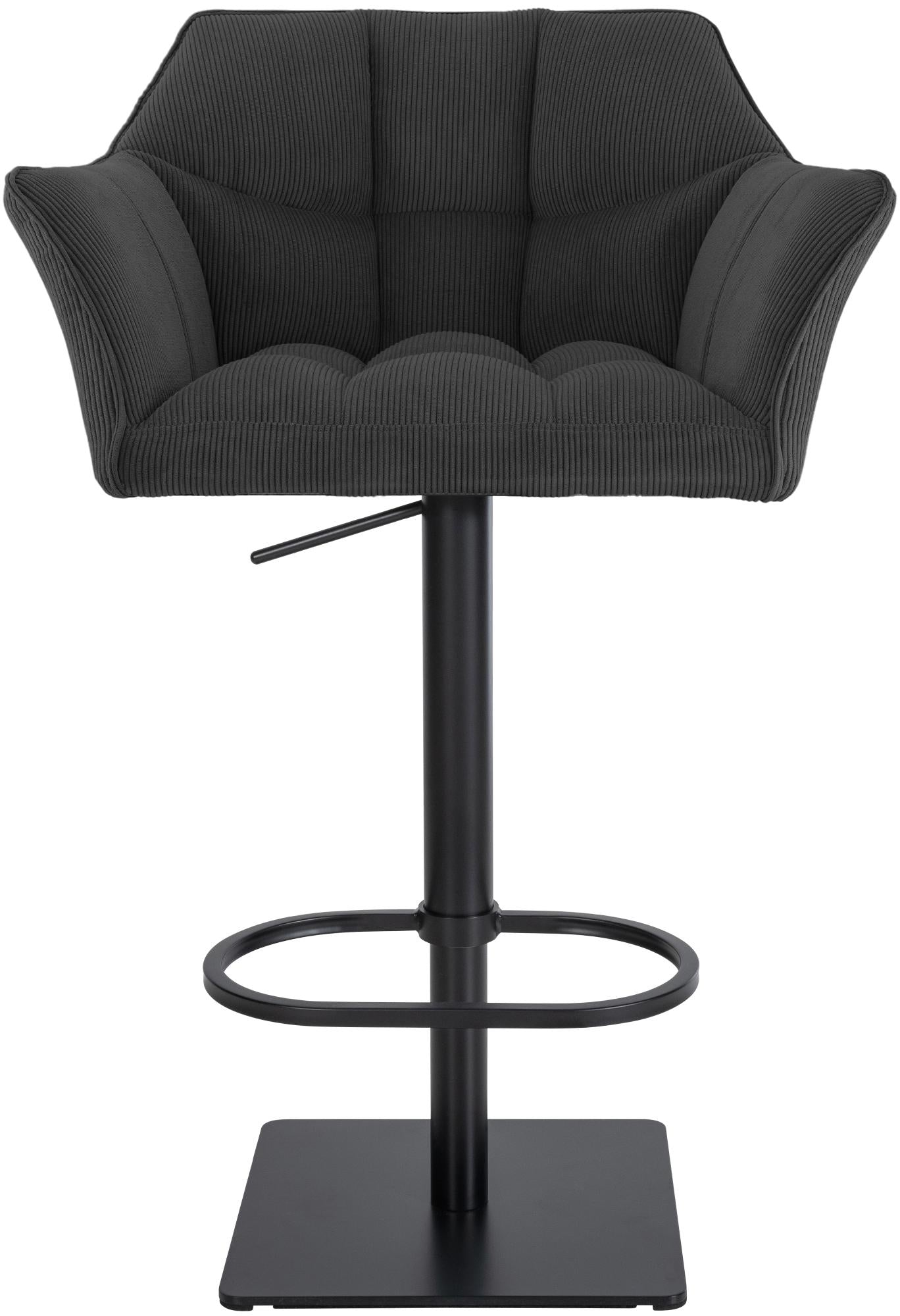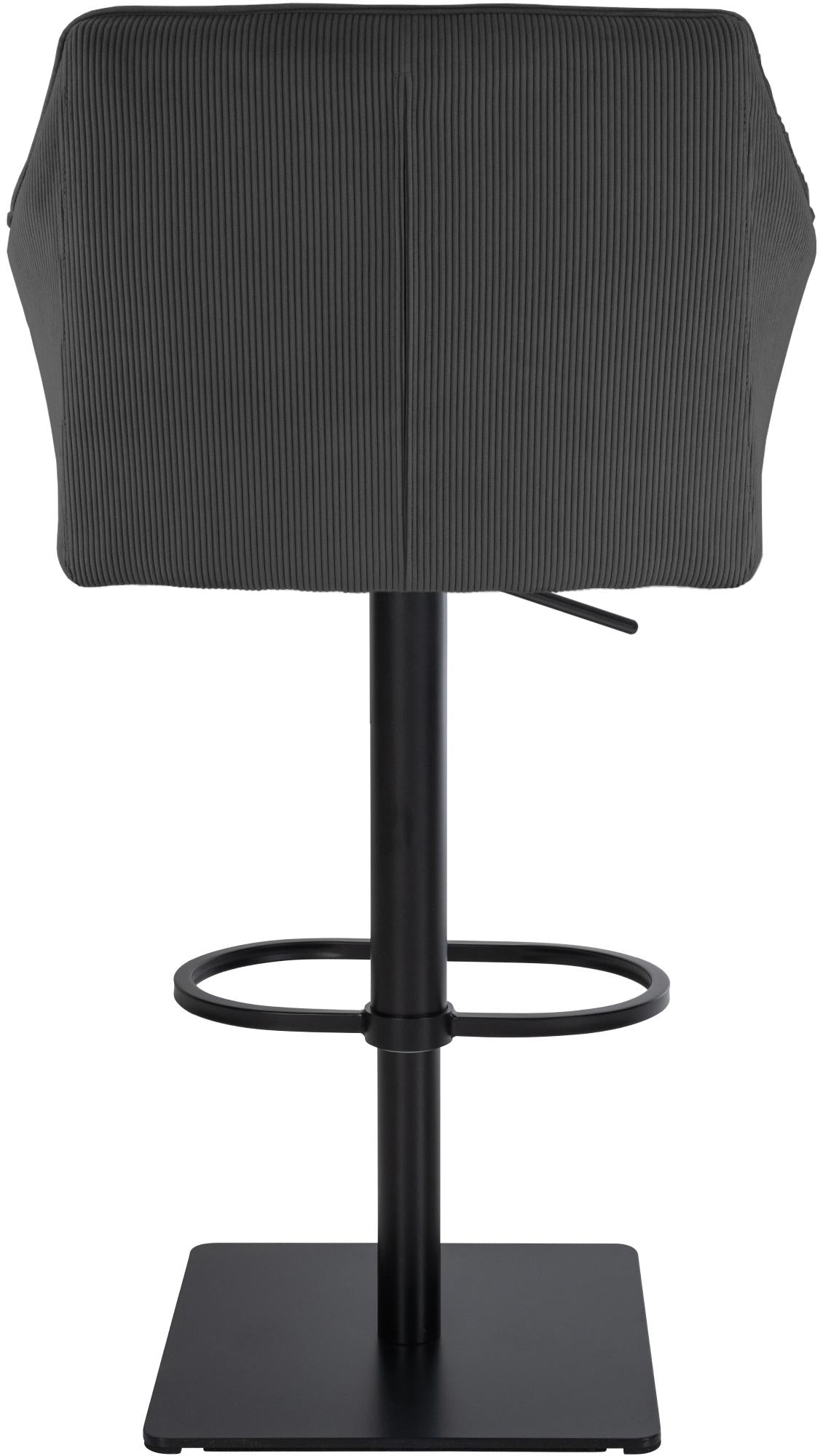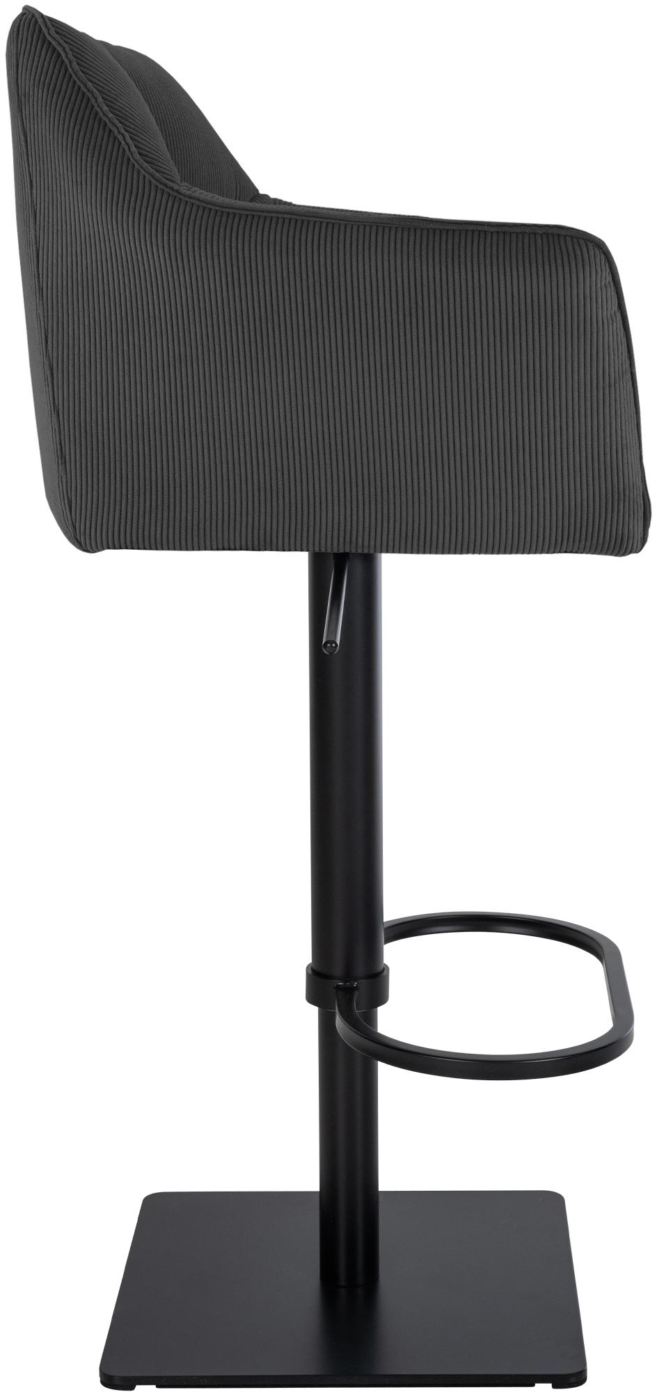 Tabouret de bar x1 réglable en velours côtelé gris foncé assise enveloppante capitonnée et avec base carrée en métal noir 10_0005892