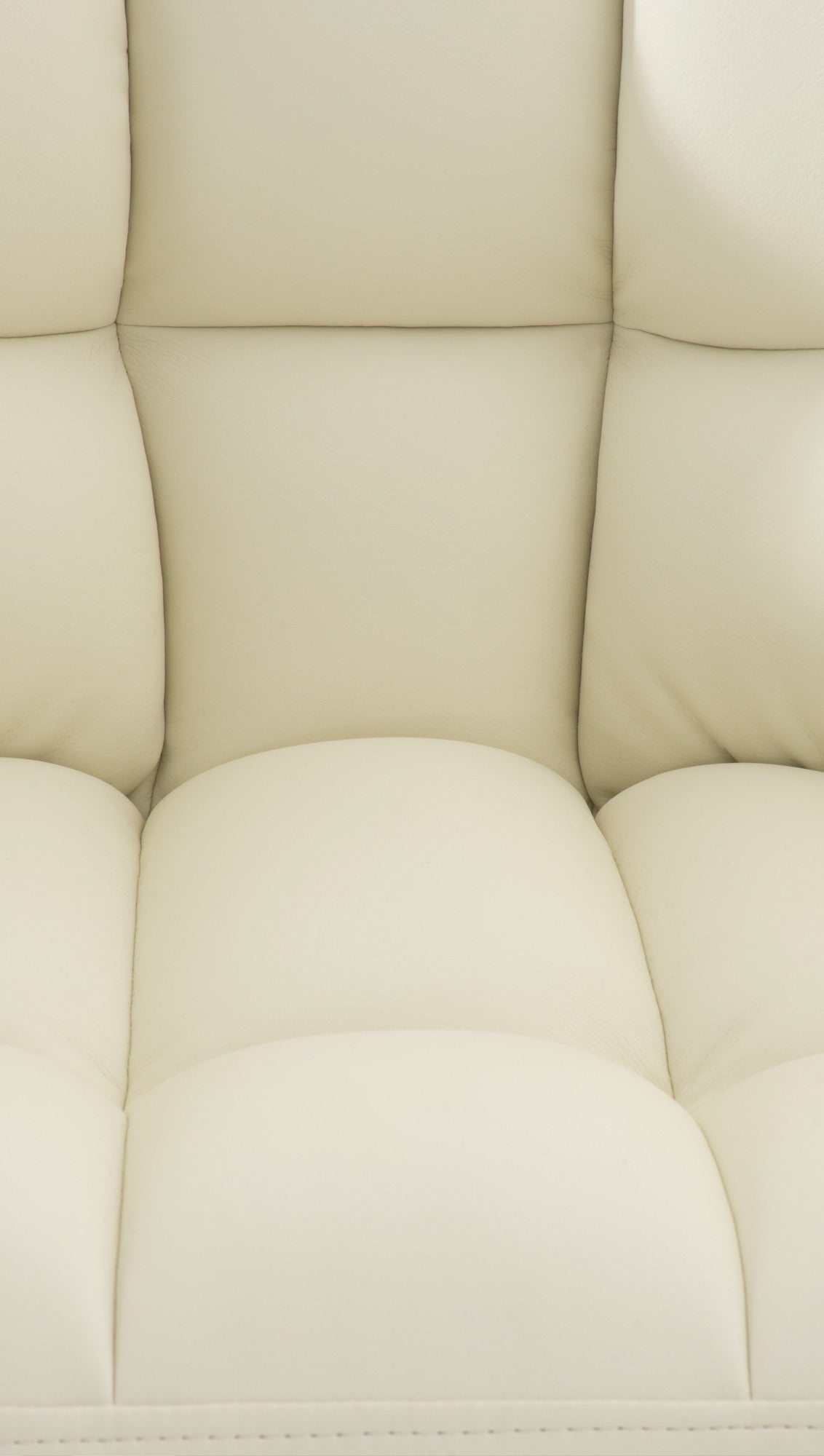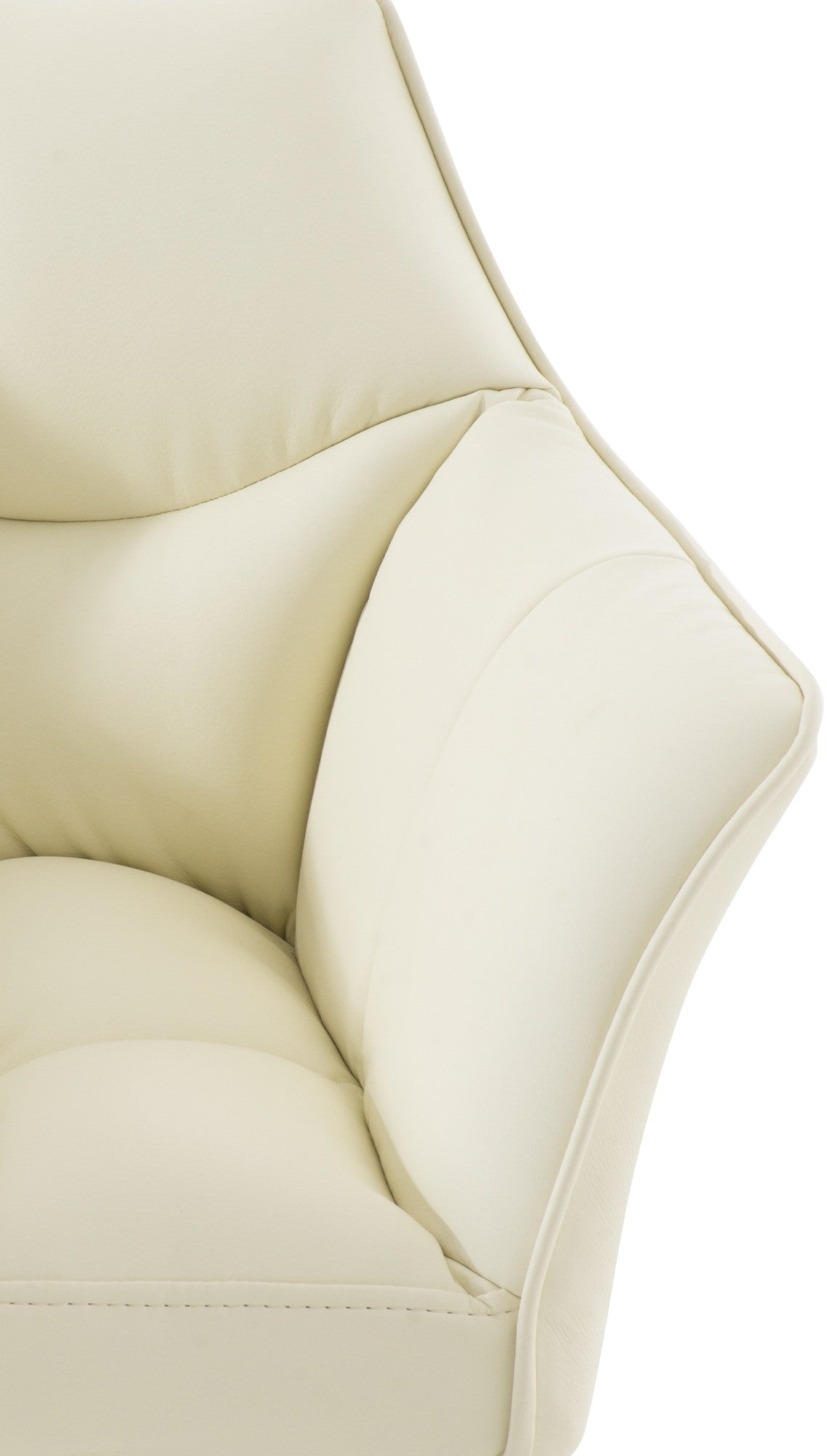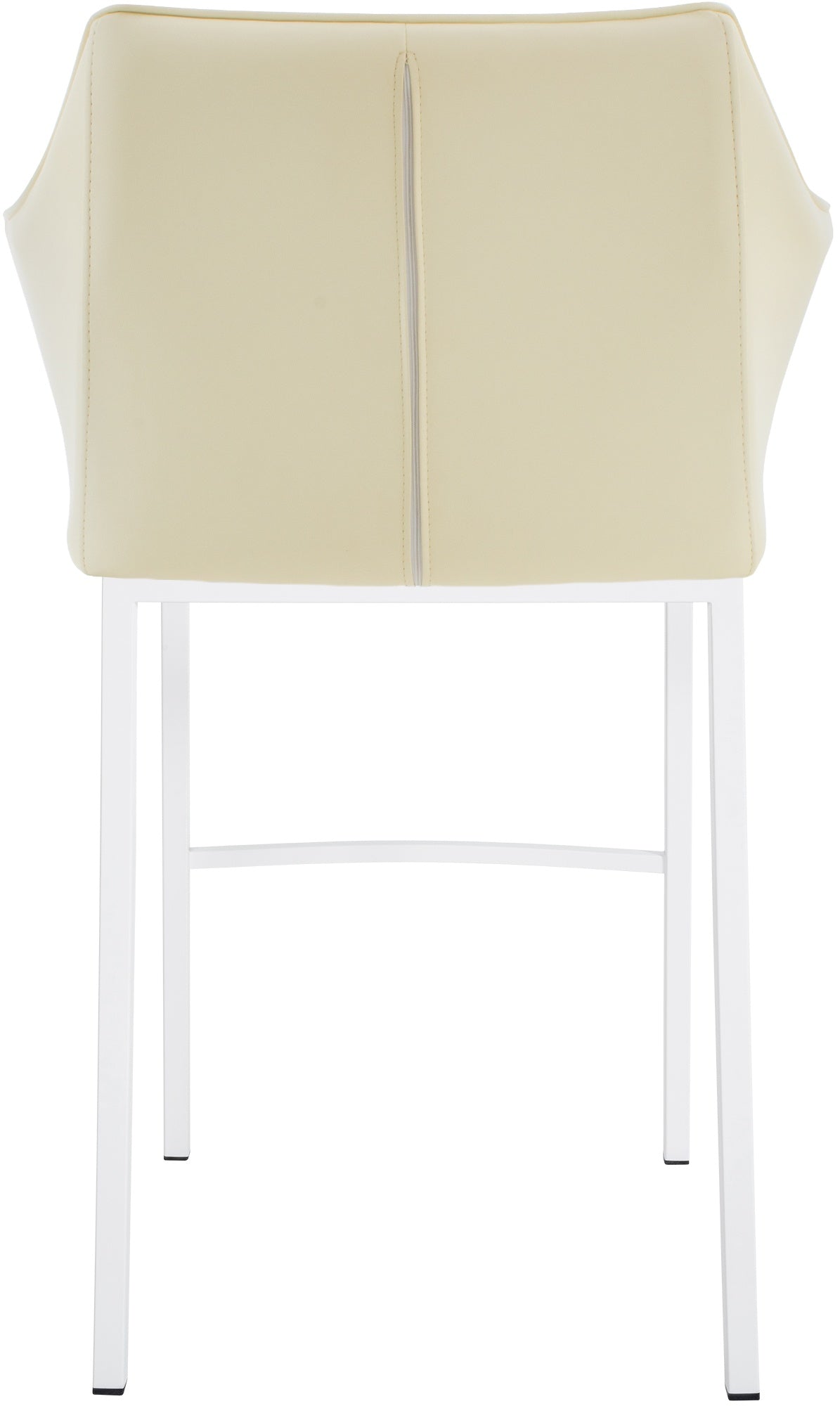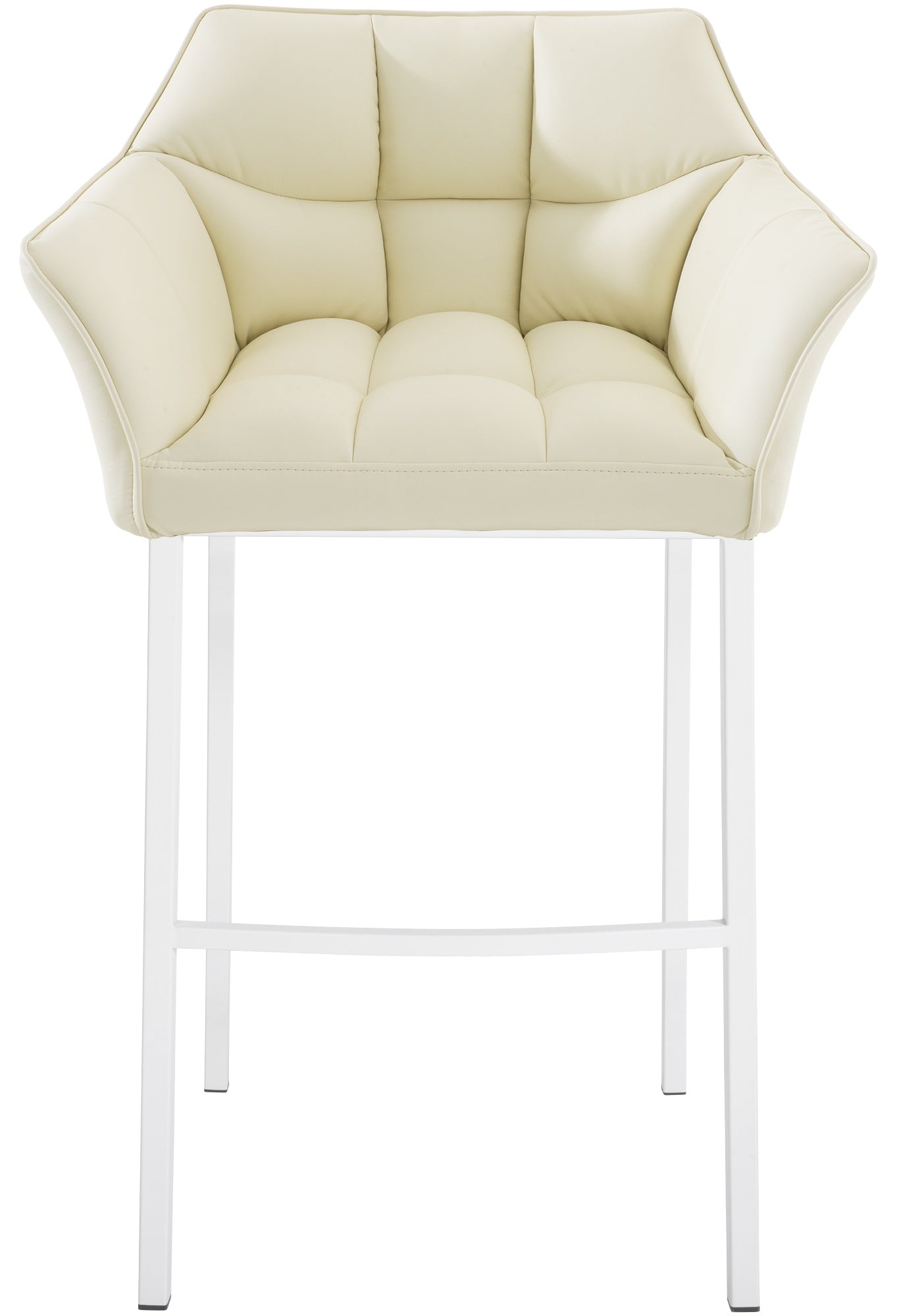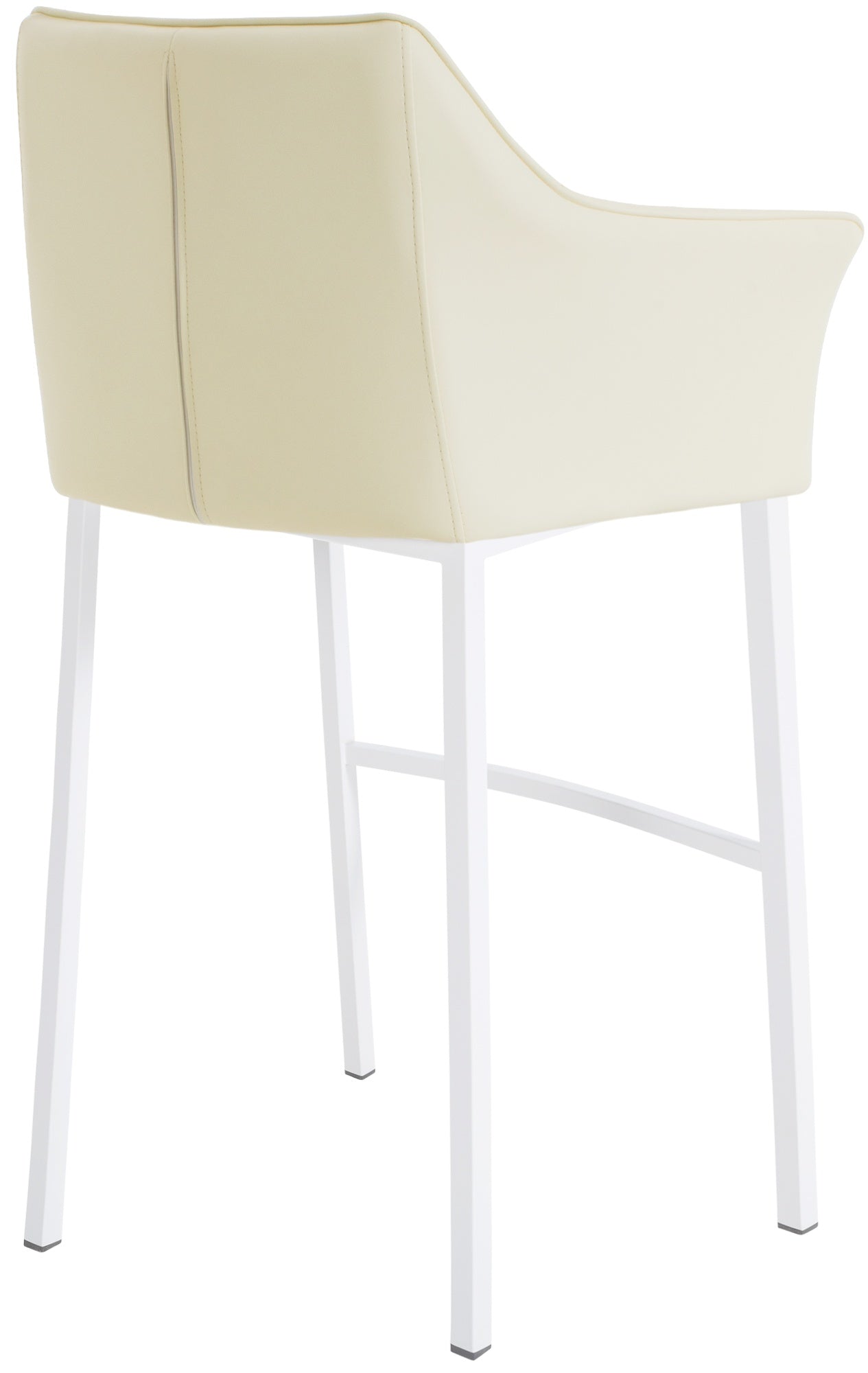 Tabouret de bar chaise haute de comptoir couture carrées assise en PVC crème 4 pieds stables en métal blanc 10_0004729