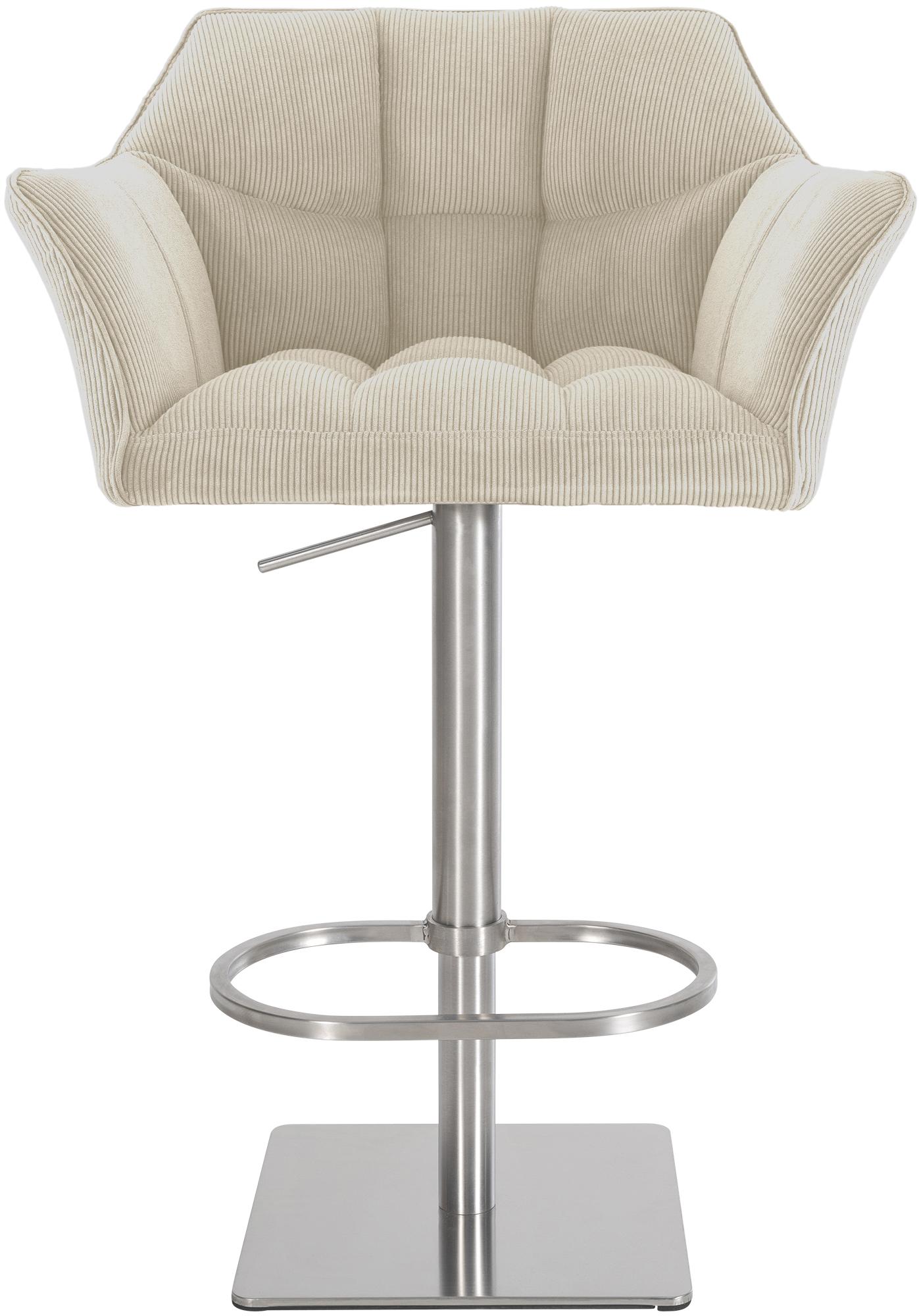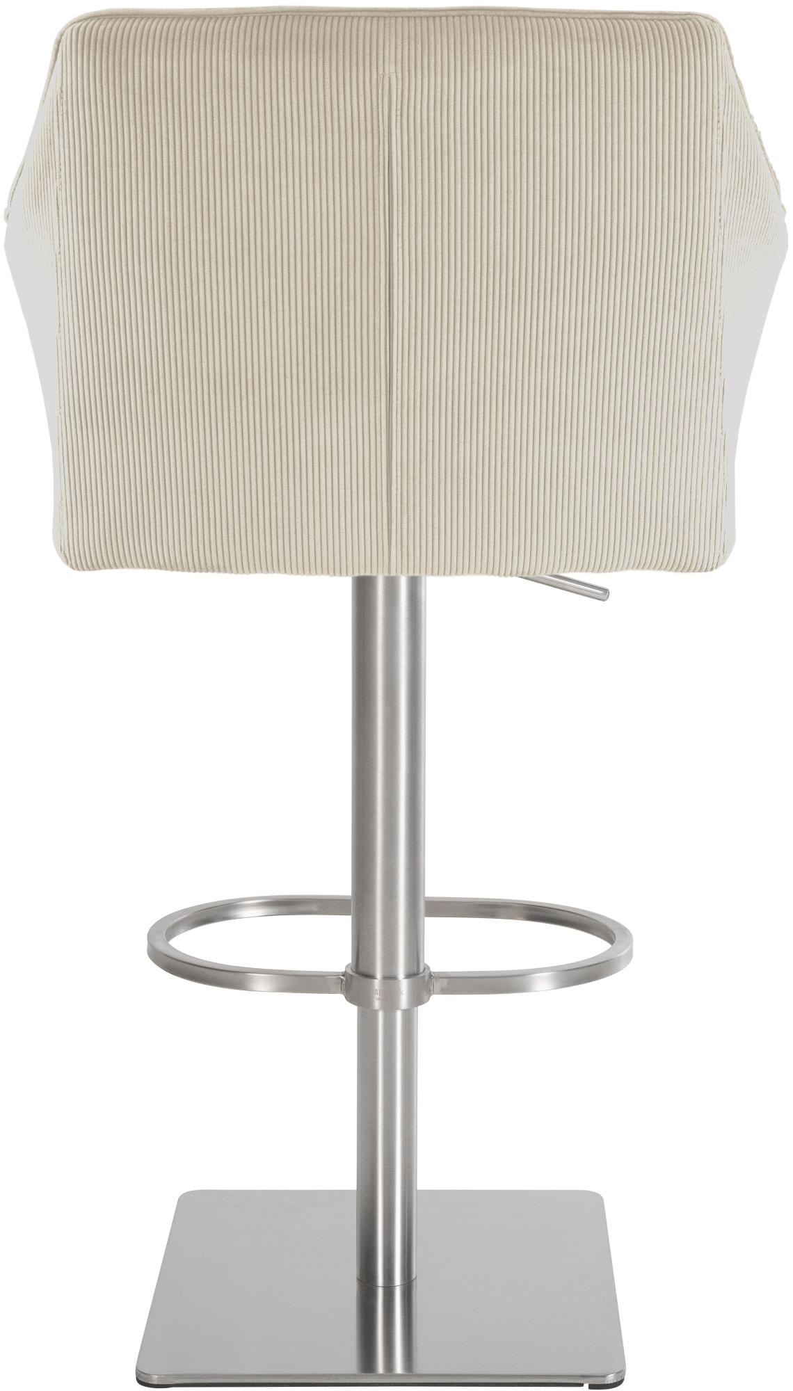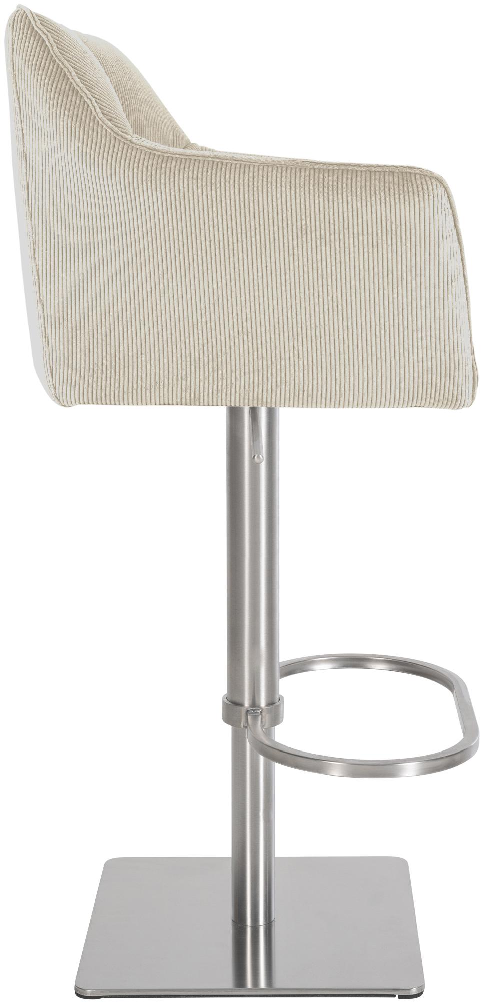 Tabouret de bar x1 réglable en velours côtelé crème assise enveloppante capitonnée et avec base carrée en acier inoxydable 10_0005895