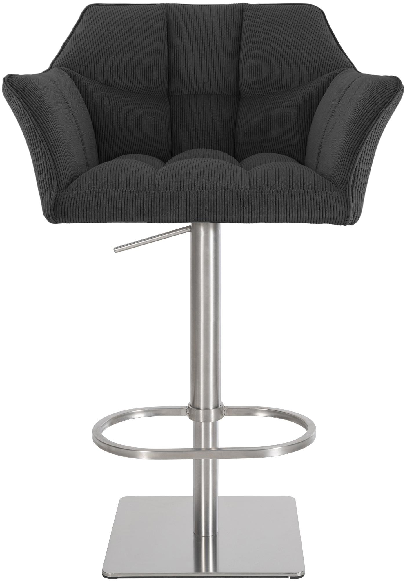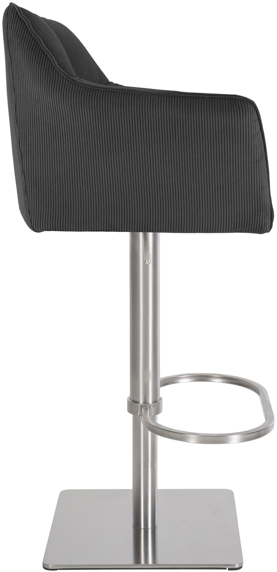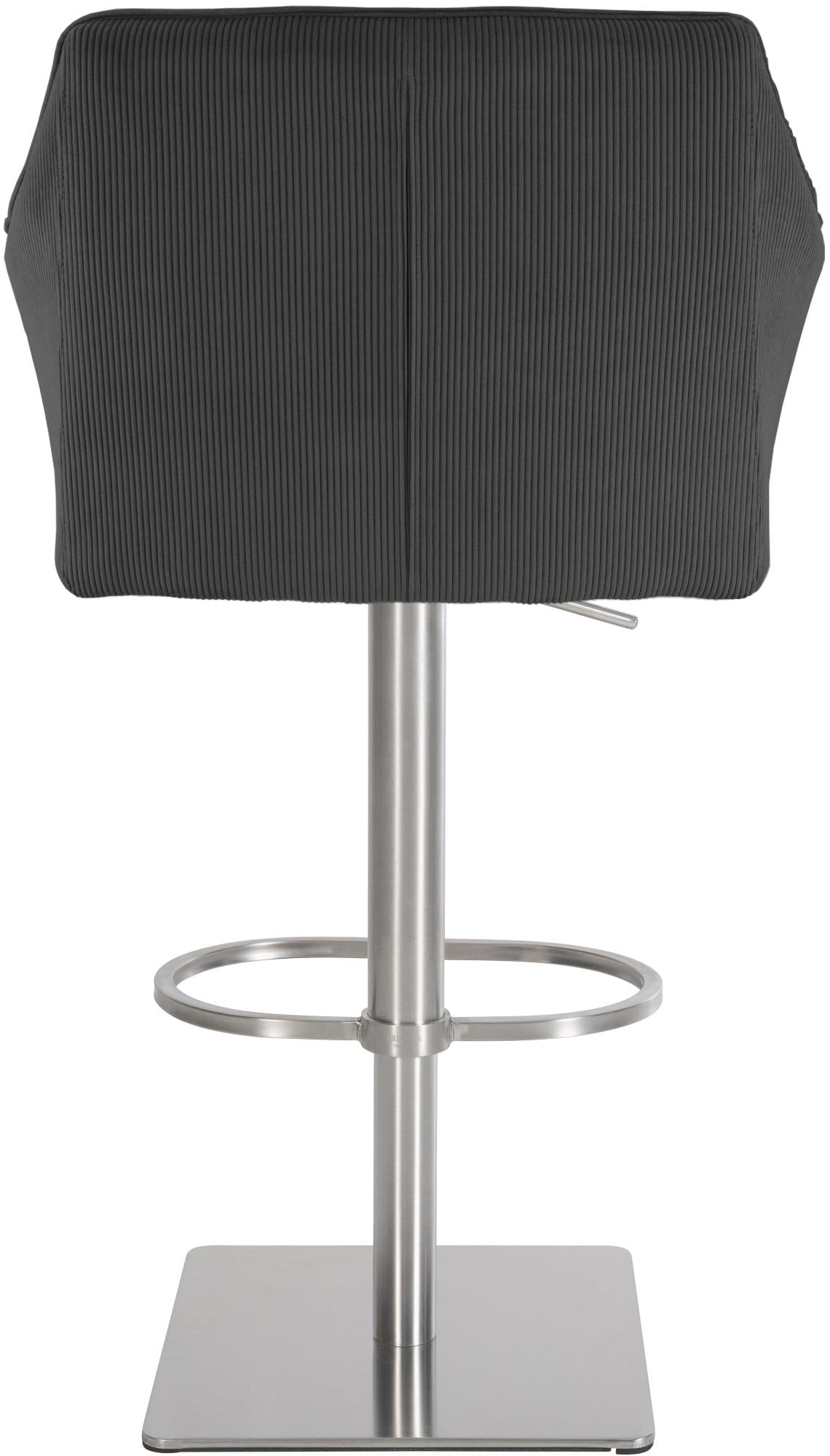 Tabouret de bar x1 réglable en velours côtelé gris foncé assise enveloppante capitonnée et avec base carrée en acier inoxydable 10_0005896