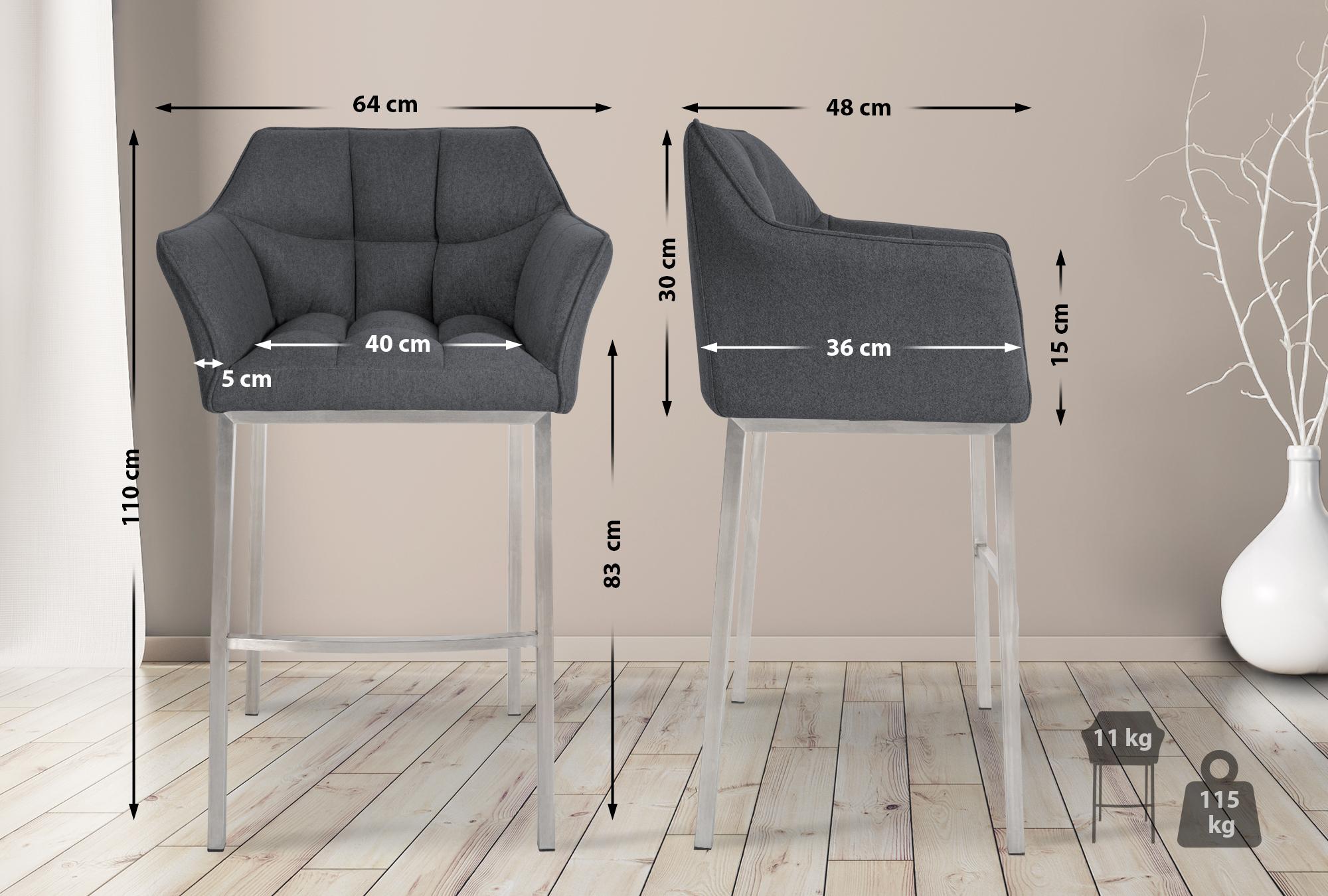 Tabouret de bar x1 assise enveloppante capitonnée en feutrine gris foncé avec structure à 4 pieds en acier inoxydable 10_0006481