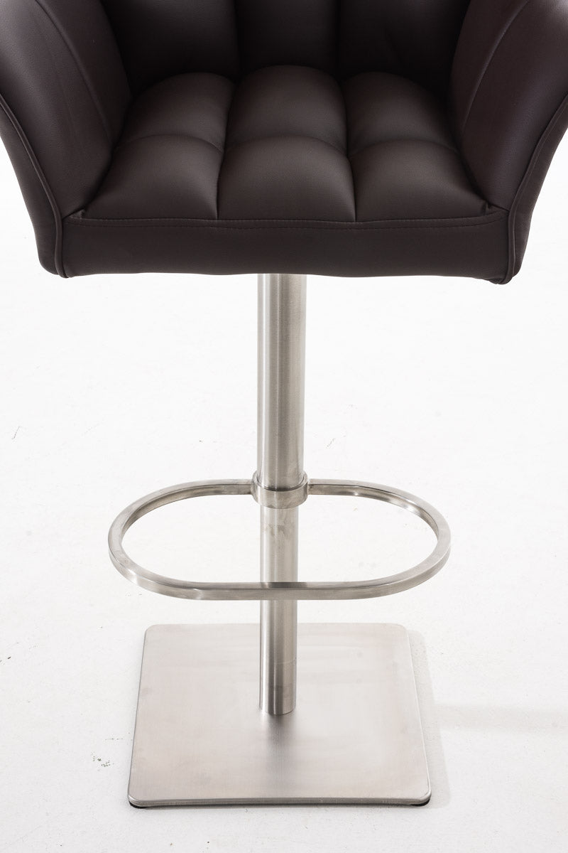 Tabouret de bar x1 réglable en similicuir marron assise enveloppante capitonnée avec base carrée en acier inoxydable 10_0006502
