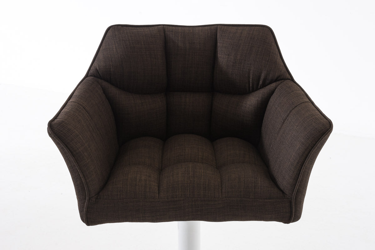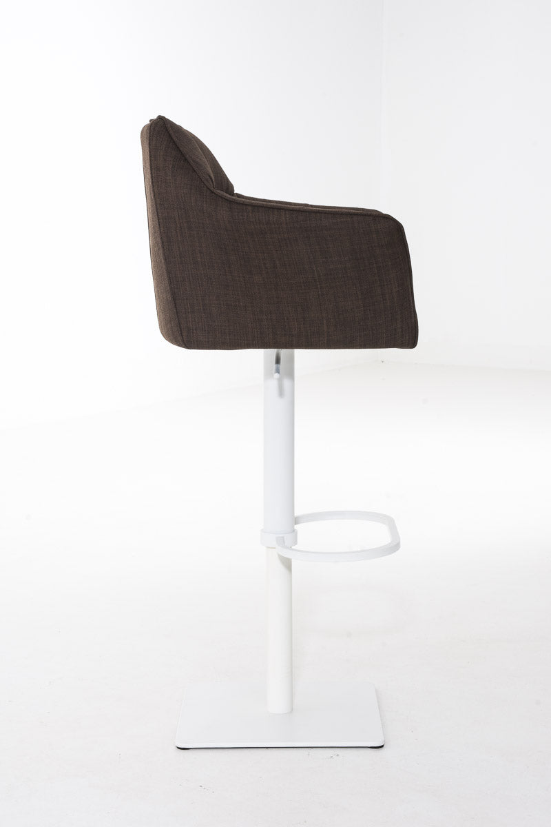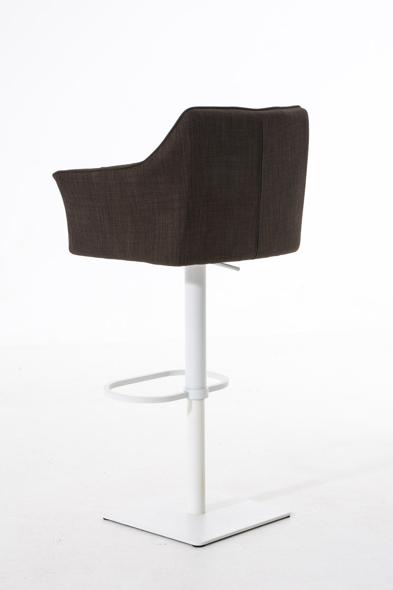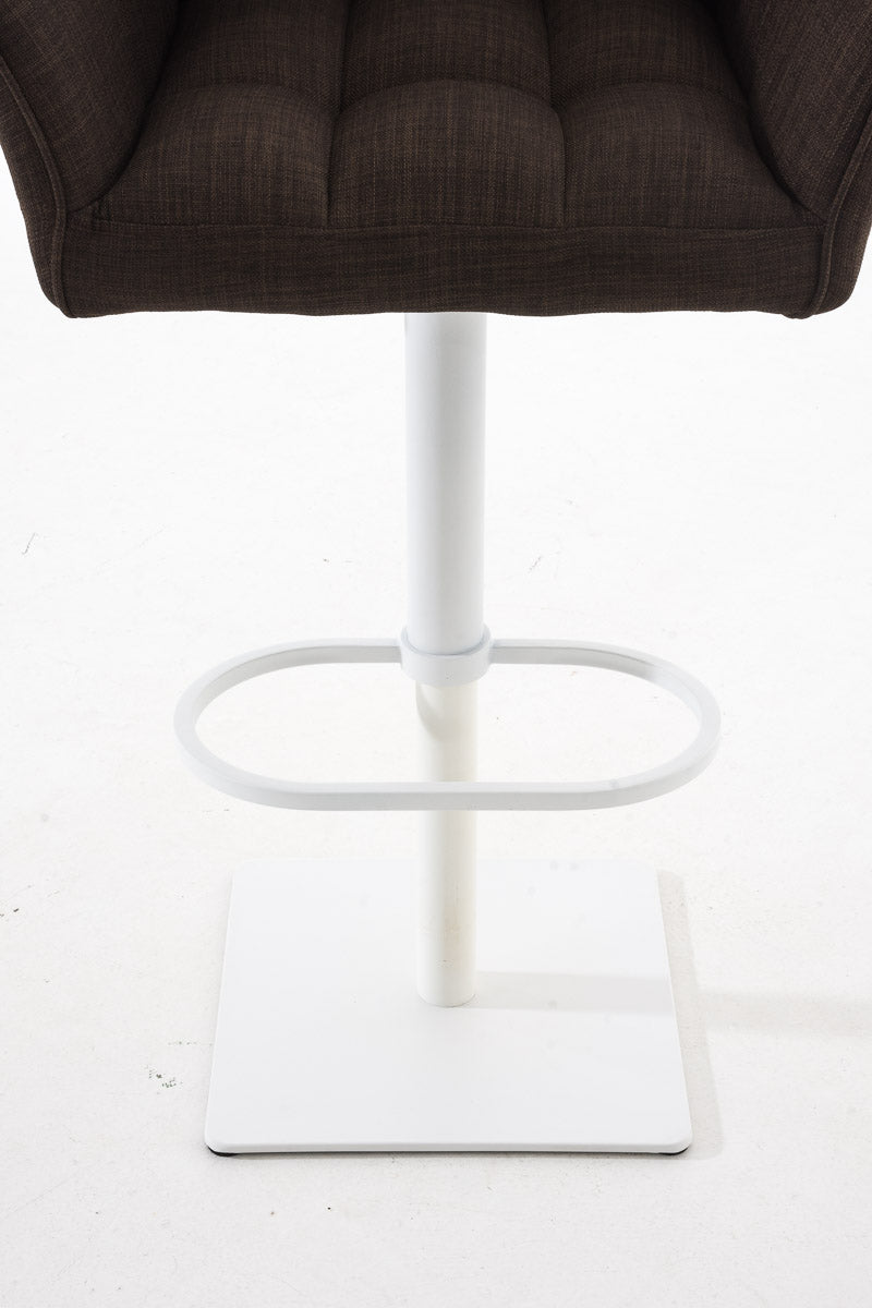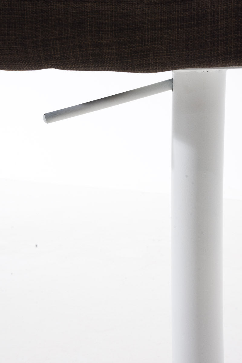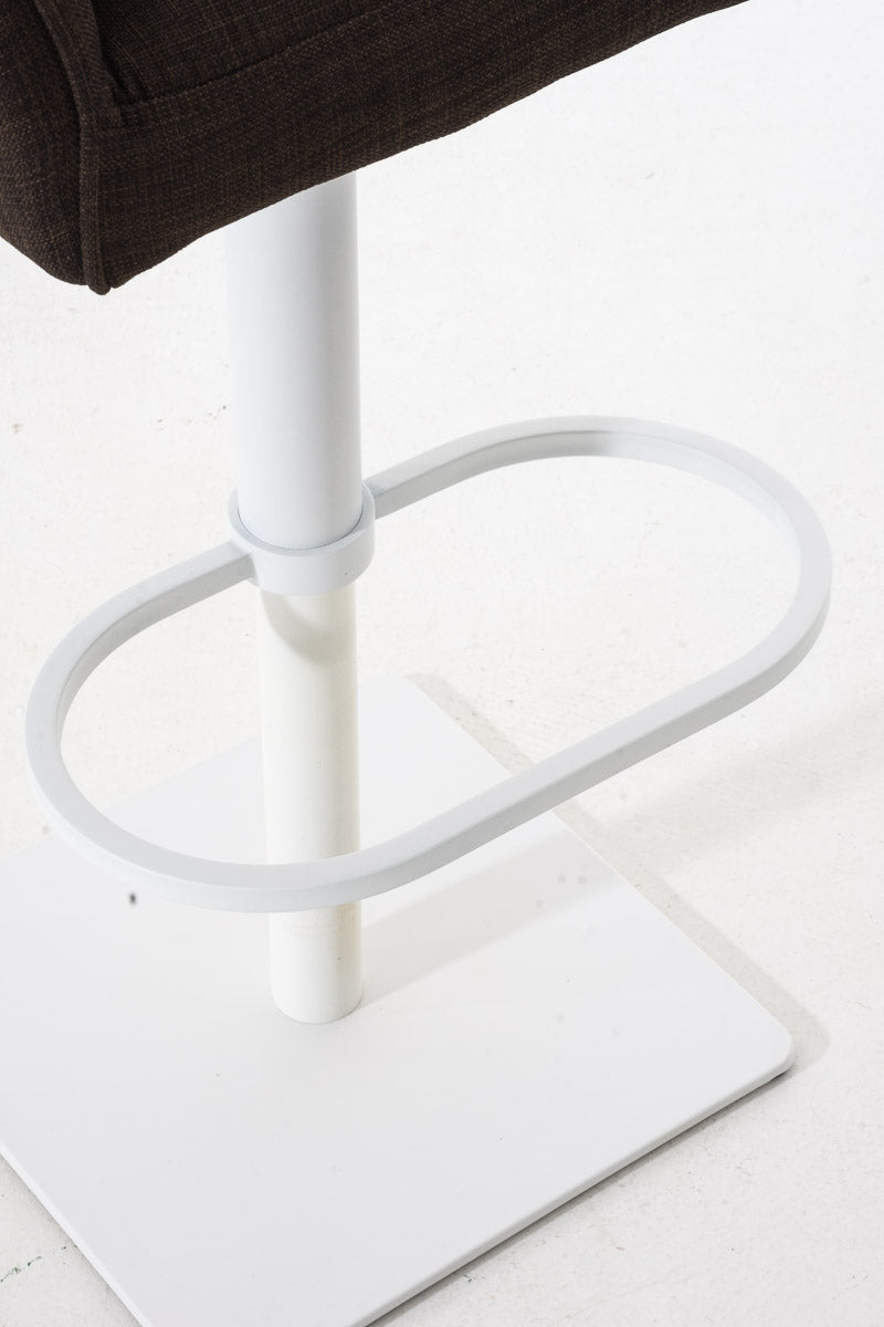Tabouret de bar chaise haute de comptoir couture carrées assise en tissu marron cadre en métal blanc 10_0004752