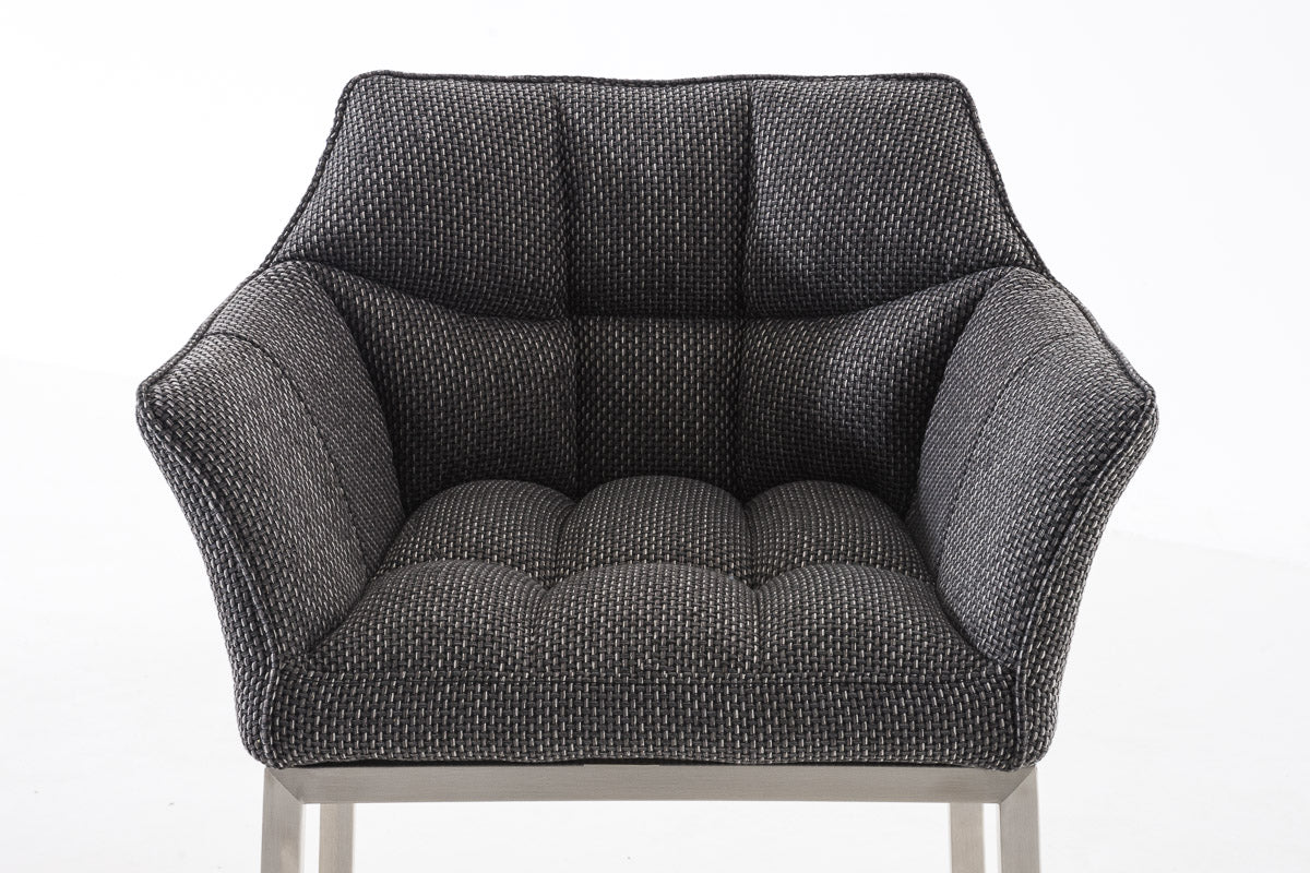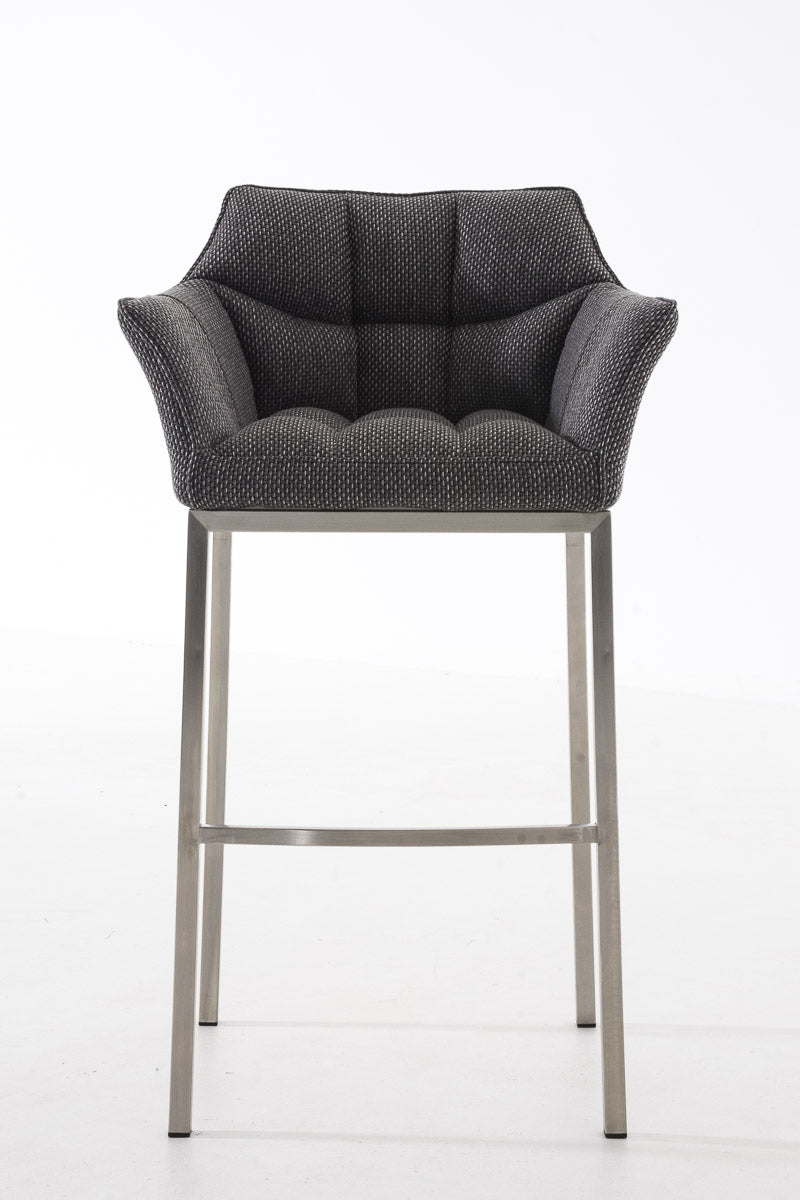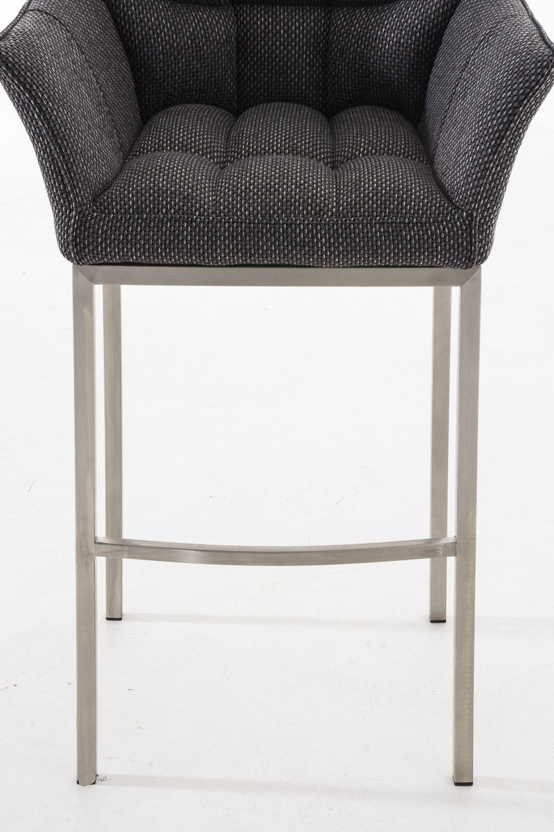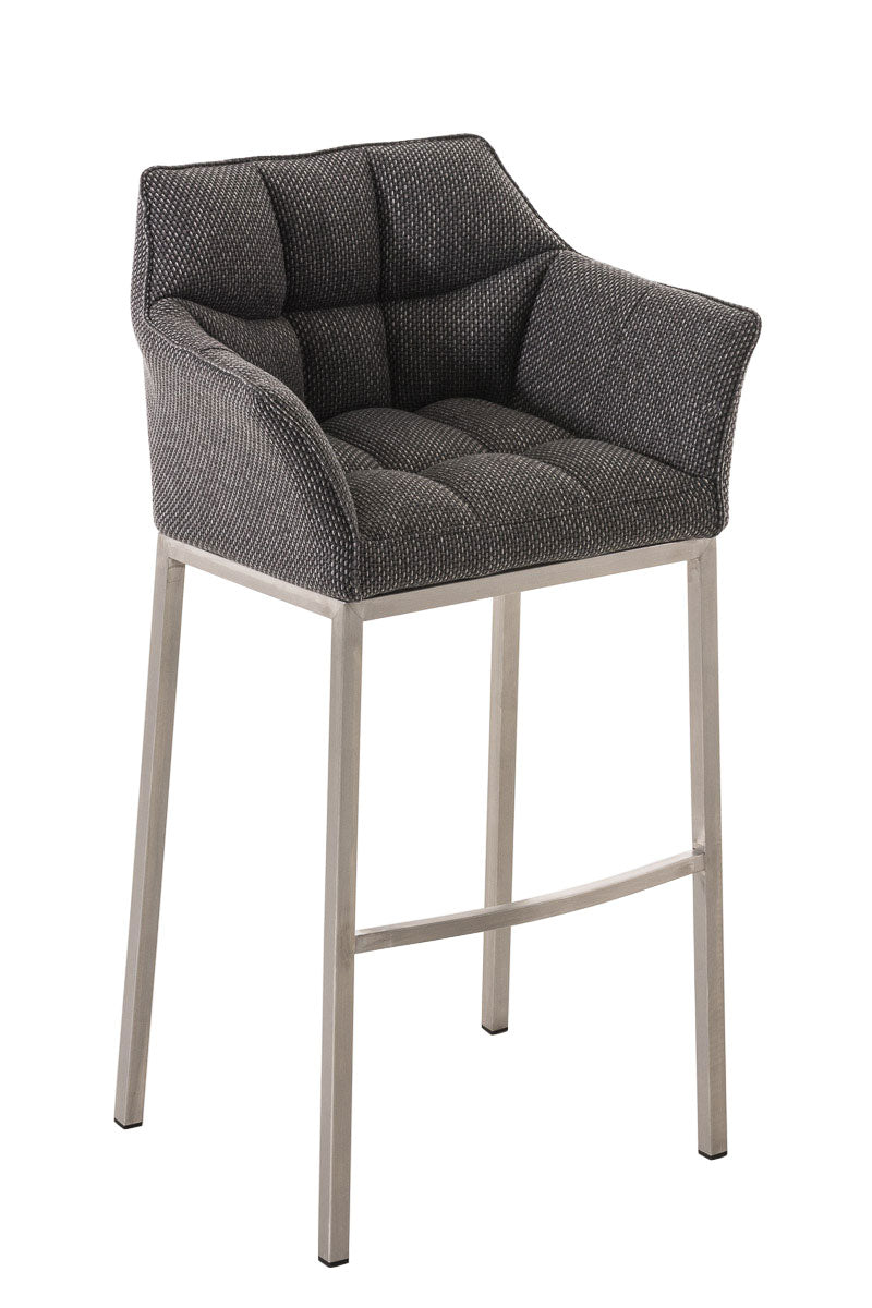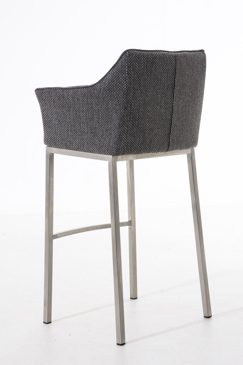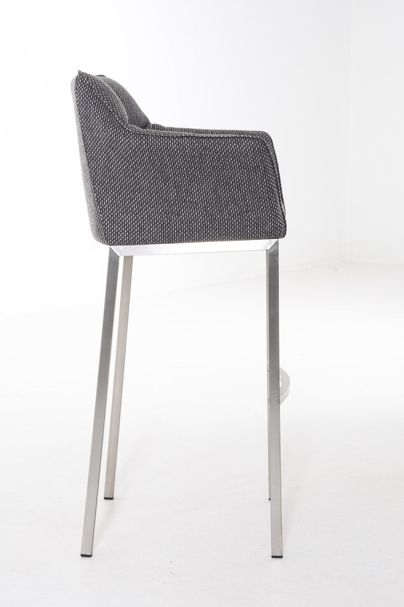 Tabouret de bar chaise haute de comptoir couture carrées assise en tissu gris 4 pieds stables en acier inoxydable 10_0004726