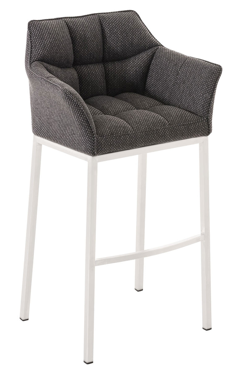 Tabouret de bar chaise haute de comptoir couture carrées assise en tissu gris 4 pieds stables en métal blanc 10_0004762
