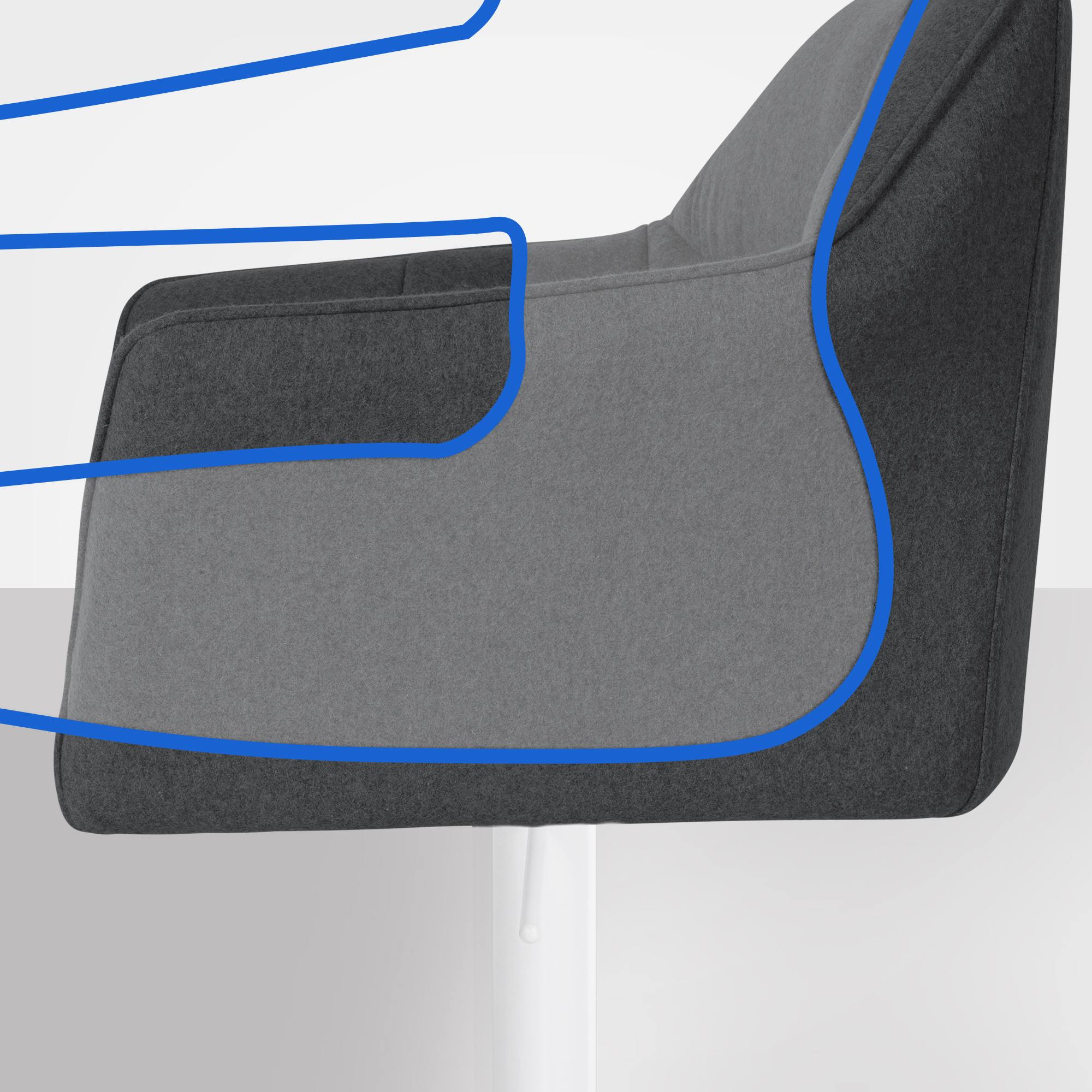 Le dossier et les accoudoirs offrent un confort d'assise supplémentaire et une posture détendue. Le tabouret de bar est réglable en hauteur en continu, permettant de régler la hauteur d'assise entre 58 et 83 cm. La fonction pivotante à 360 degrés permet des mouvements sans effort. Le repose-pieds intégré soulage vos jambes.