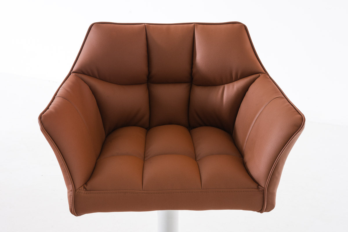 Tabouret de bar x1 réglable en similicuir marron clair assise enveloppante capitonnée avec base carrée en métal blanc 10_0006302