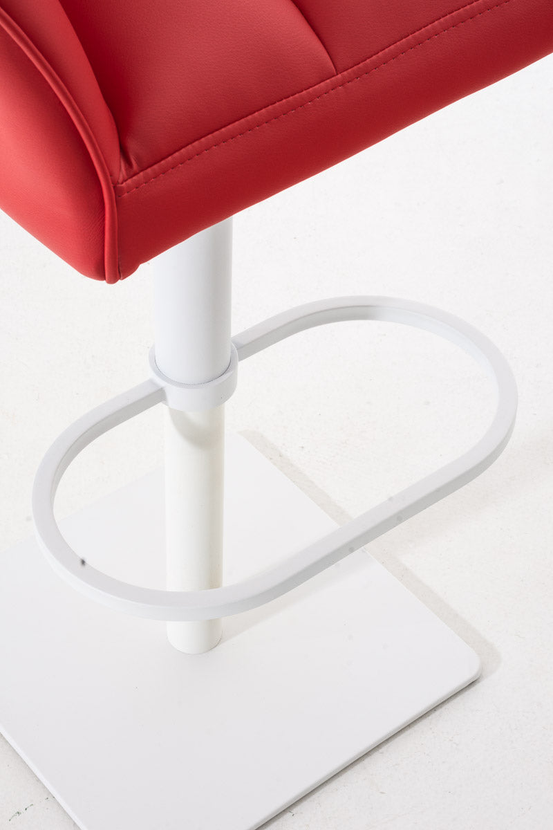 Tabouret de bar x1 réglable en similicuir rouge assise enveloppante capitonnée avec base carrée en métal blanc 10_0006344