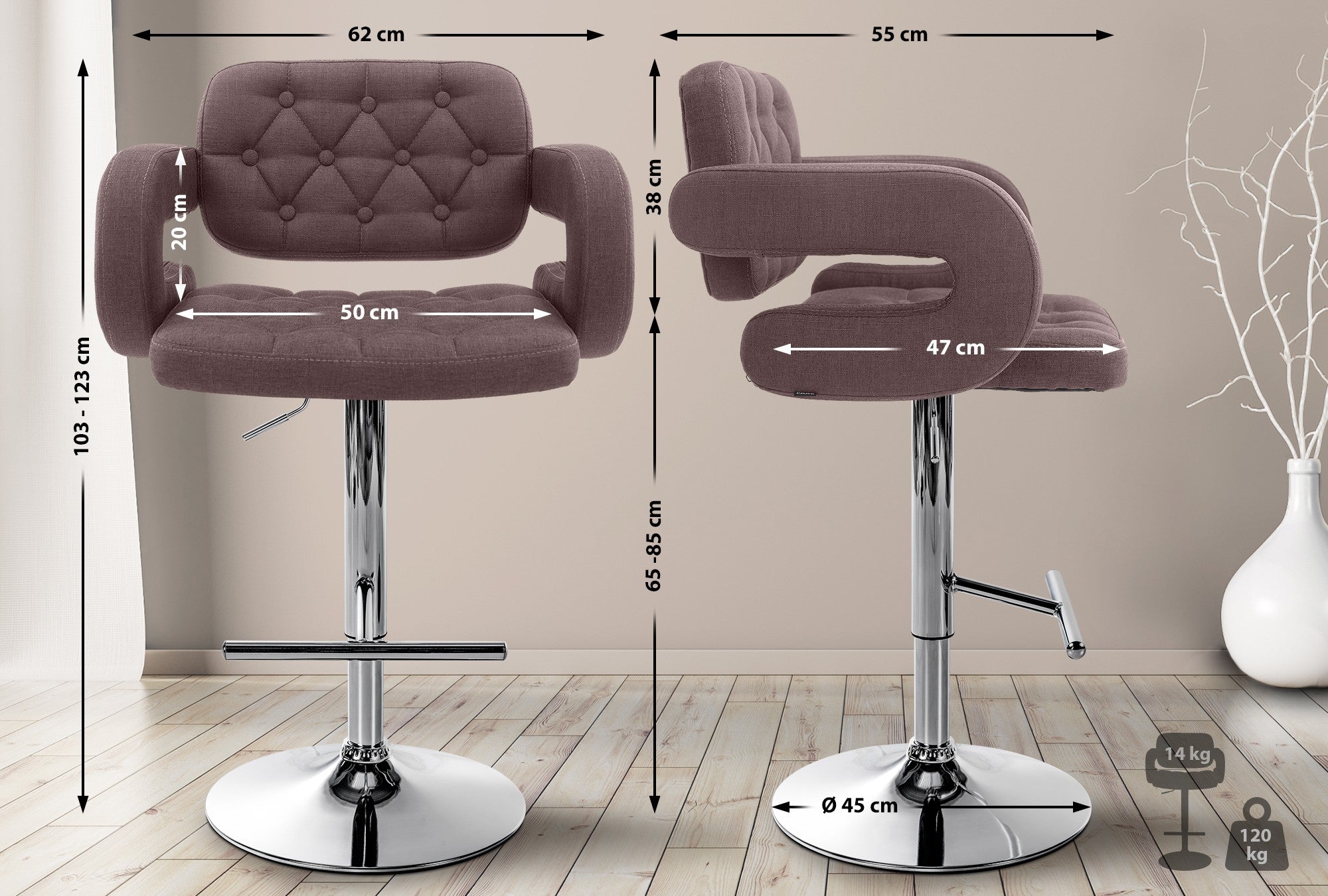 Le tabouret de bar incarne l'élégance intemporelle et le confort moderne. Son revêtement en tissu matelassé lui confère non seulement une touche luxueuse, mais offre également une assise confortable.