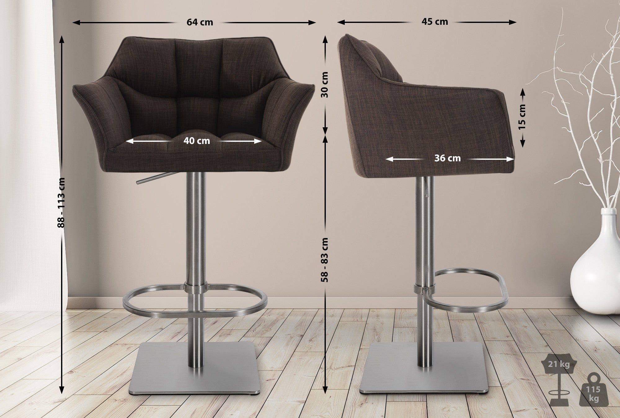 Tabouret de bar x1 réglable en tissu marron assise enveloppante capitonnée avec base carrée en acier inoxydable 10_0006546