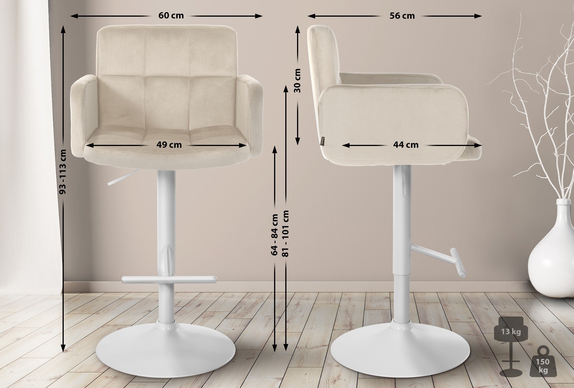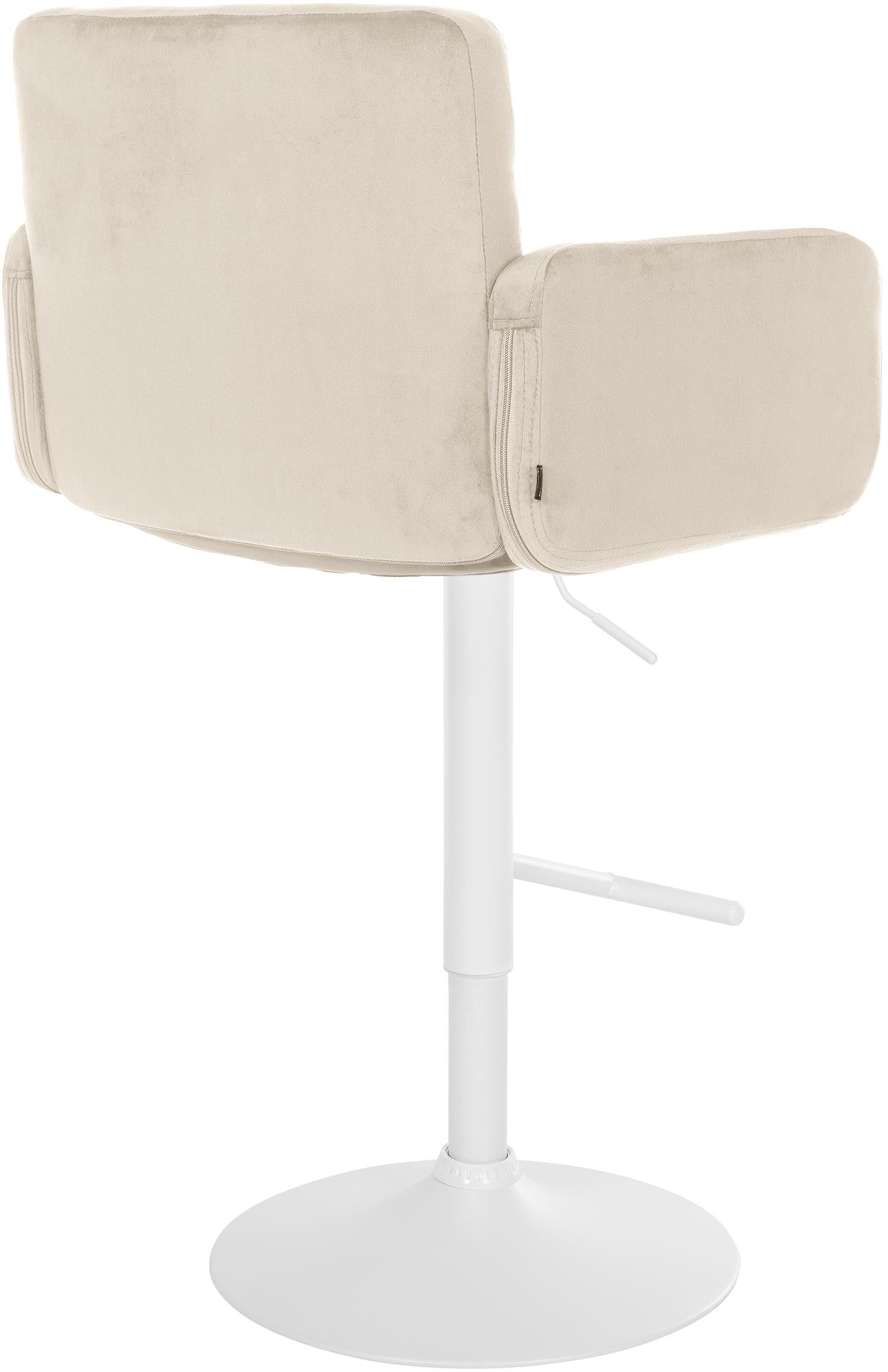 Tabouret de bar x1 avec accoudoirs et repose-pieds en velours couleur crème cadre en métal blanc 10_0006525