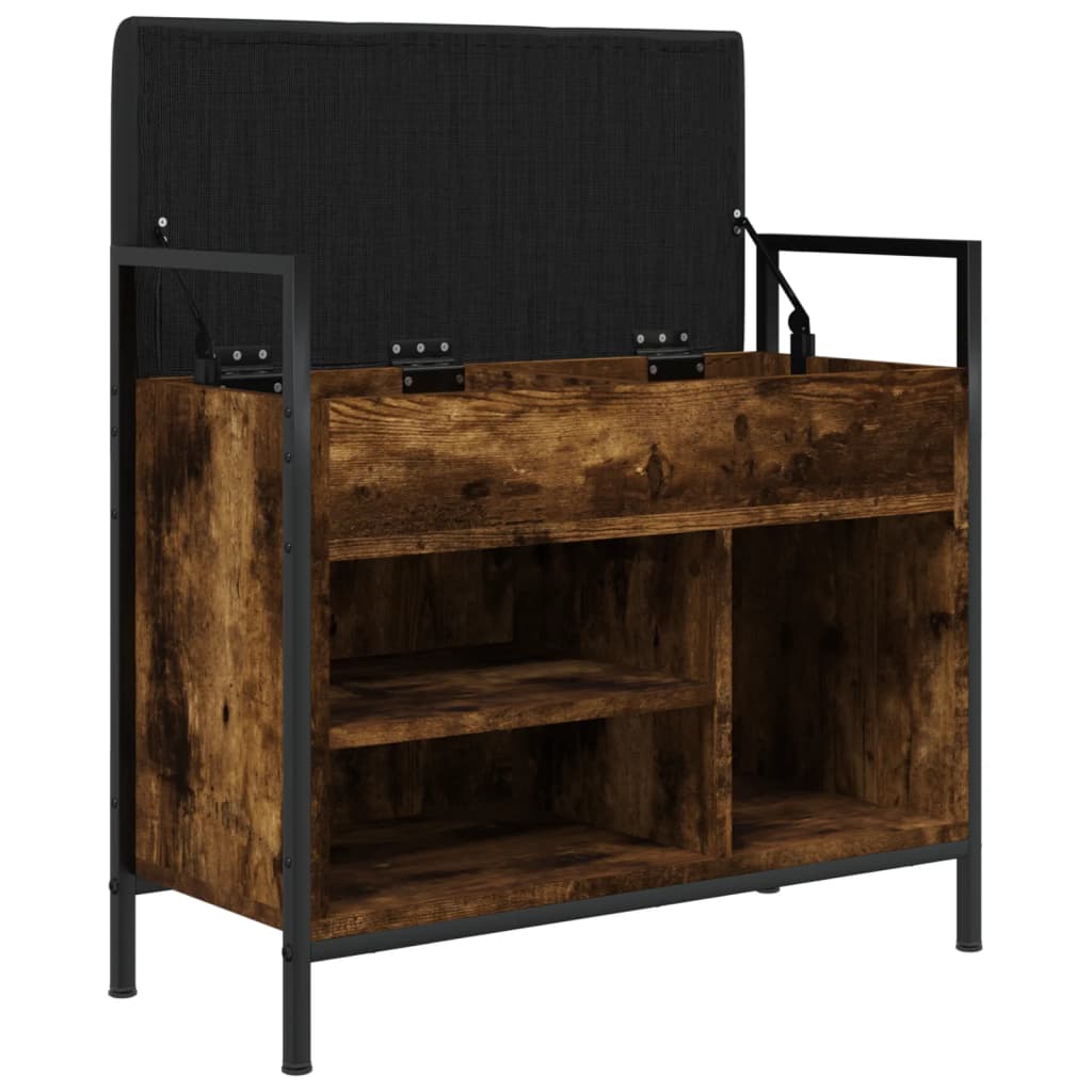 Banc de rangement à chaussures pour entrée ou couloir couleur chêne fumé 65,5 x 32 x 57,5 cm bois d'ingénierie cadre en métal DEC024847
