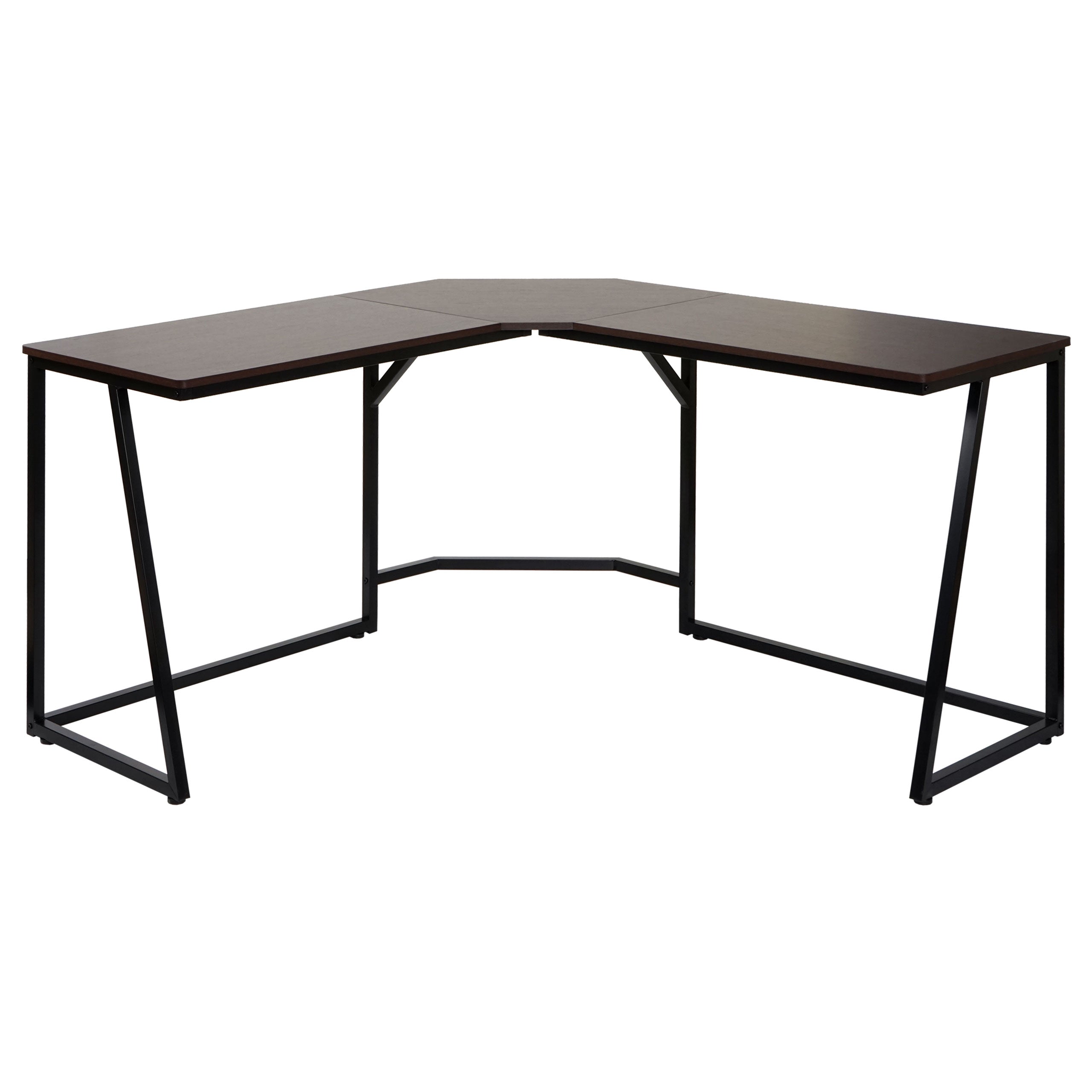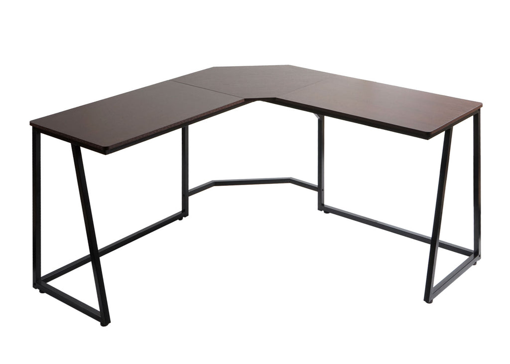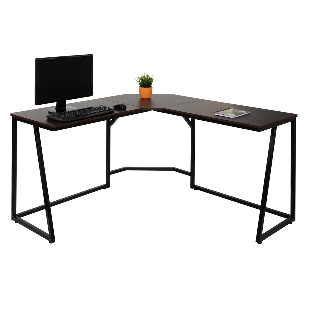 Bureau d'angle table d'ordinateur 76x140x140 cm métal et MDF marron foncé 04_0006039