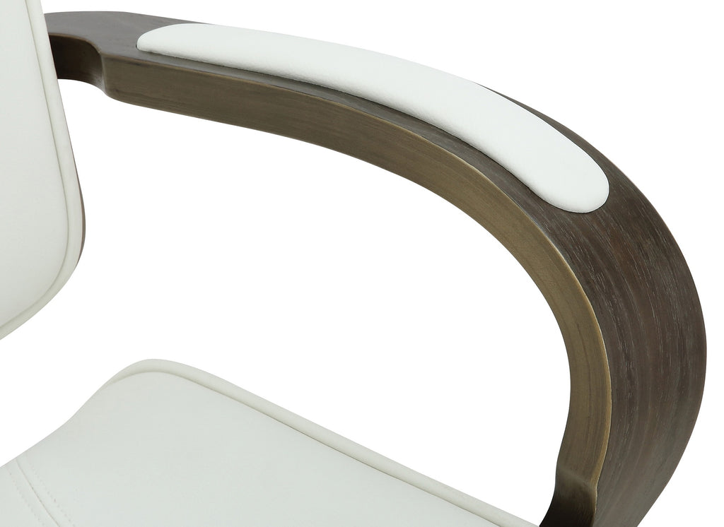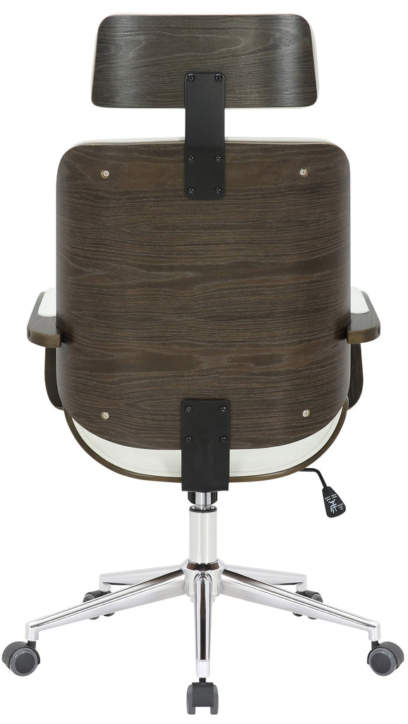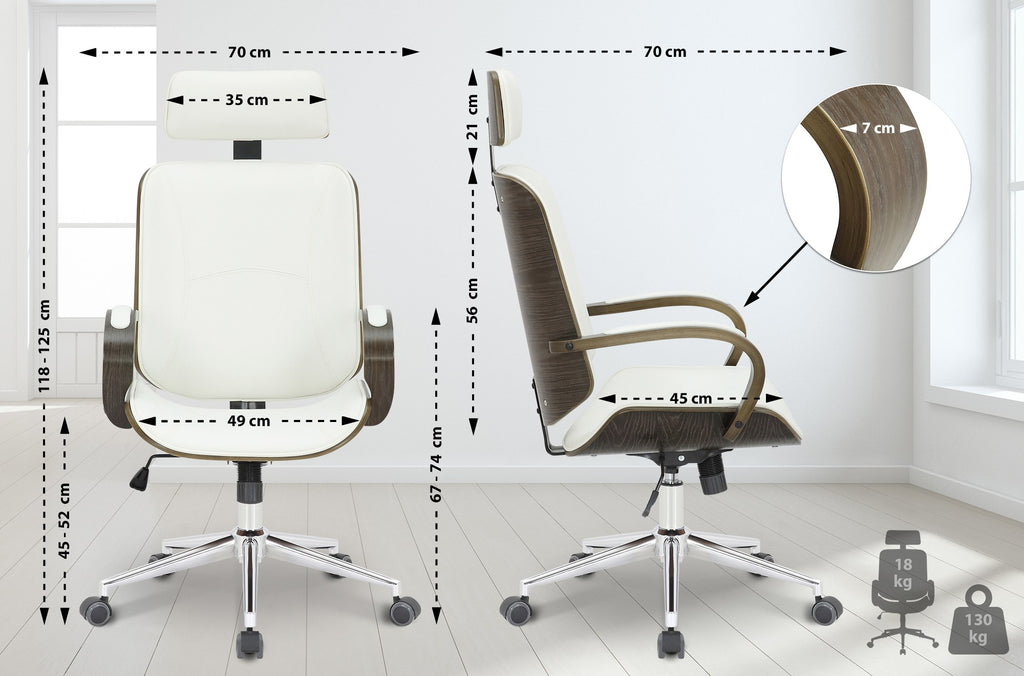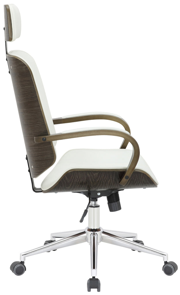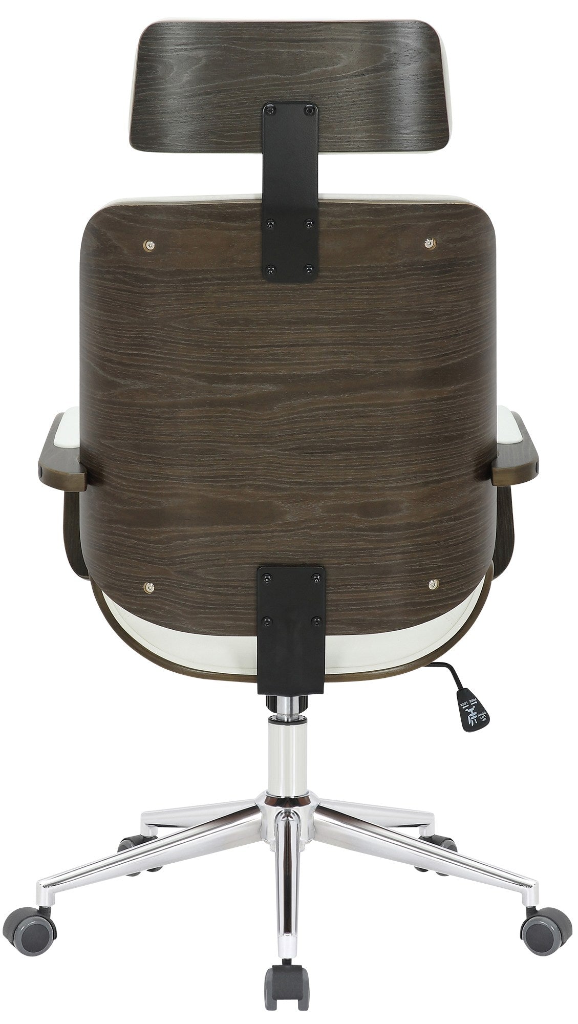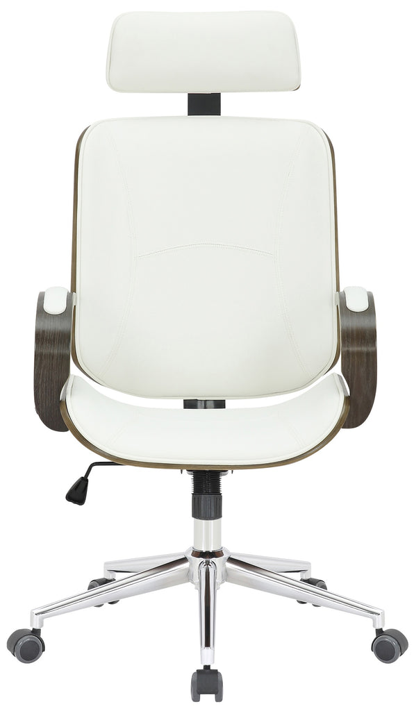 Chaise de bureau dossier et l'appuie-tête en métal PVC blanc et cadre en bois gris 10_0002456
