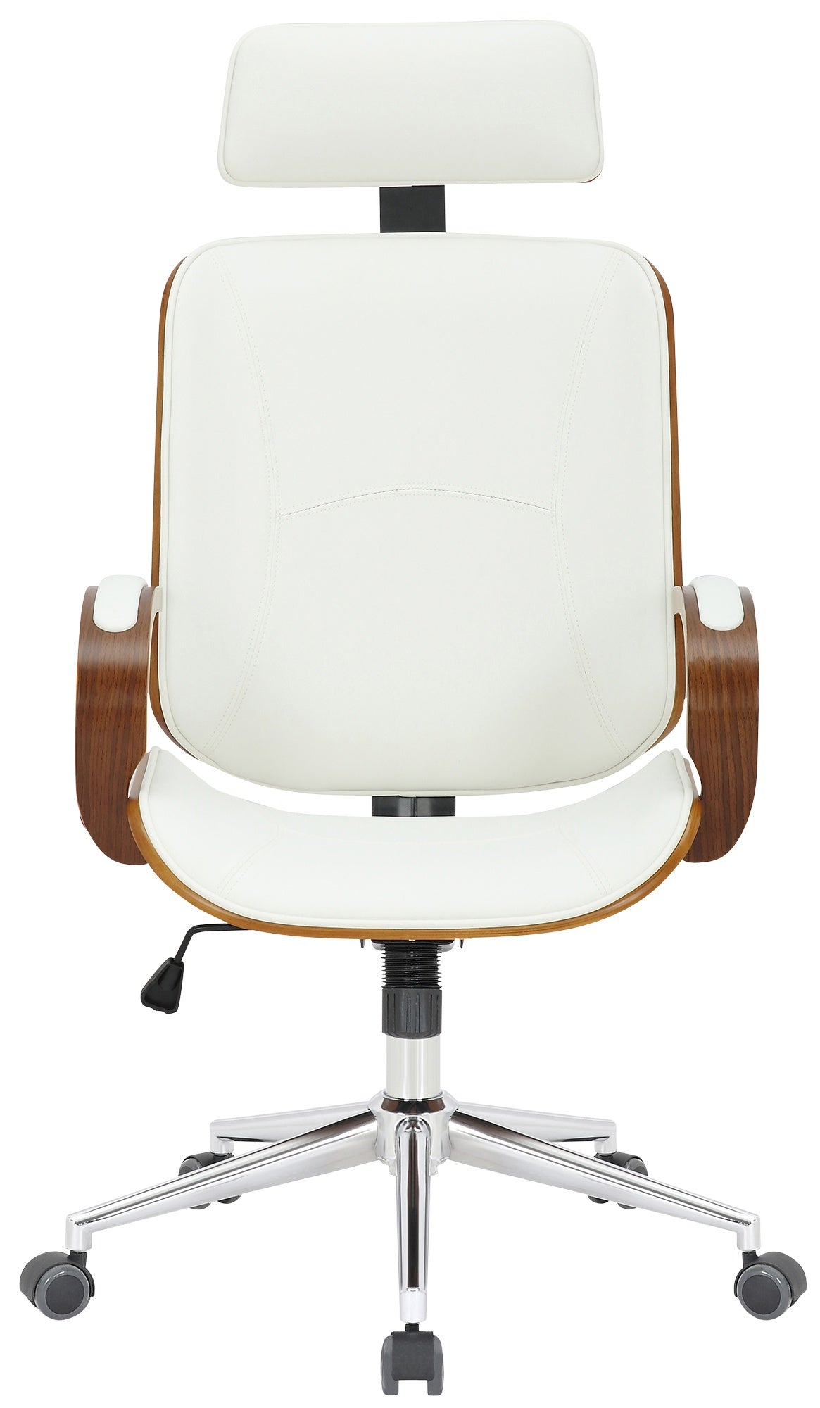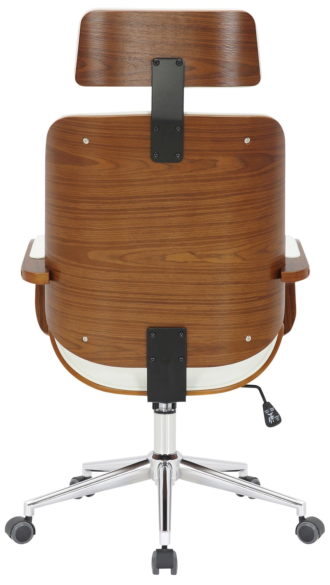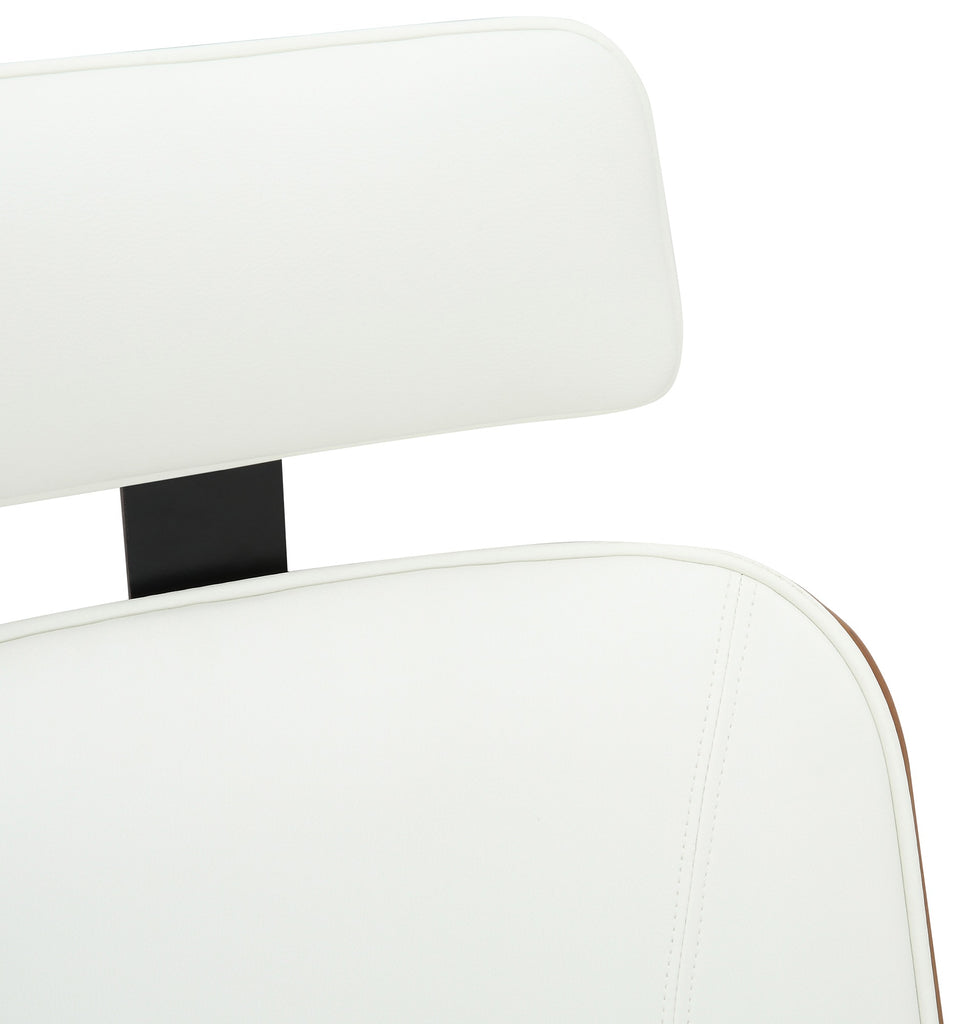 Chaise de bureau dossier et l'appuie-tête en métal PVC blanc et cadre en bois noyer 10_0002454