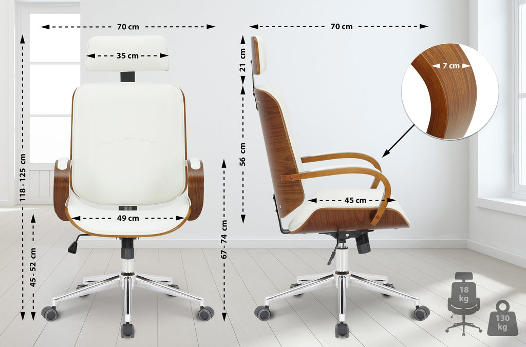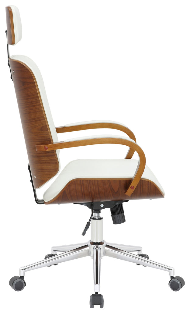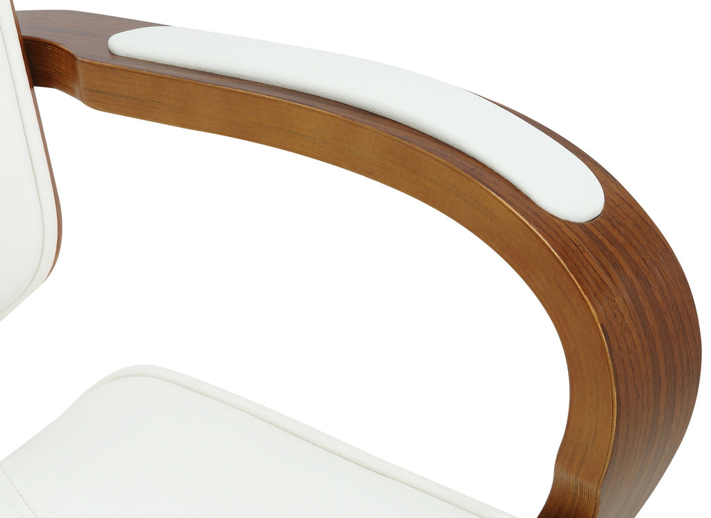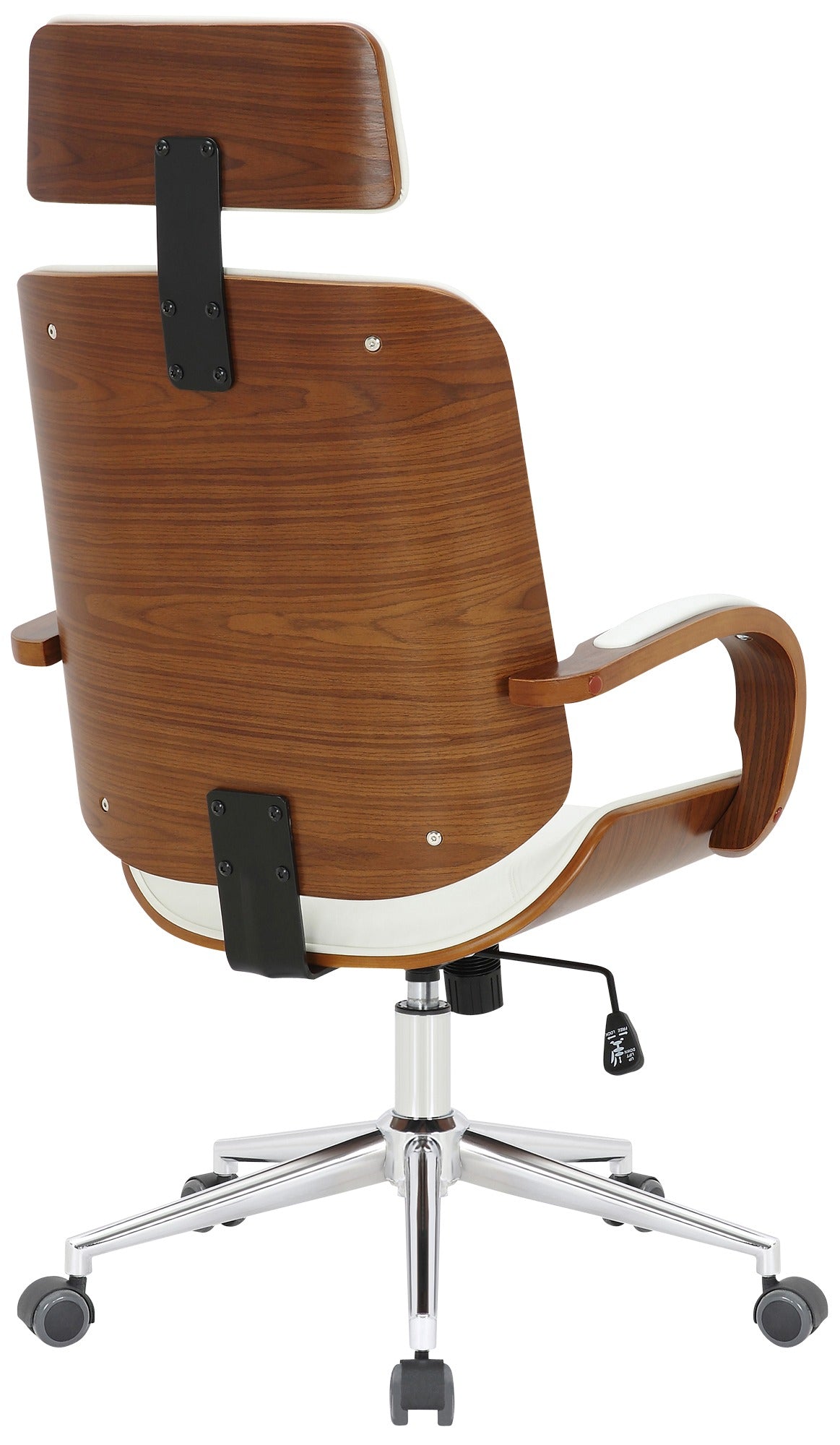 Chaise de bureau dossier et l'appuie-tête en métal PVC blanc et cadre en bois noyer 10_0002454