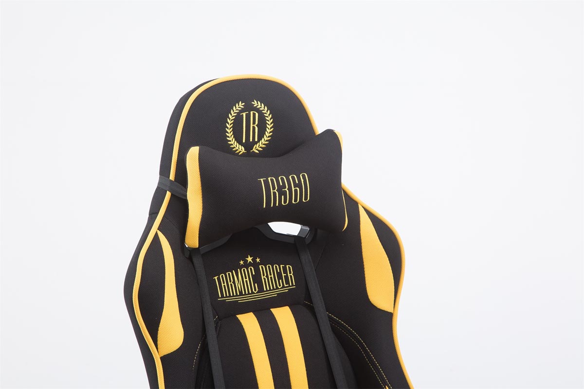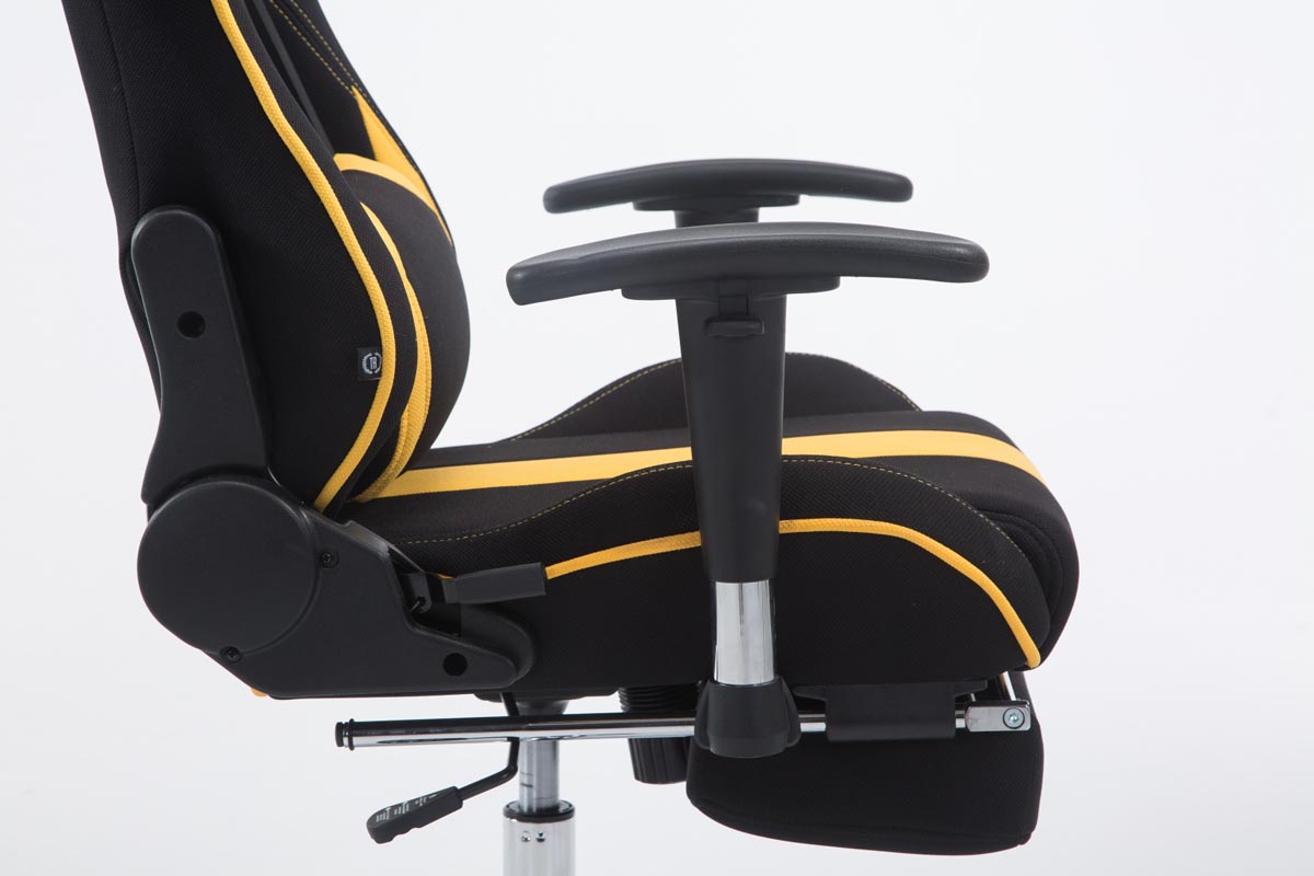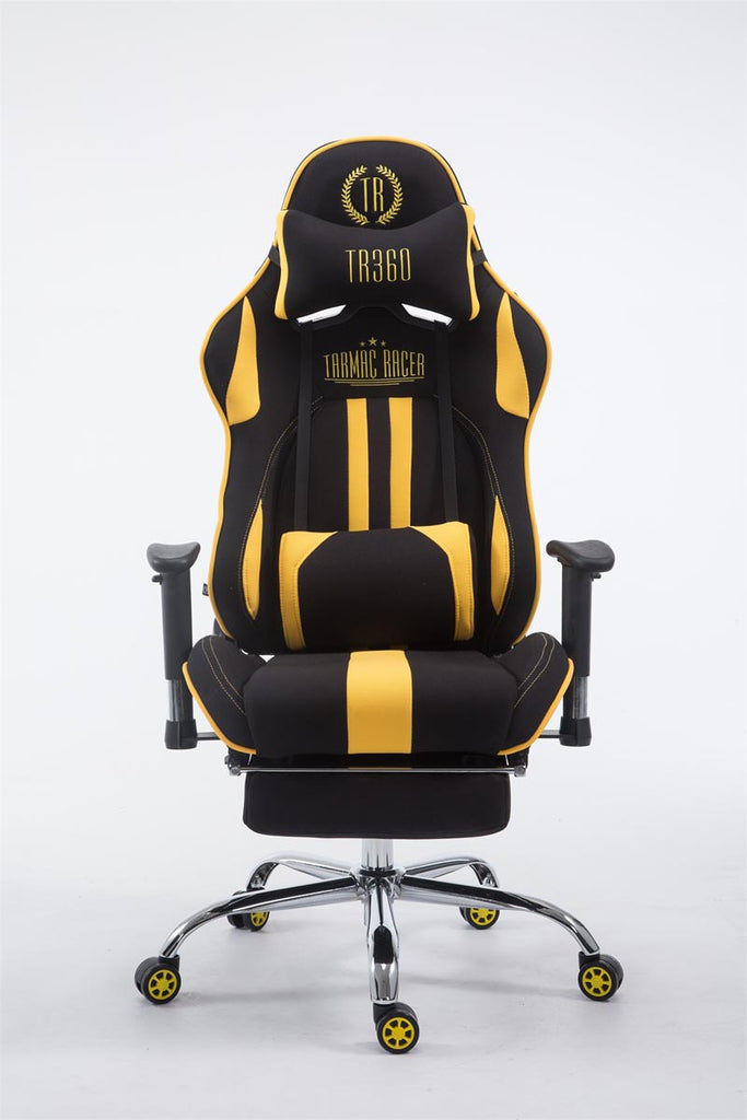 Fauteuil de bureau gamer avec repose-pieds extensible mécanisme de bascule en tissu noir / jaune 10_0002757