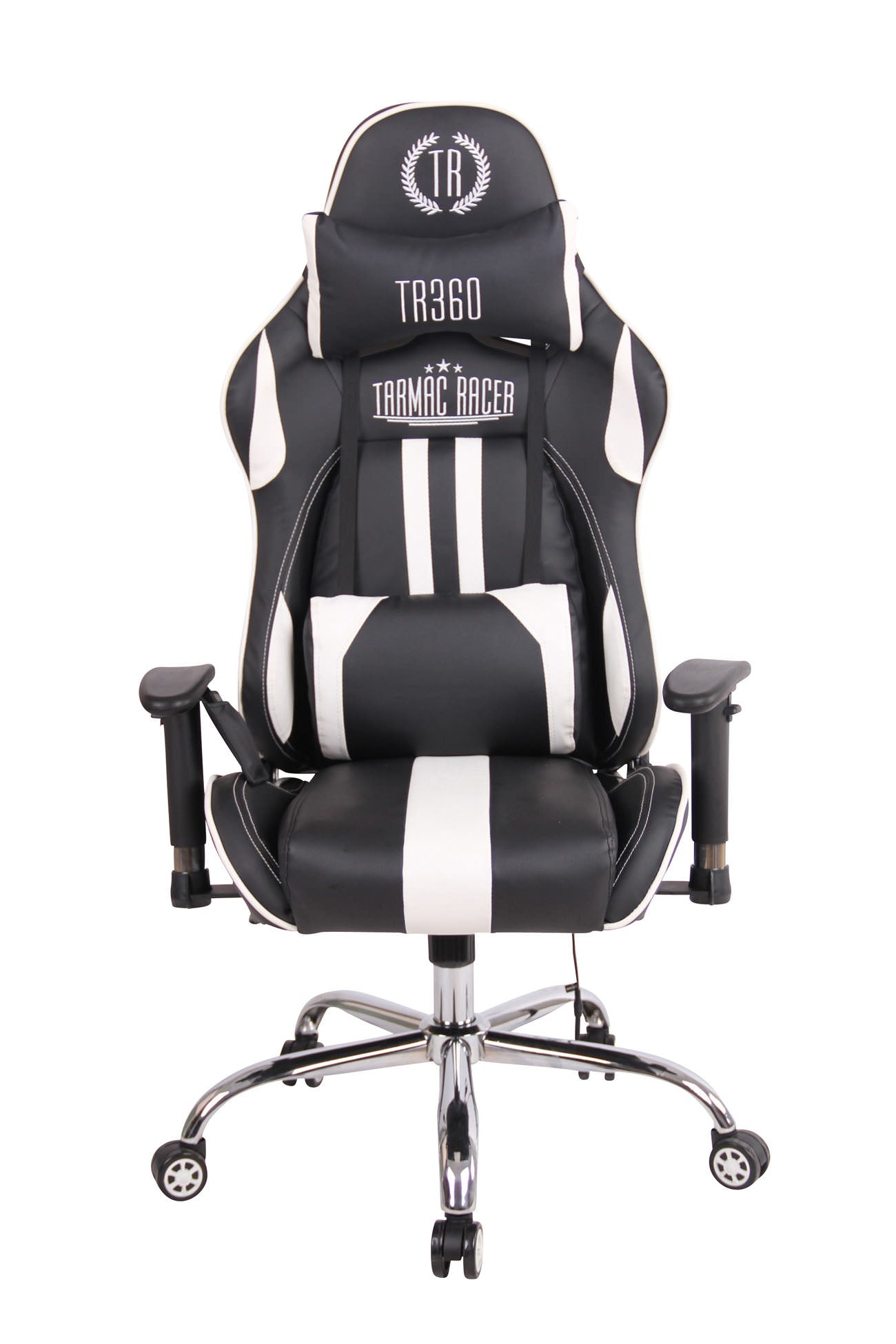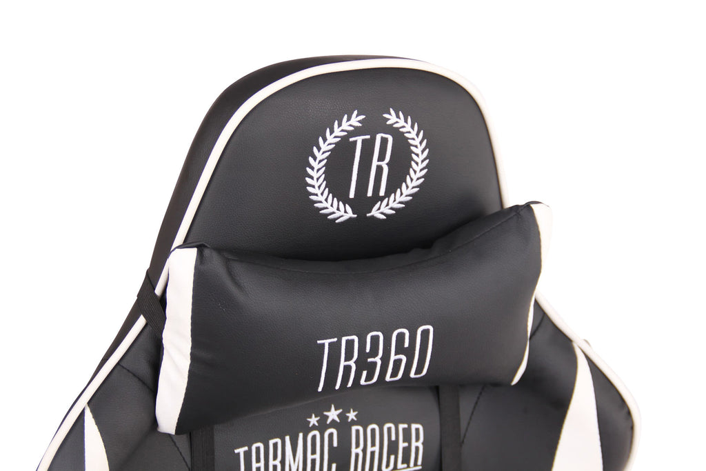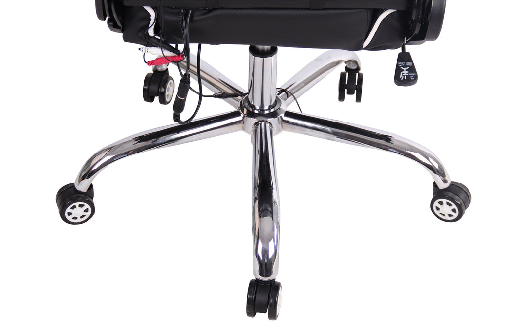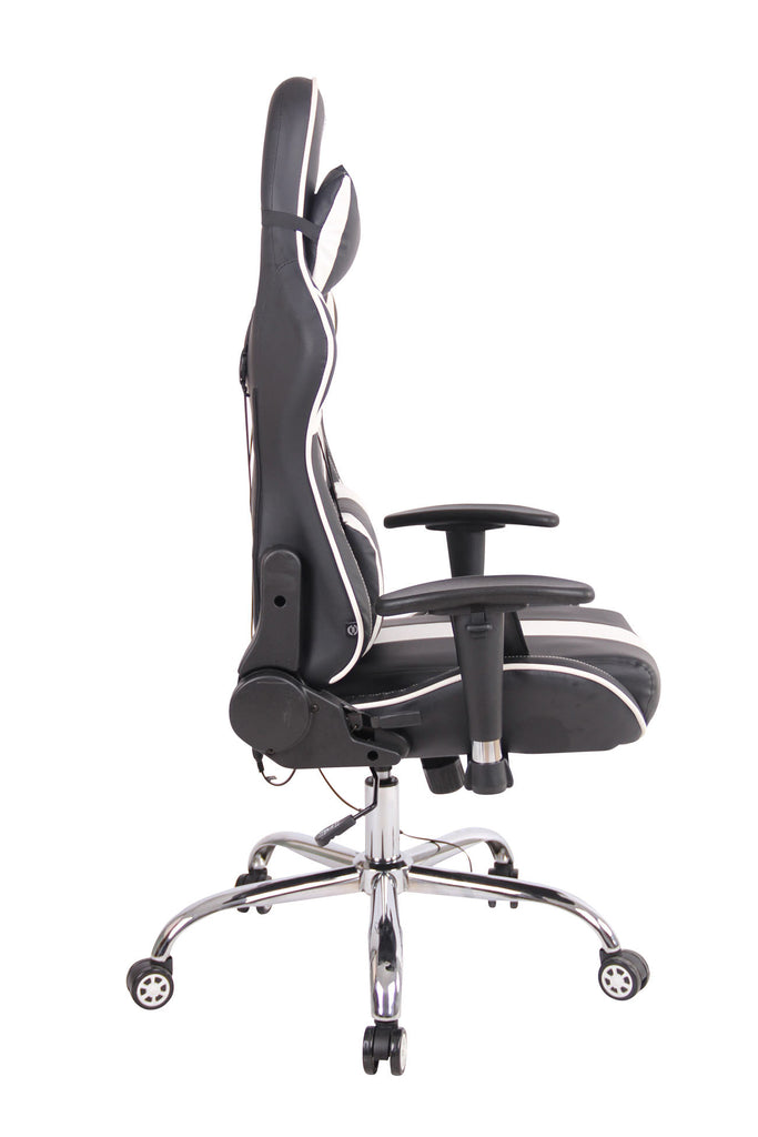 Fauteuil de bureau gamer design sportif fonction de massage chauffant avec coussins en PVC noir / blanc 10_0002529