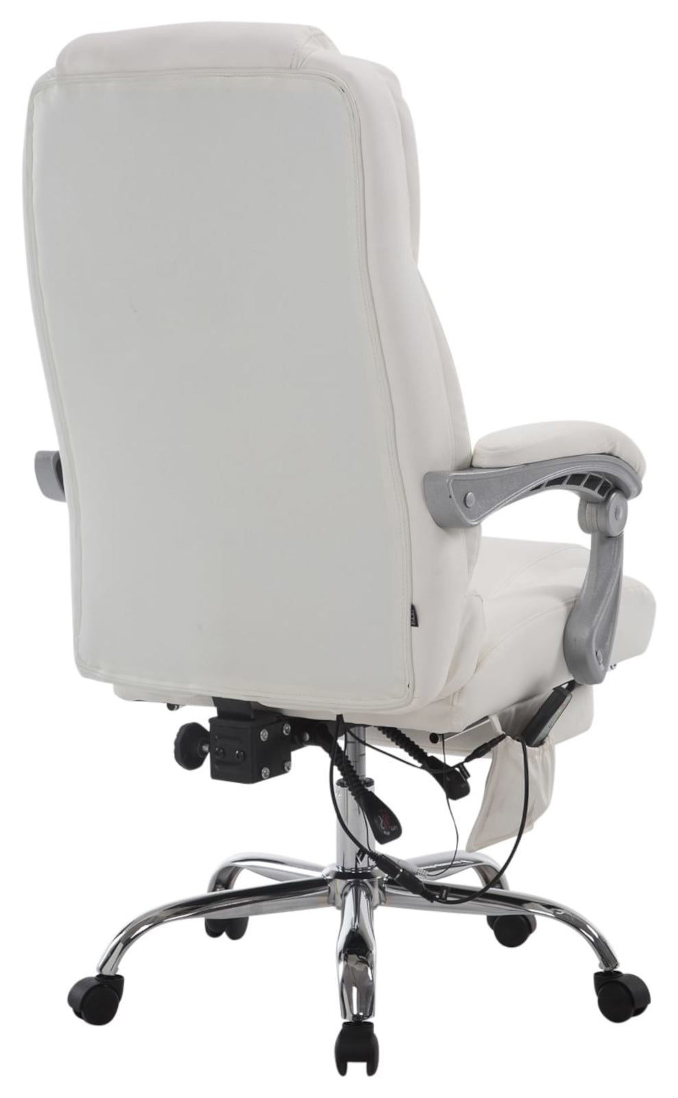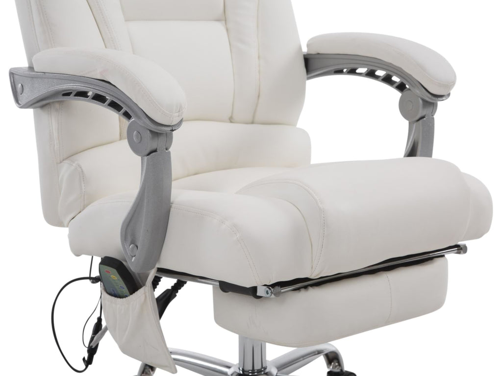 Fauteuil de bureau ergonomique fonction massage avec repose-pieds extensible accoudoirs en PVC blanc et métal 10_0006978