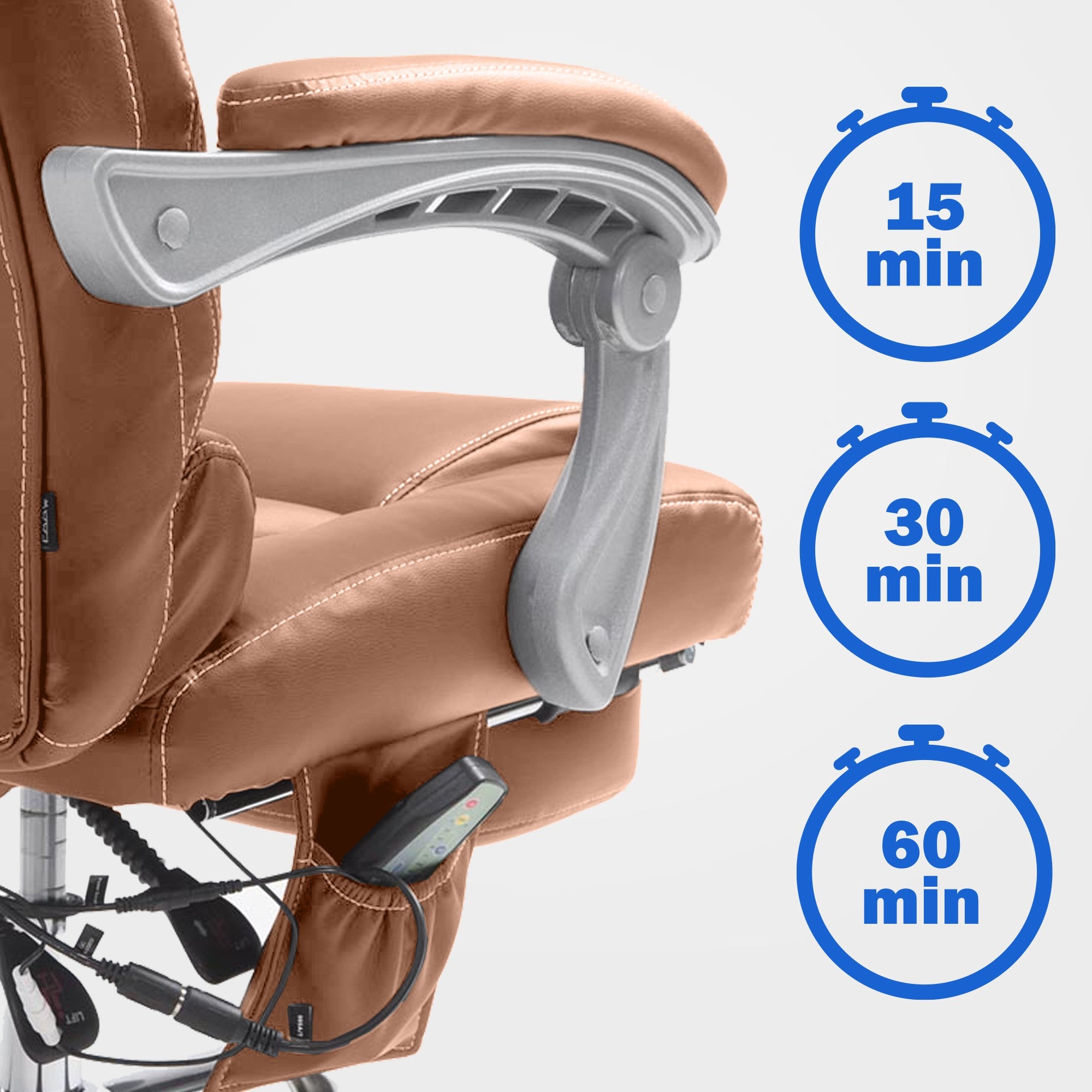 Fauteuil de bureau avec fonction massage repose-pieds en cuir synthétique marron clair et métal 10_0006932