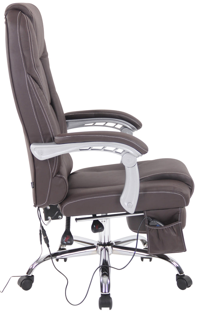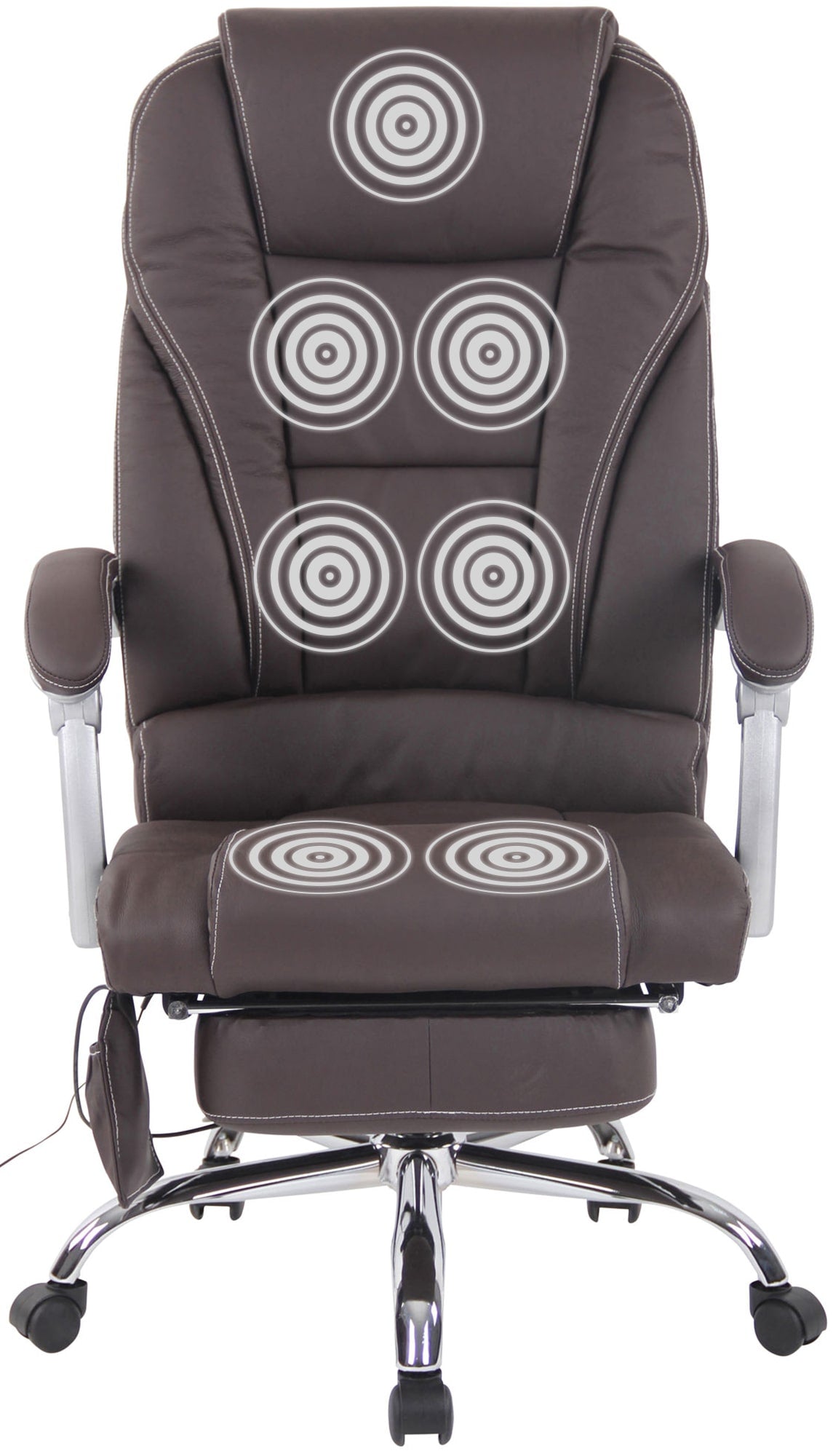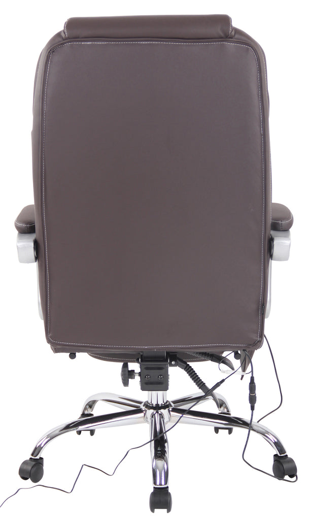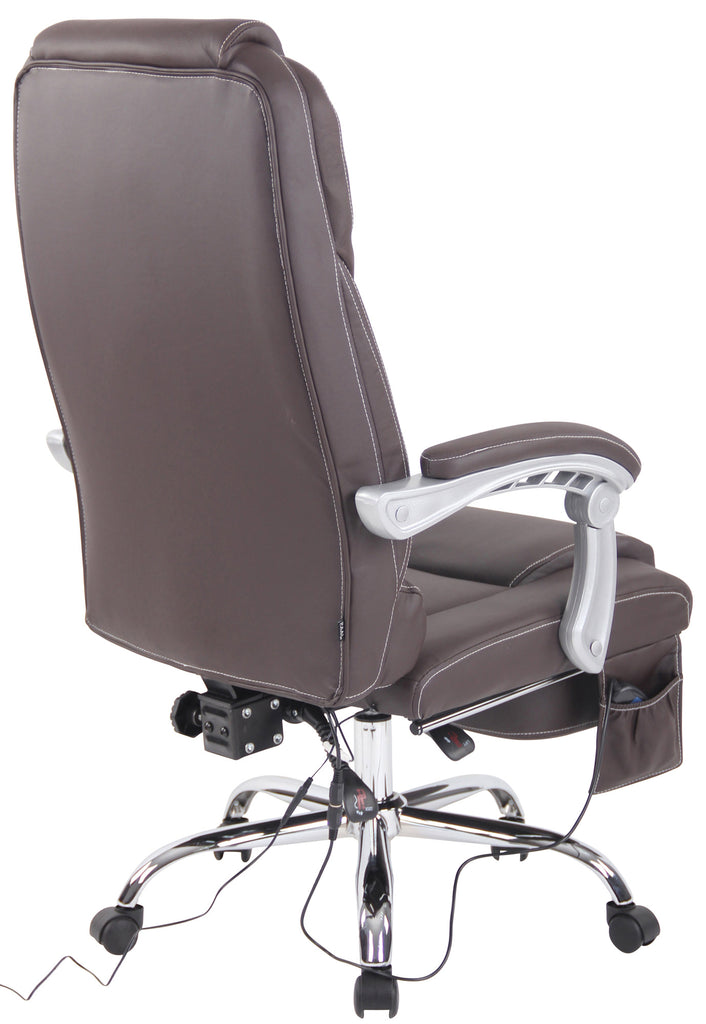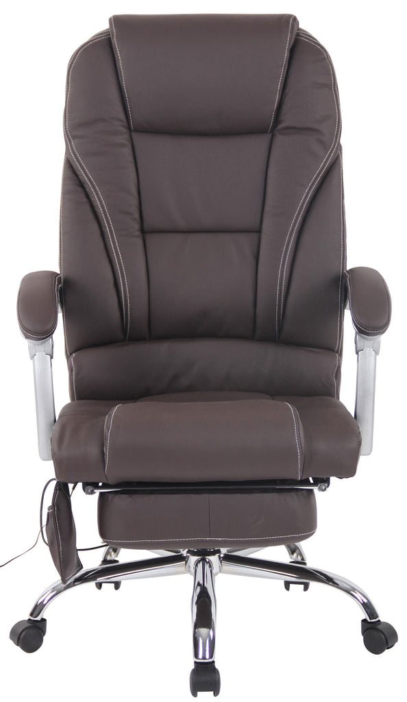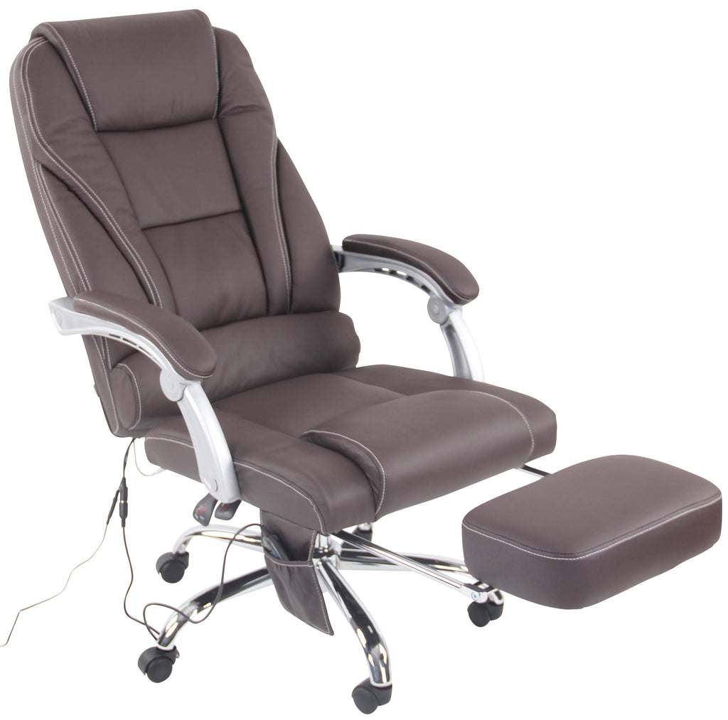 Fauteuil de bureau ergonomique fonction massage avec repose-pieds extensible accoudoirs véritable cuir marron et métal 10_0006986