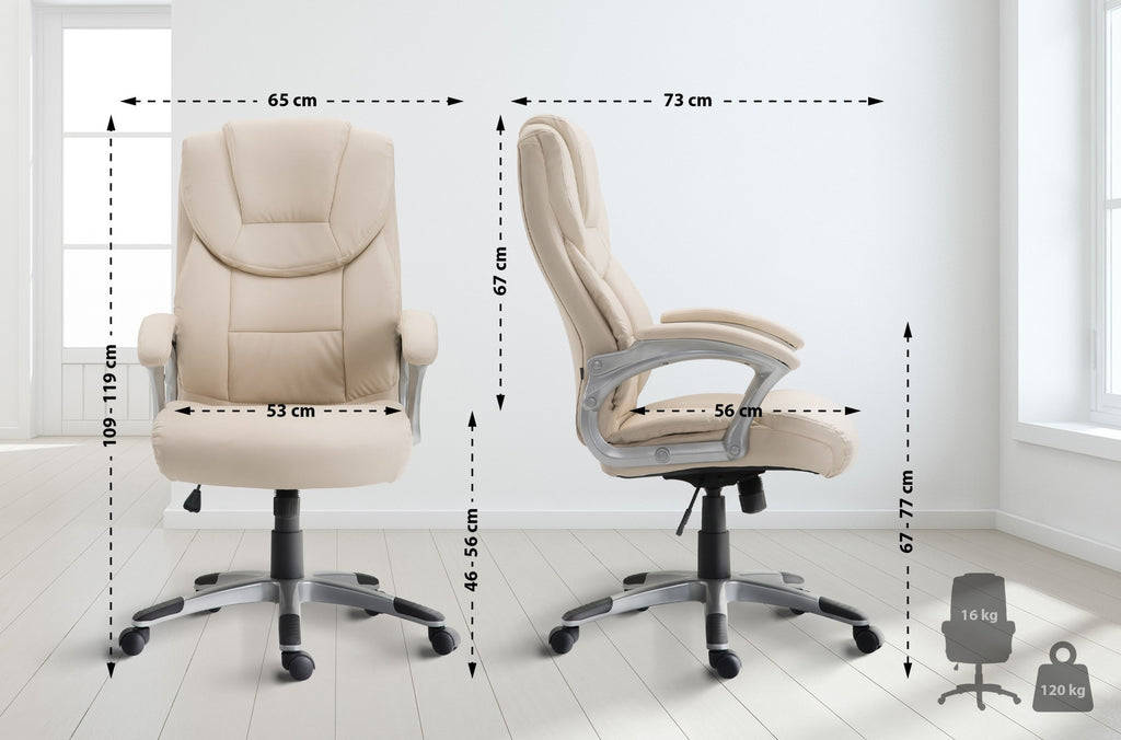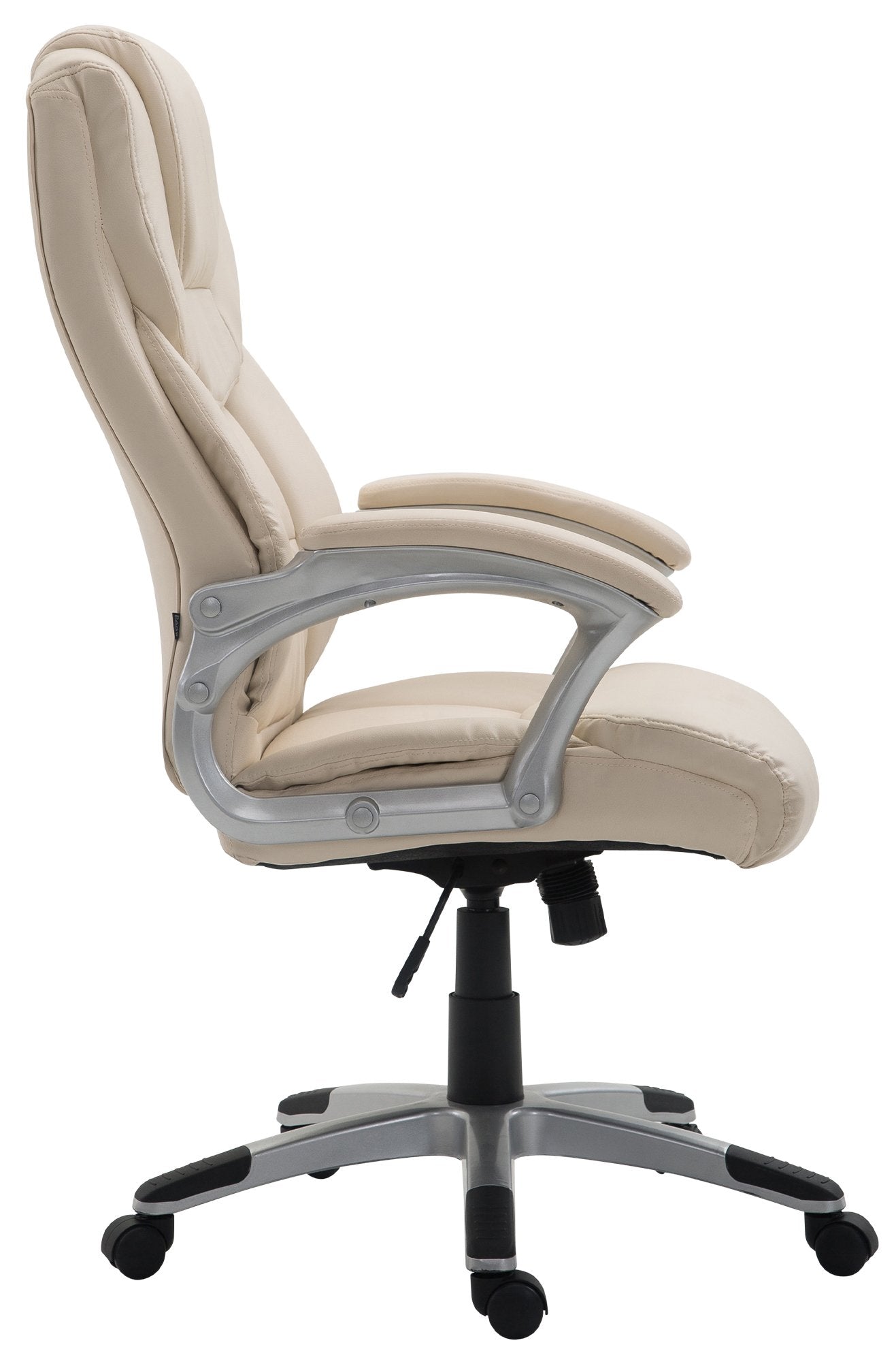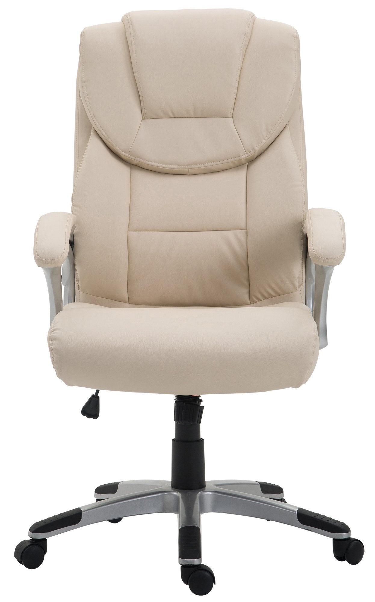 Fauteuil de bureau dossier inclinable hauteur réglable en PVC crème cadre métal 10_0007033