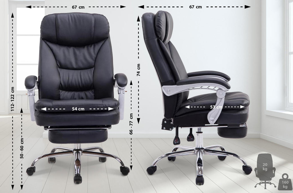 Fauteuil de bureau sur roulettes XL charge max 160 kg avec repose-pied ajustable en similicuir noir et métal 10_0006938