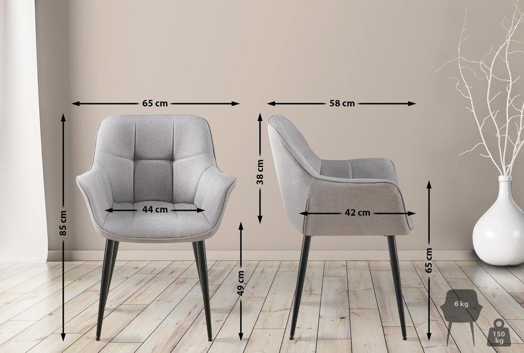 Chaise avec accoudoirs en tissu matelassé gris structure métallique noir confort premium 10_0007503
