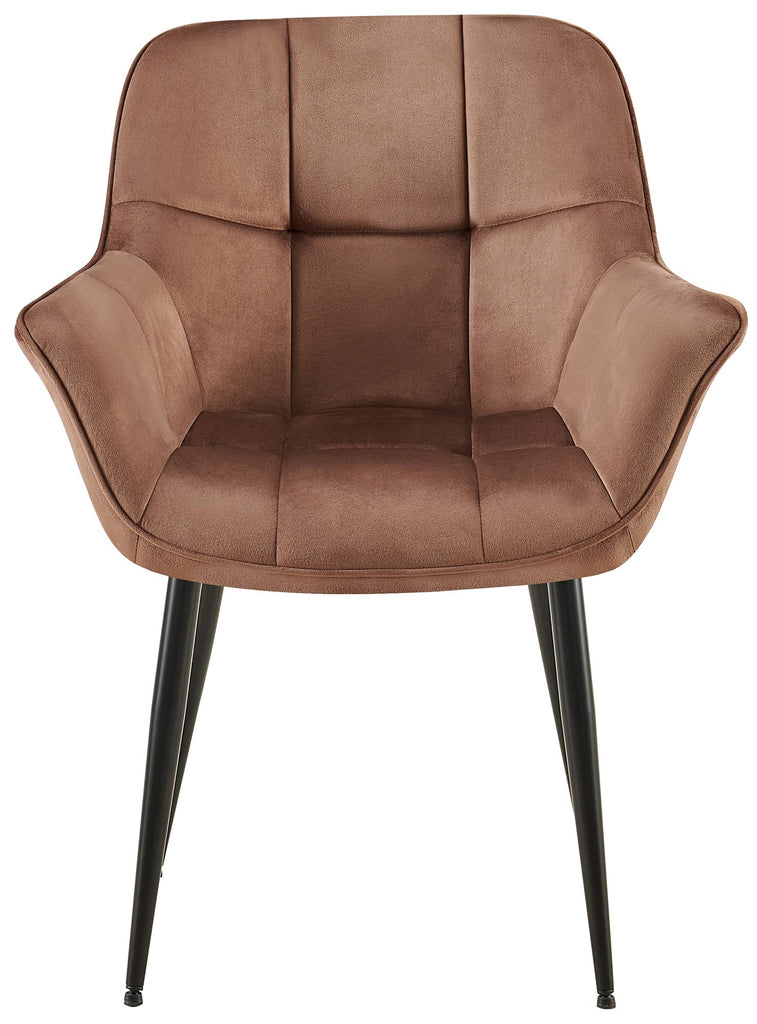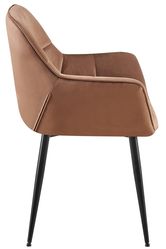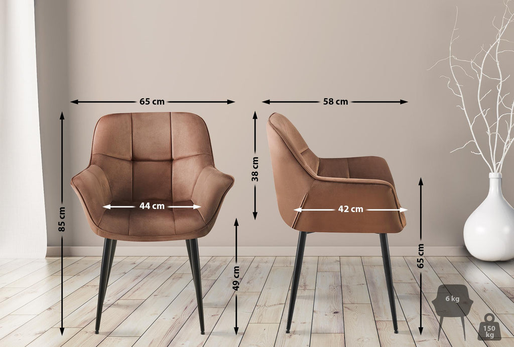 Chaise avec accoudoirs en velours matelassé marron structure métallique noir confort premium 10_0007672