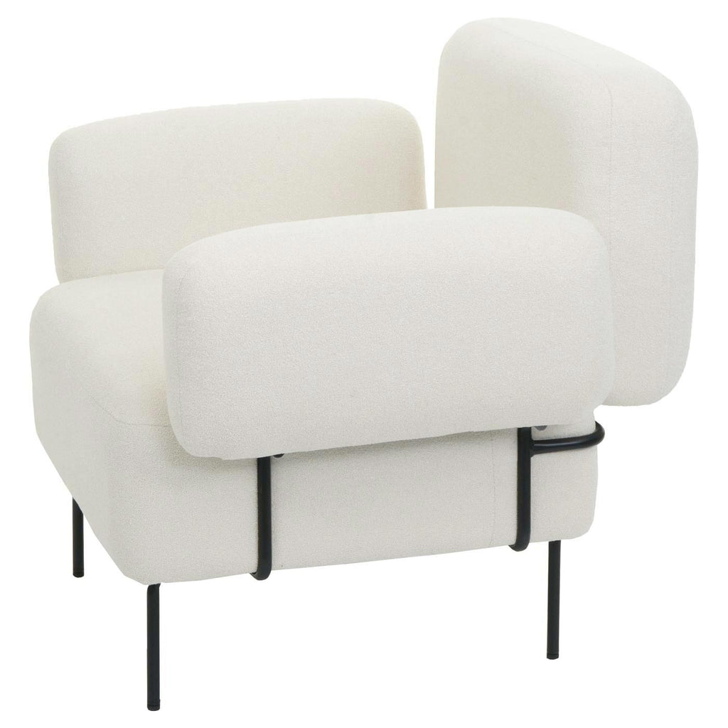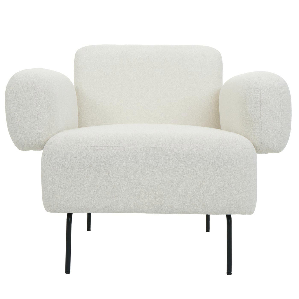 Fauteuil lounge assise large avec accoudoirs assise rembourrée tissu bouclé blanc crème et métal 04_000639