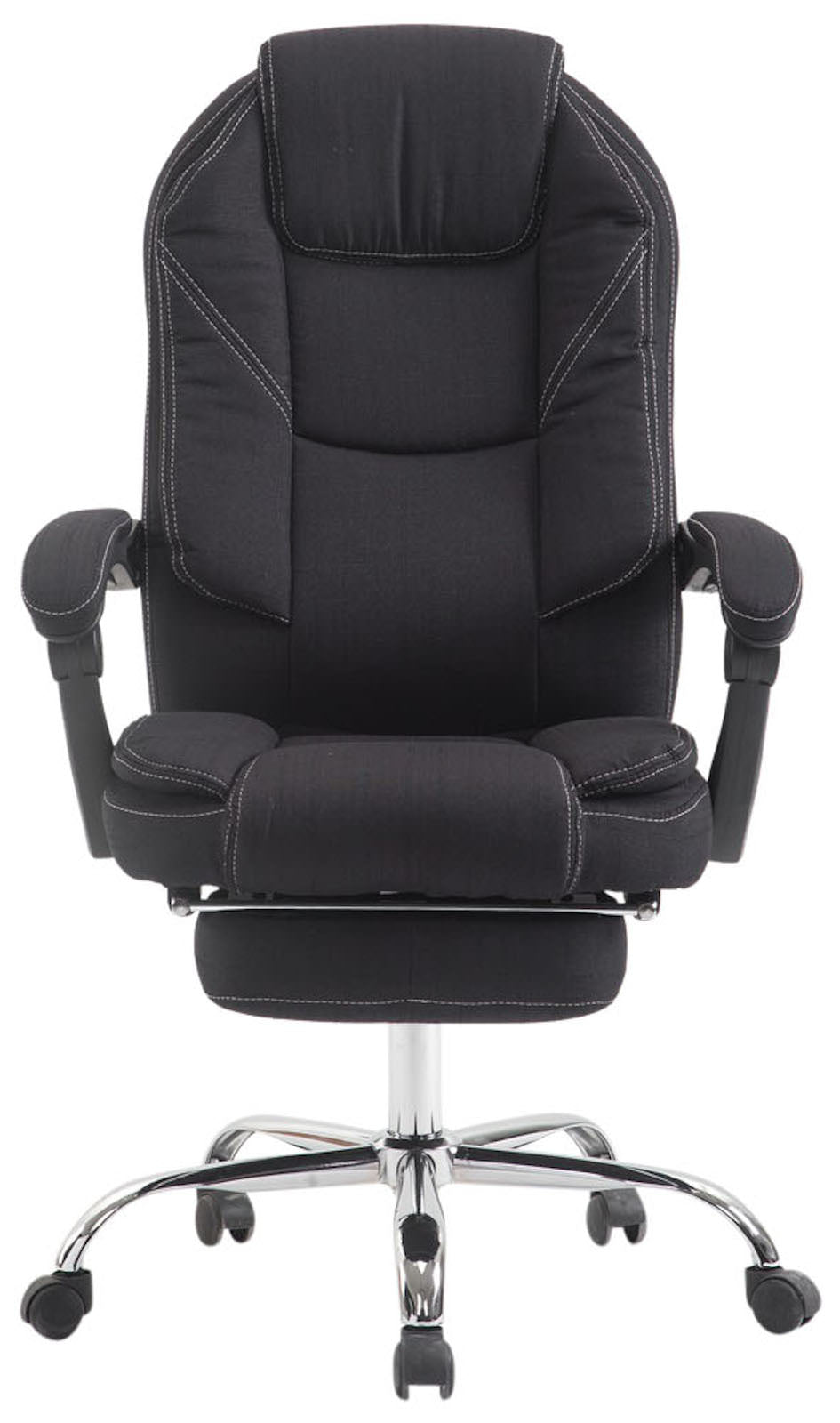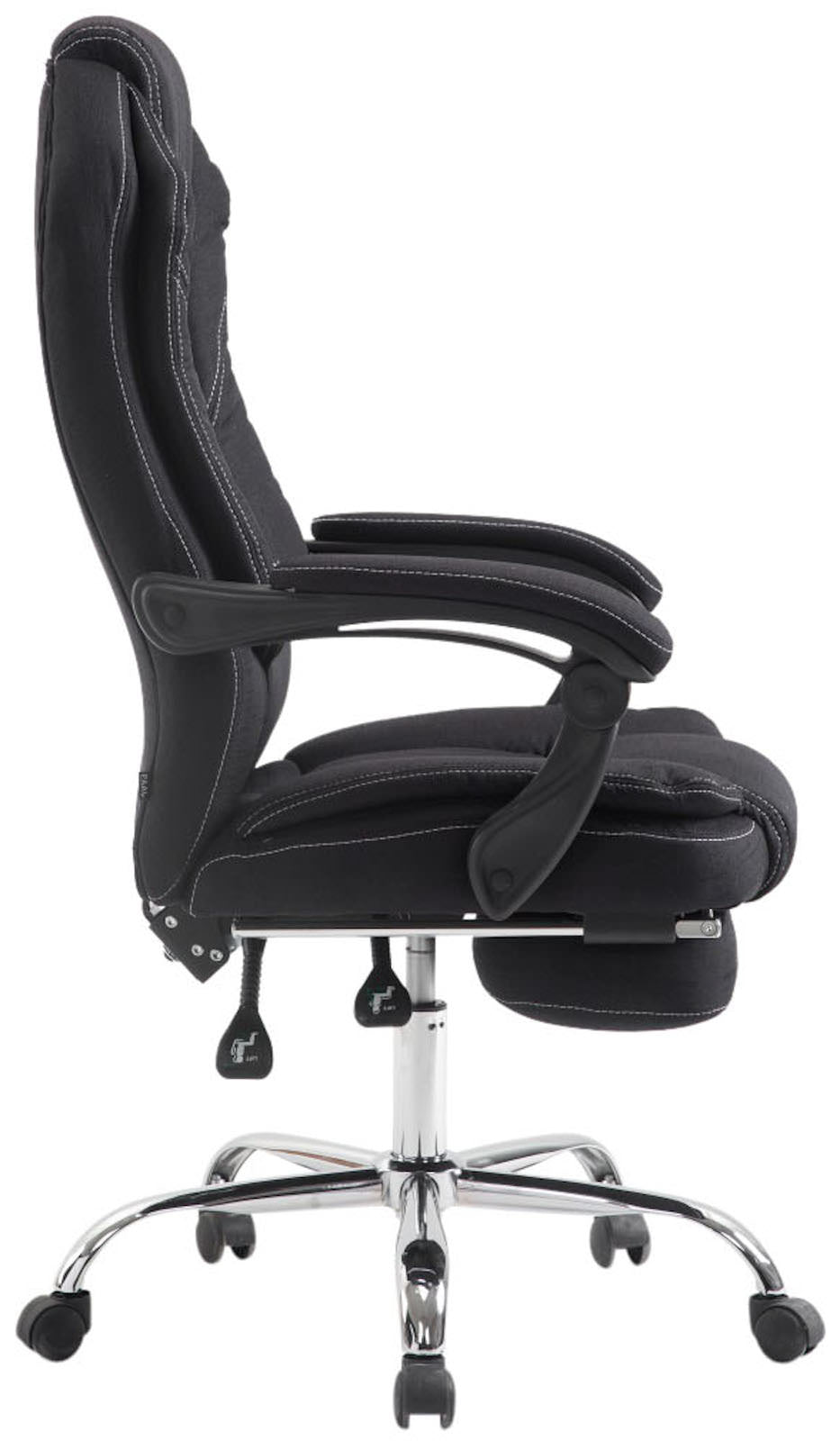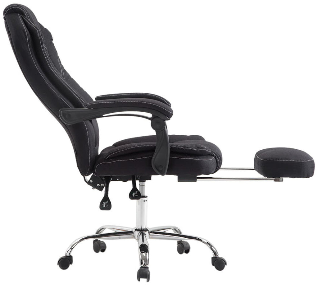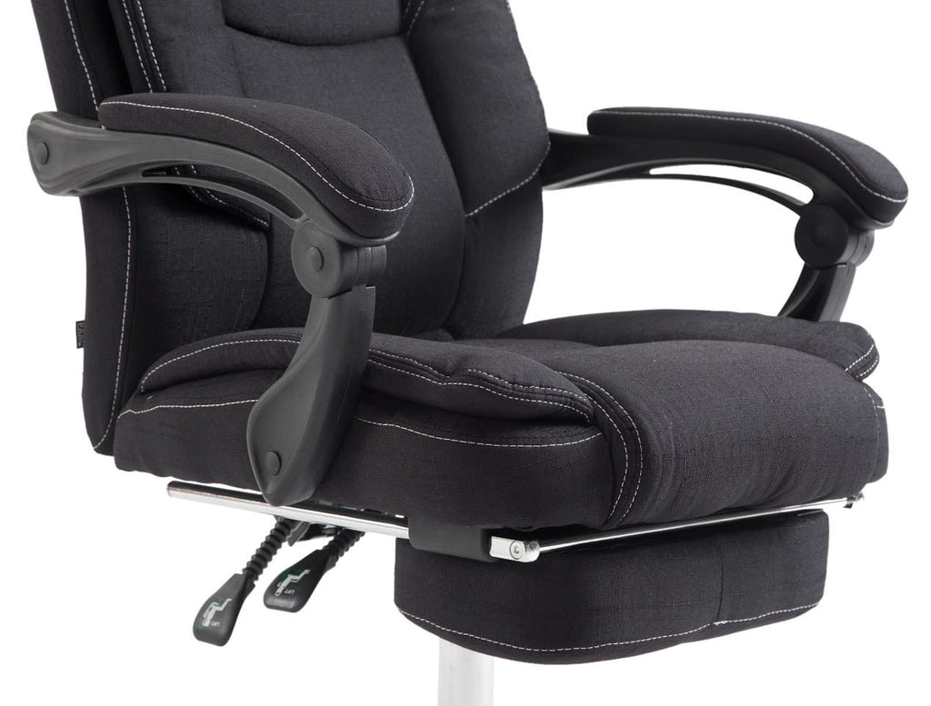 Fauteuil de bureau sur roulettes dossier et repose-pied réglable en tissu noir et métal 10_0002442