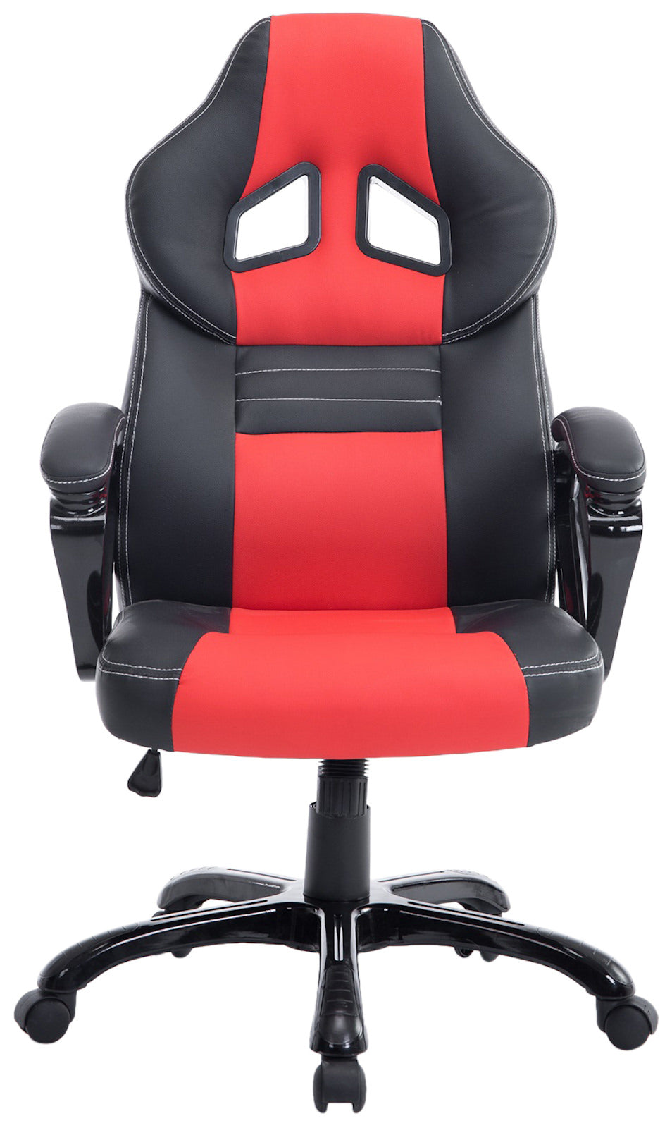 Fauteuil de bureau gaming sur roulettes mécanisme d'inclinaison en PVC noir / rouge et plastique 10_0002595