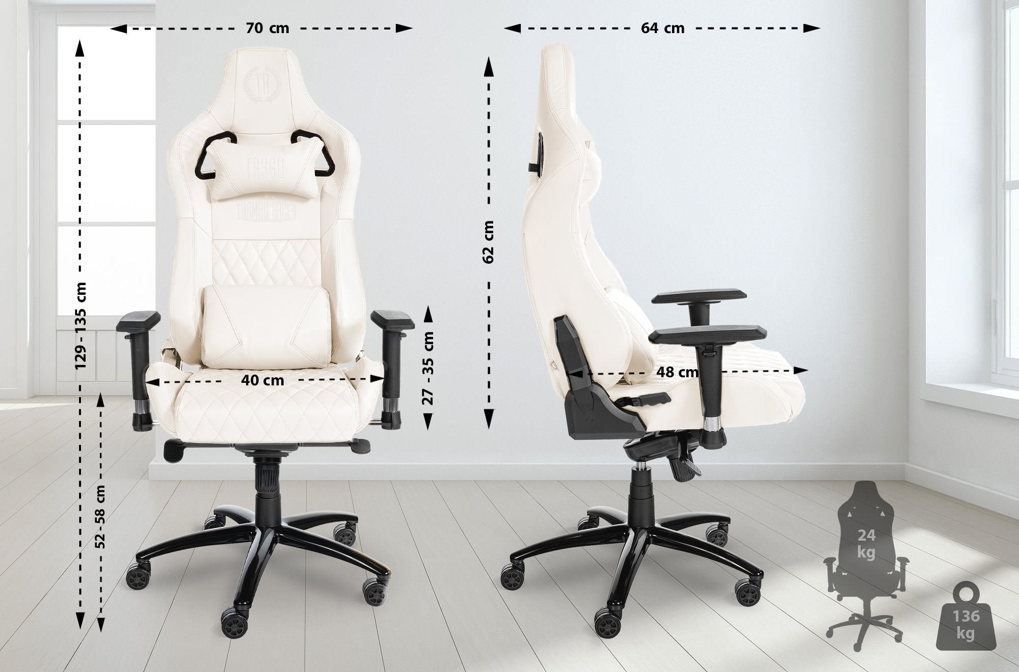 Fauteuil de bureau sur roulettes mécanisme de bascule en véritable cuir blanc cadre métallique 10_0002512