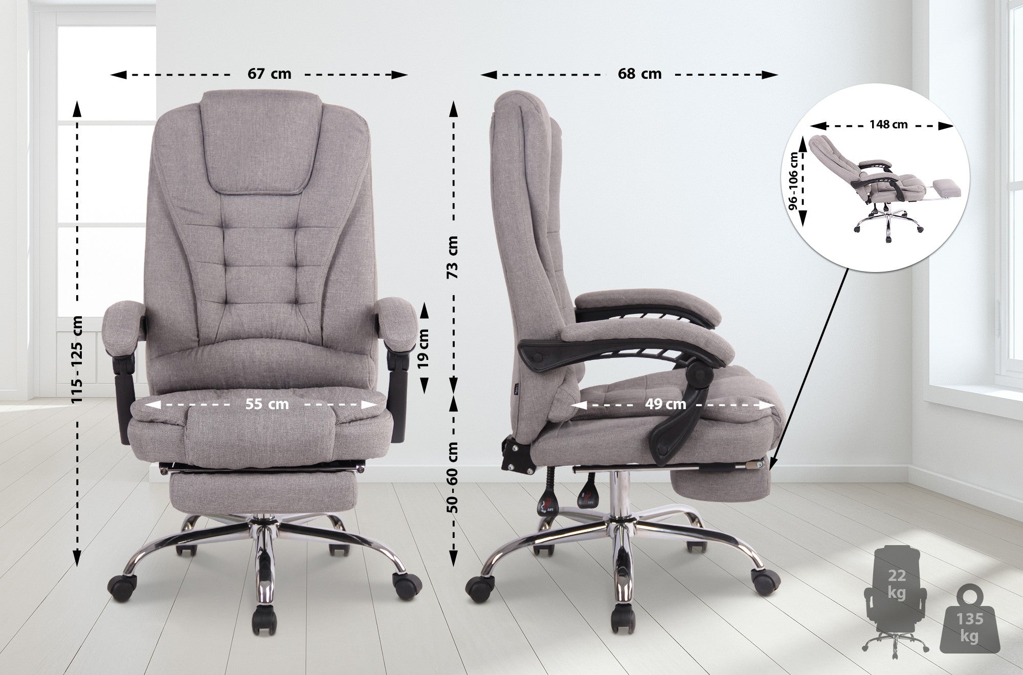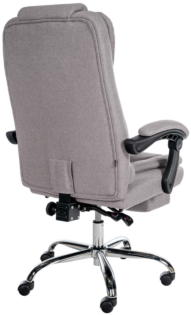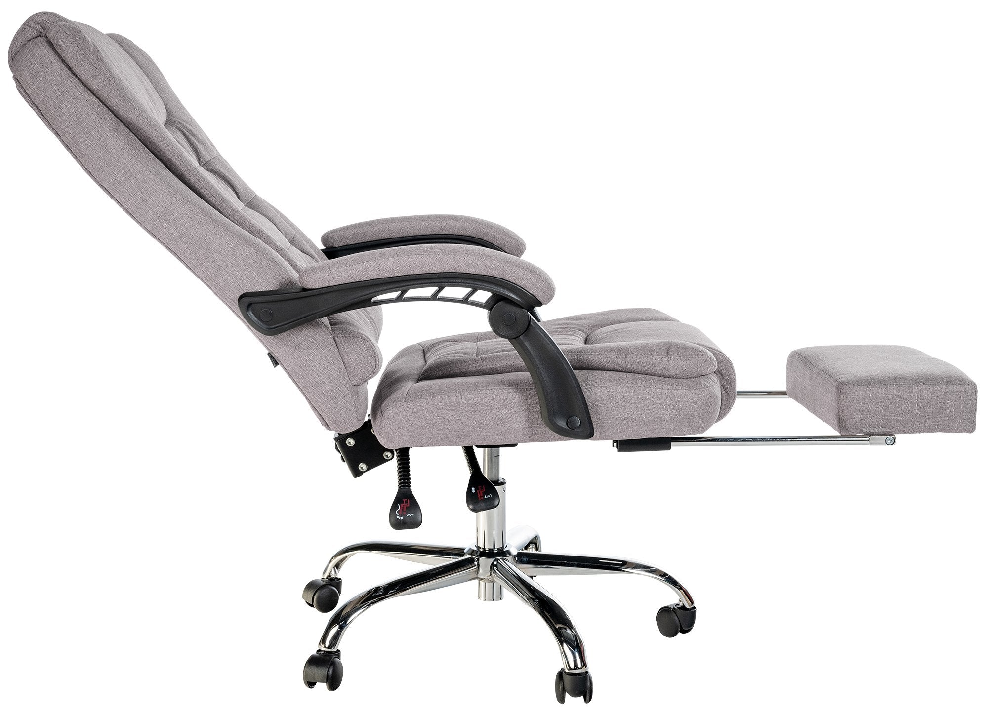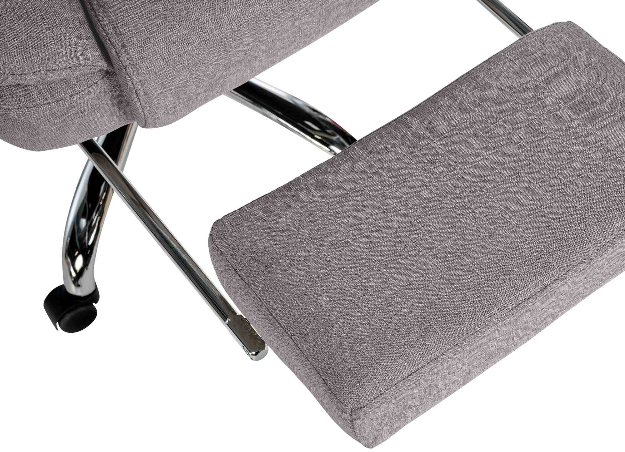 Fauteuil de bureau ergonomique généreusement rembourrée avec repose-pieds en tissu gris et métal chromé 10_0002571
