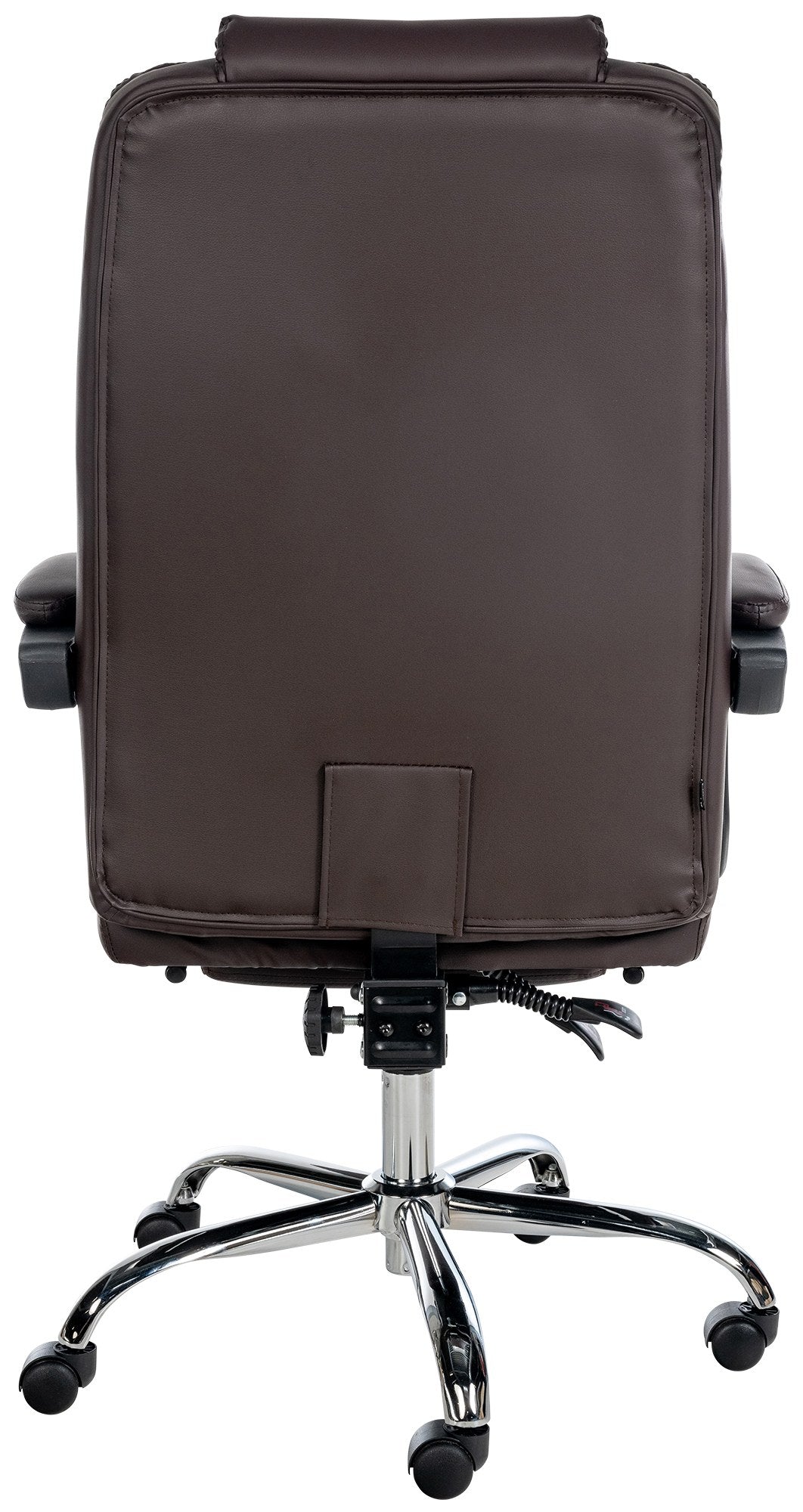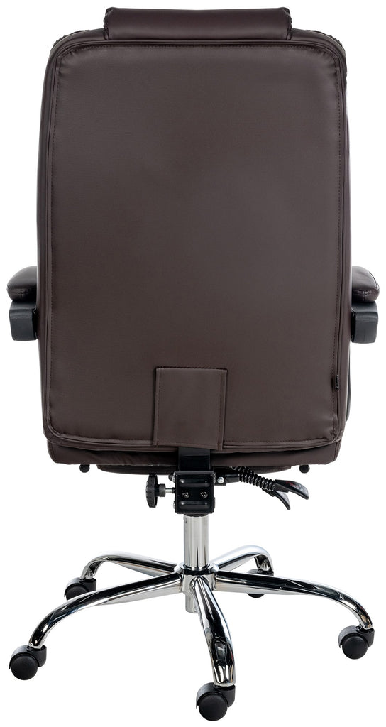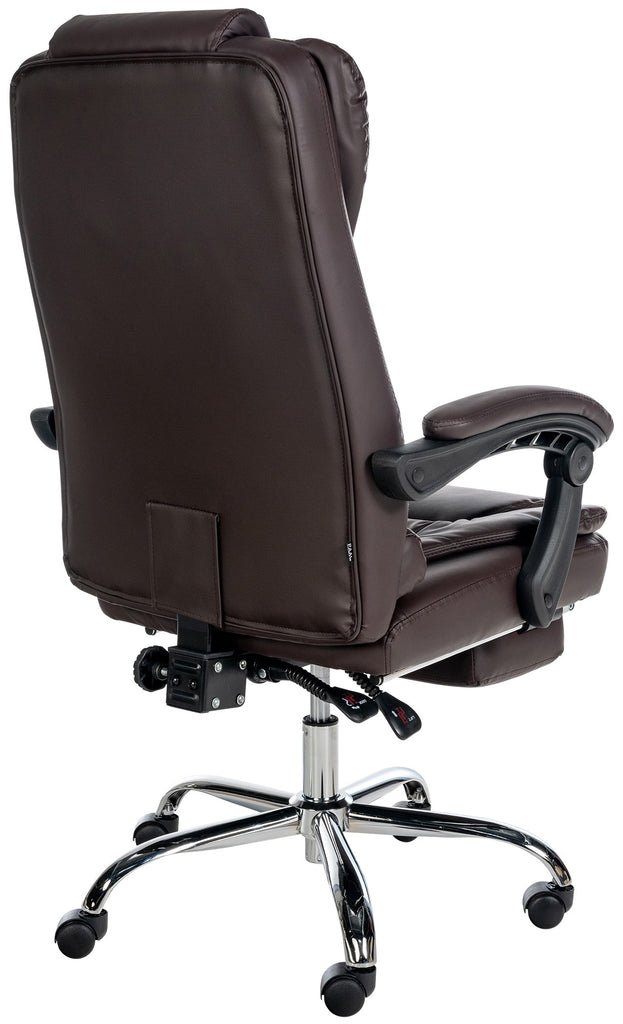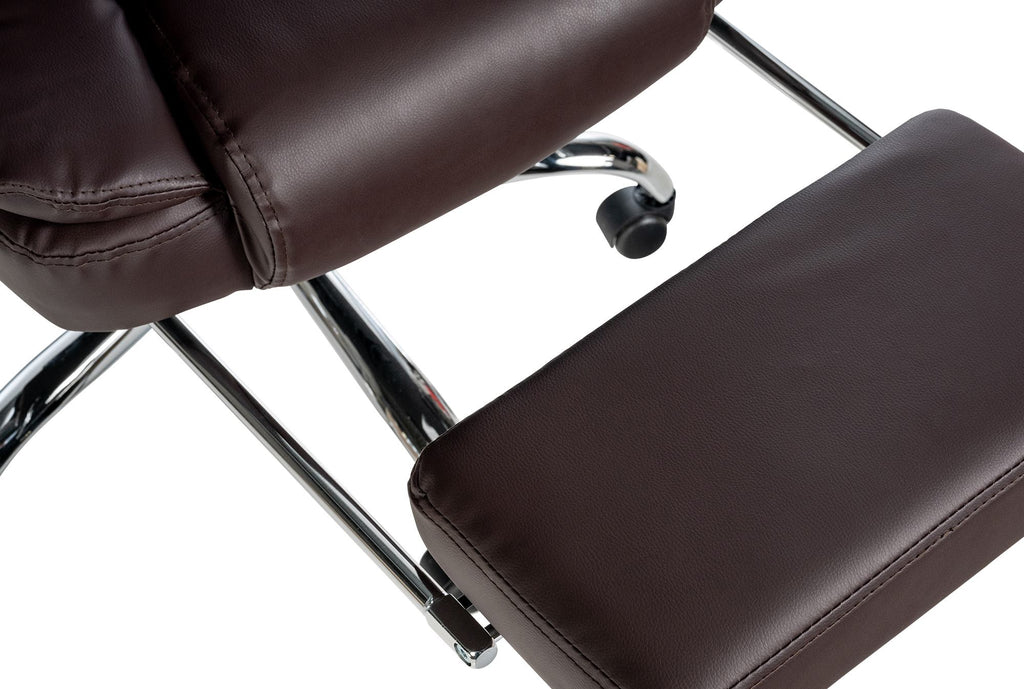 Fauteuil de bureau ergonomique généreusement rembourrée avec repose-pieds en PVC marron et métal chromé 10_0002565