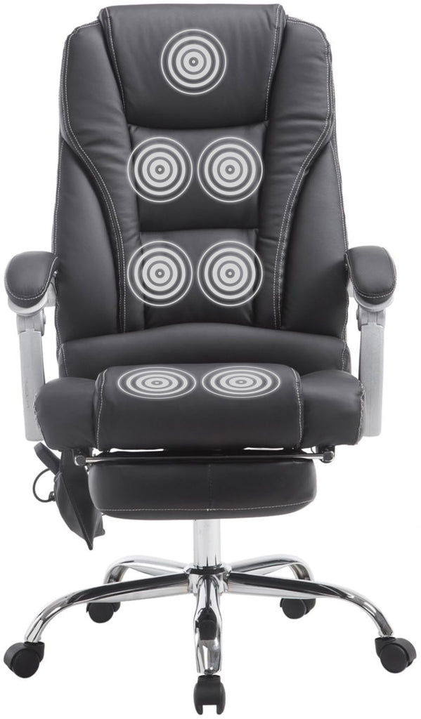 Fauteuil de bureau avec fonction massage repose-pieds dossier inclinable en PVC noir 10_0002577
