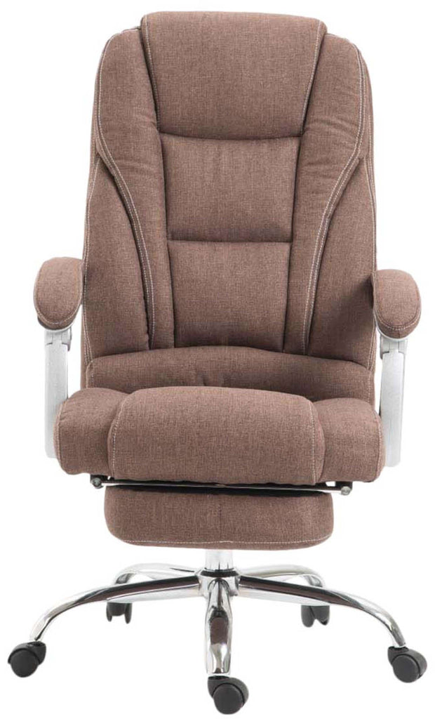 Fauteuil de bureau sur roulettes avec repose-pieds et hauteur ajustable pivotant en tissu marron 10_0002586