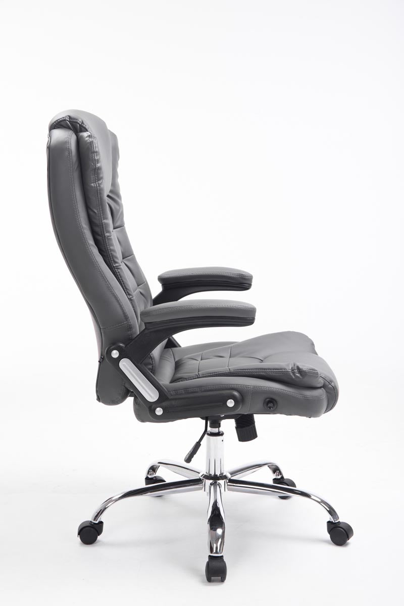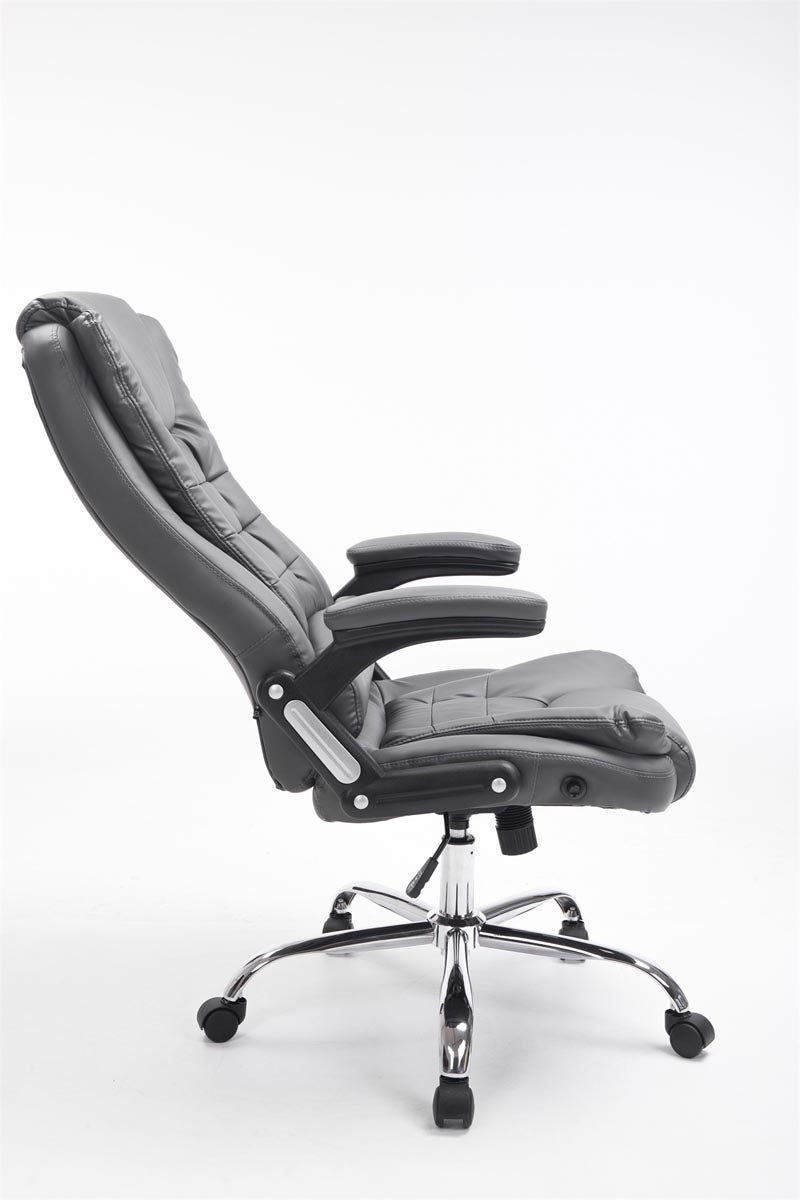 Fauteuil de bureau sur roulettes confortablement rembourrés avec accoudoirs en PVC gris et métal chromé 10_0002658