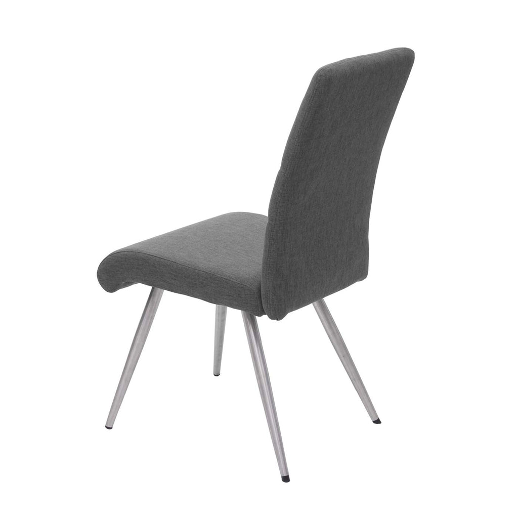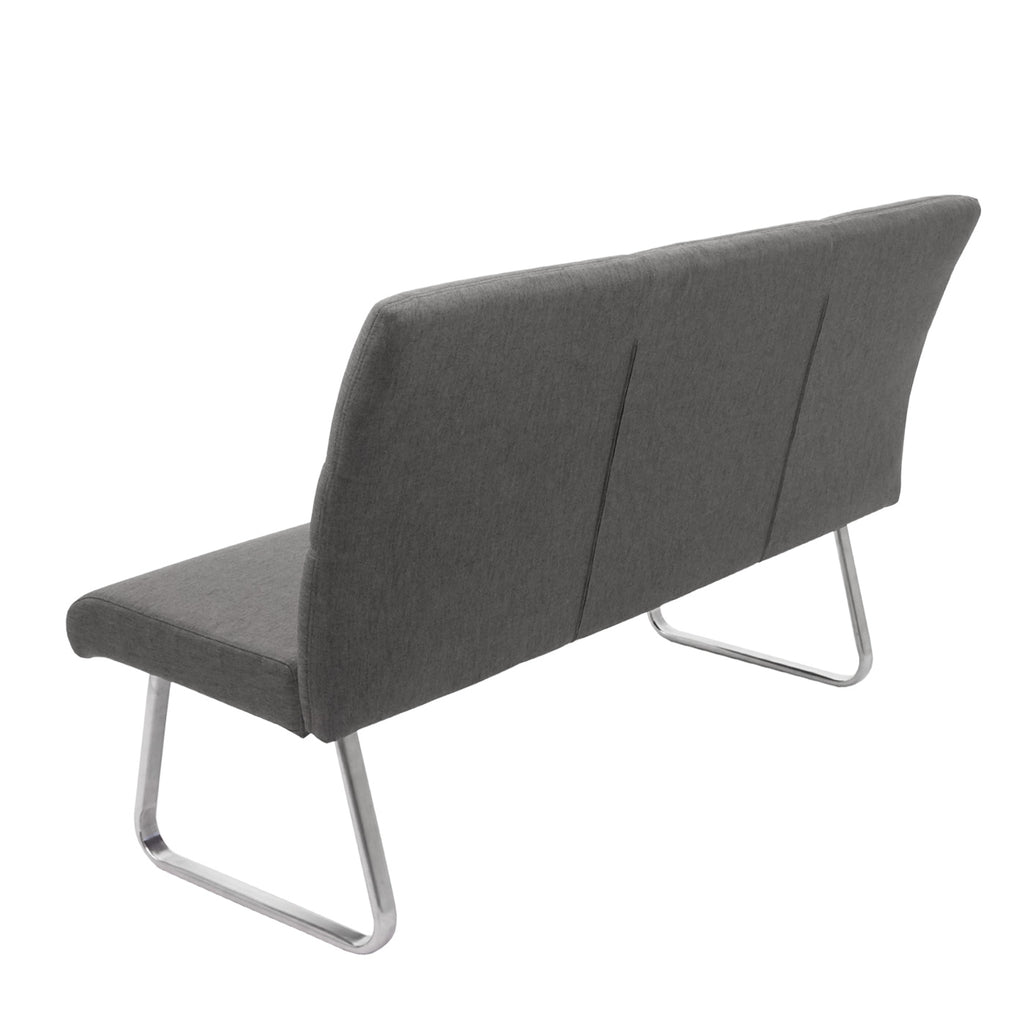 Lot de 4 chaises de salle à manger + banc 180 cm en tissu gris-marron et acier inoxydable 04_0007589