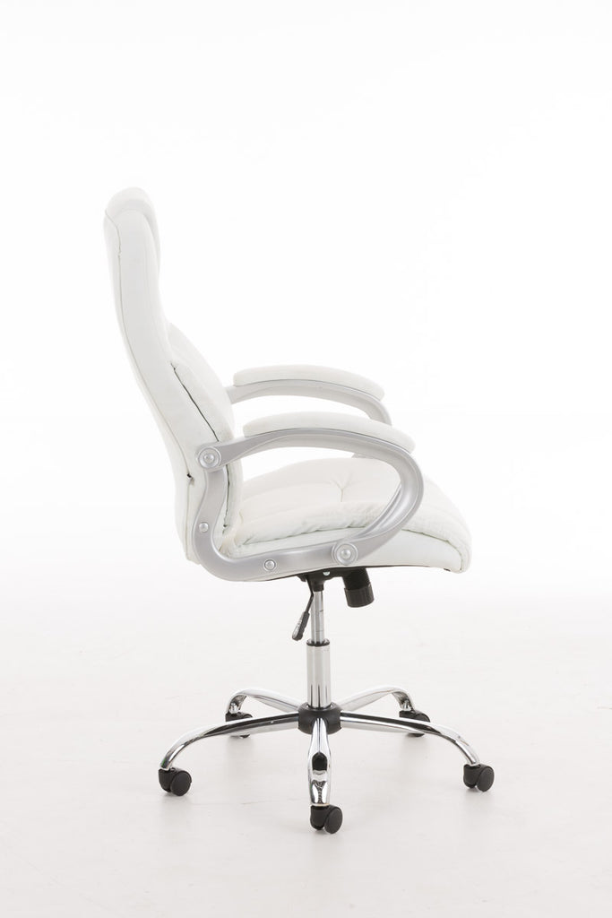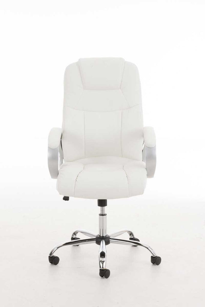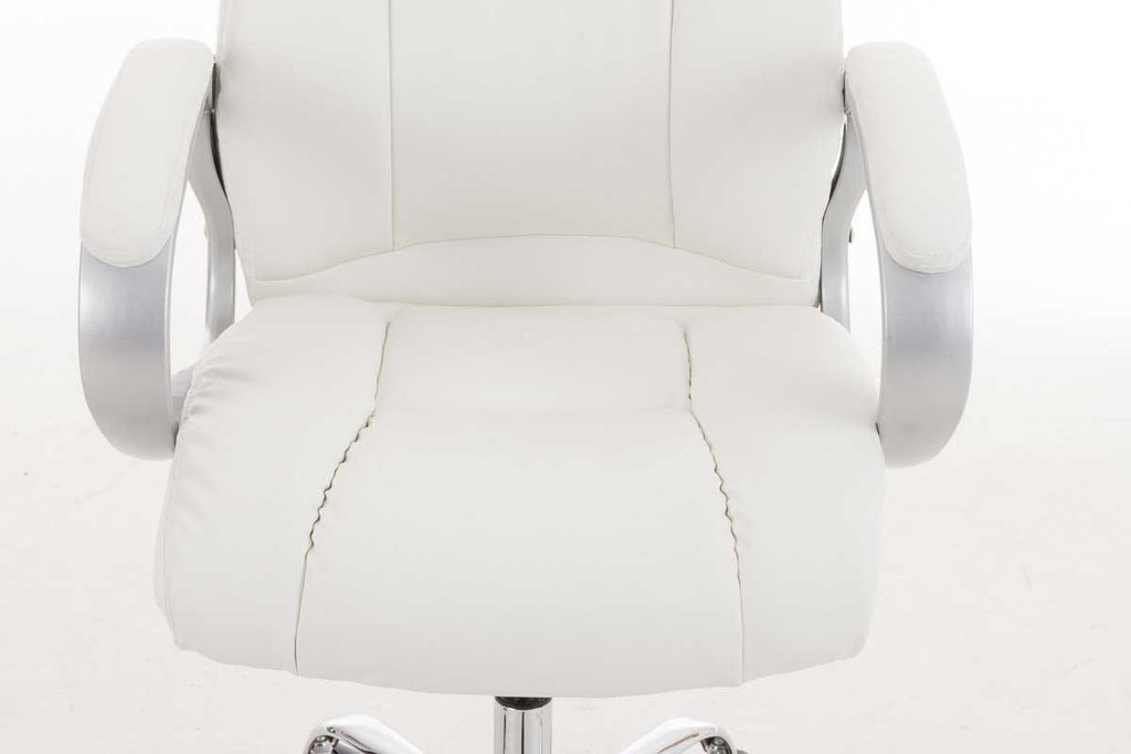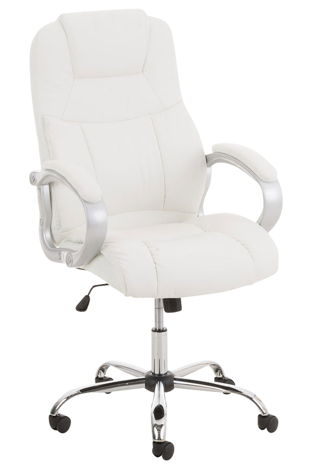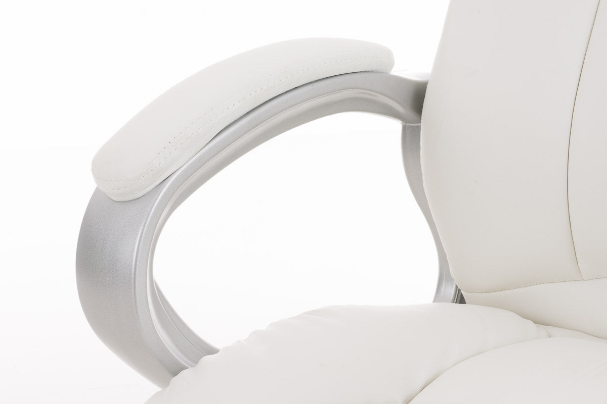 Fauteuil de bureau sur roulettes avec accoudoirs mécanisme à bascule en métal chromé PVC blanc 10_0002381