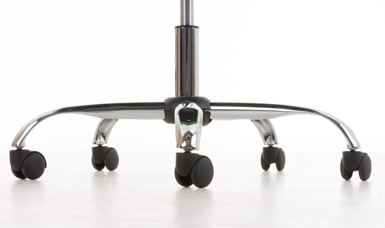 La chaise de bureau repose en toute sécurité sur cinq roulettes qui fonctionnent en douceur.