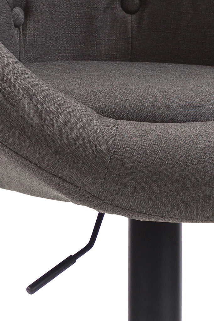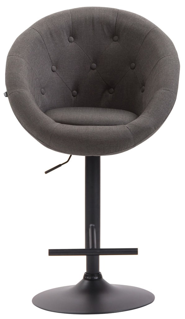 Tabouret de bar design moderne forme œuf capitonné avec repose-pieds en métal noir tissu gris foncé TDB10324