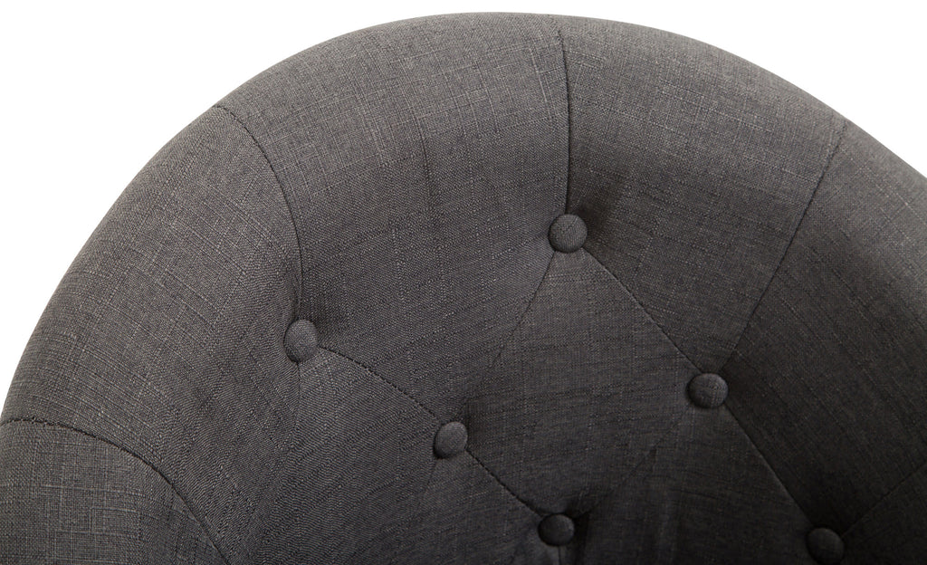 Tabouret de bar design moderne forme oeuf capitonné avec repose-pieds en métal noir tissu gris foncé