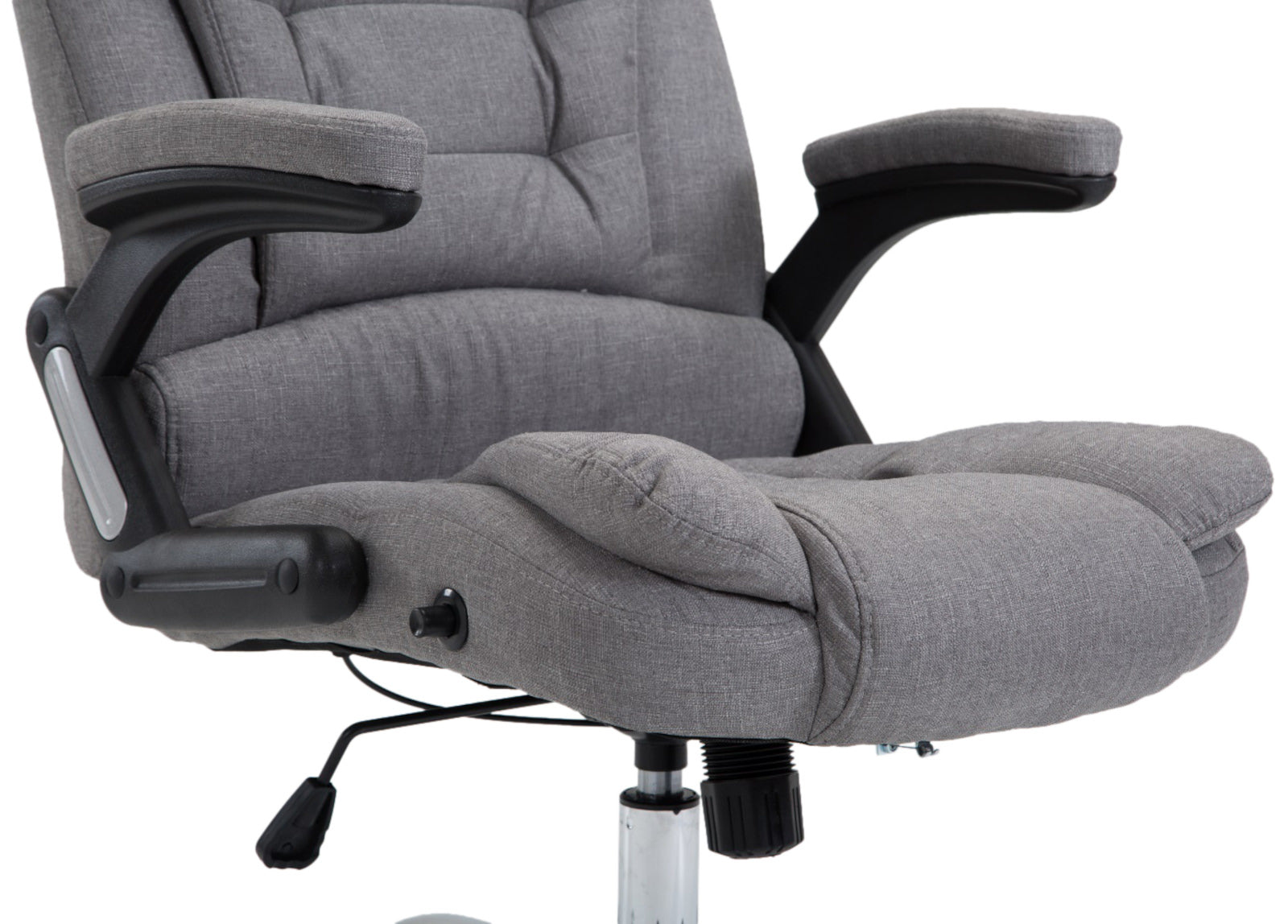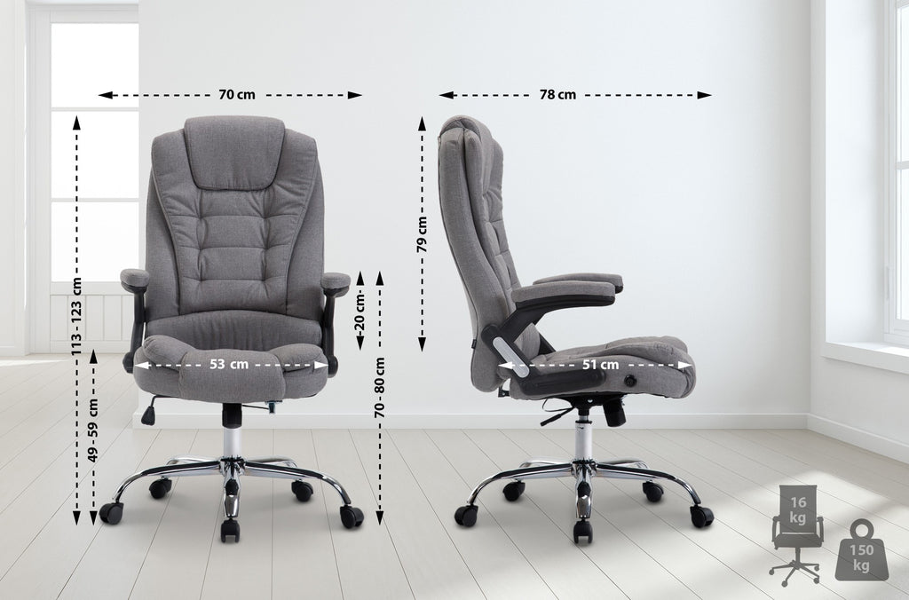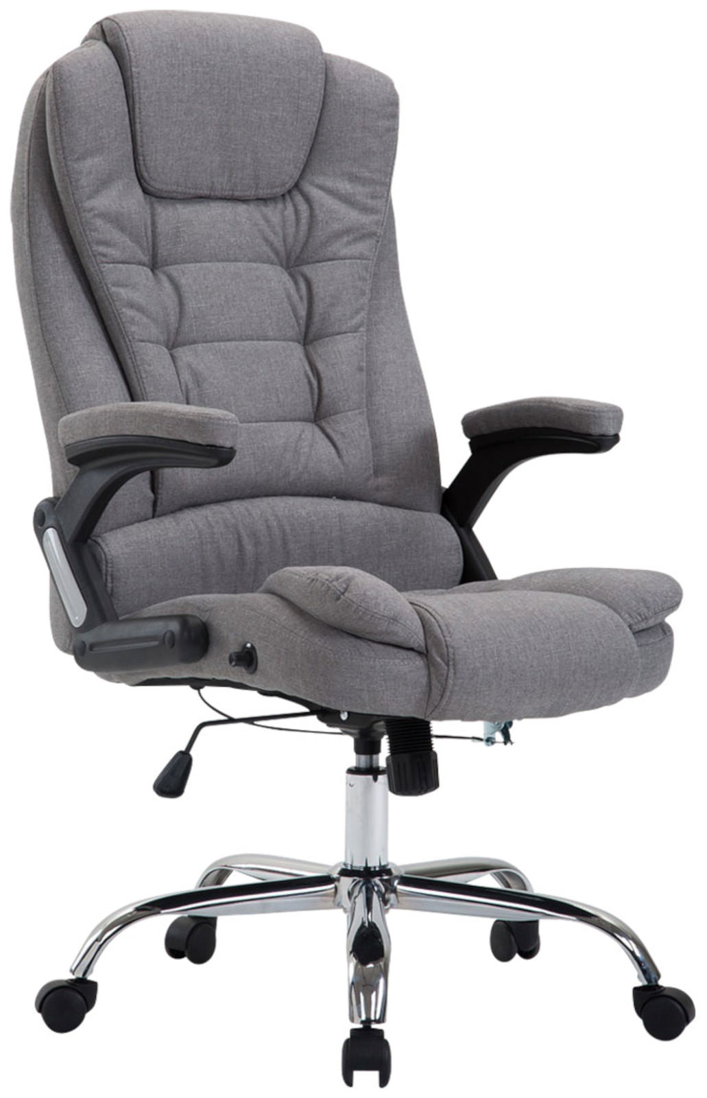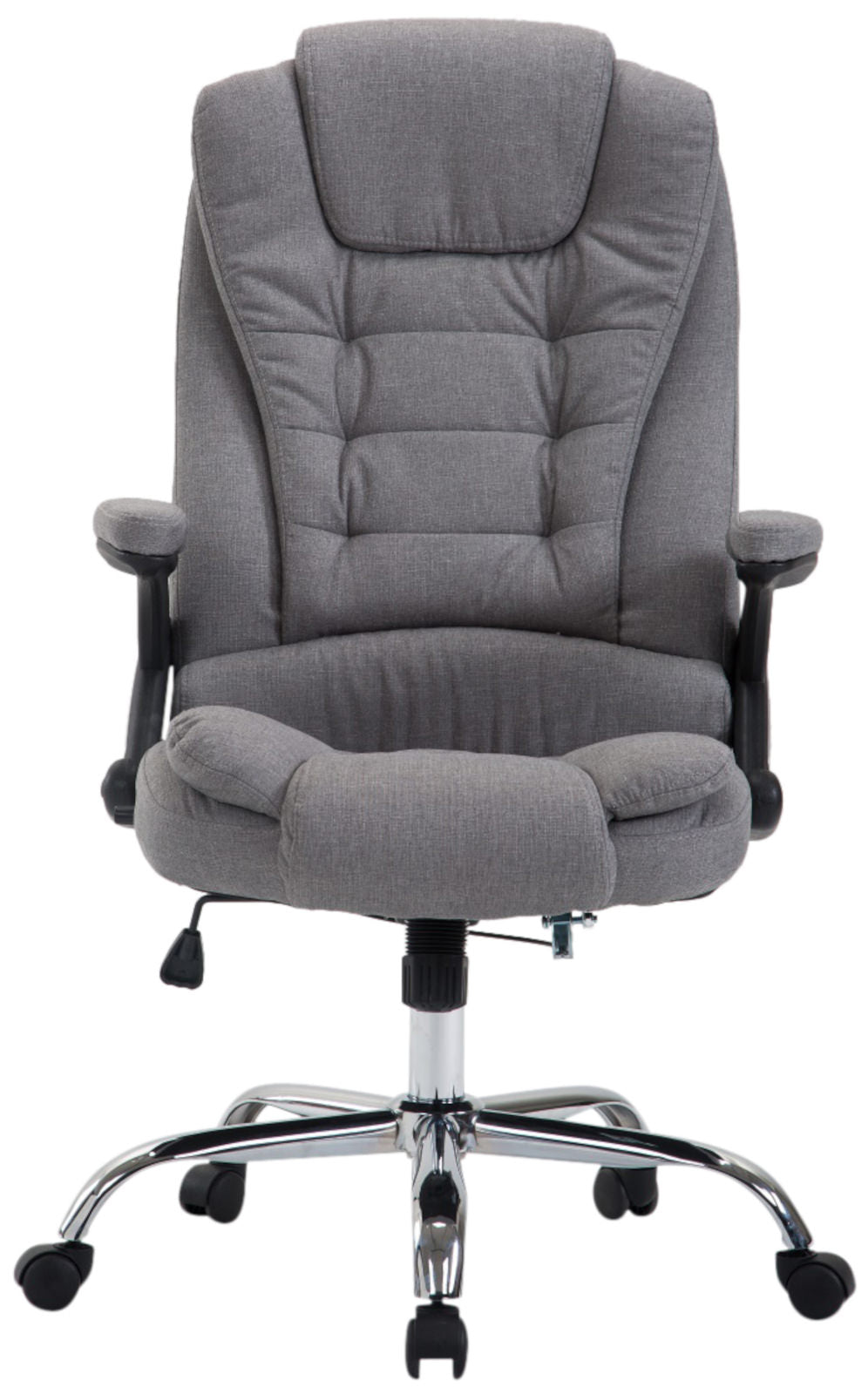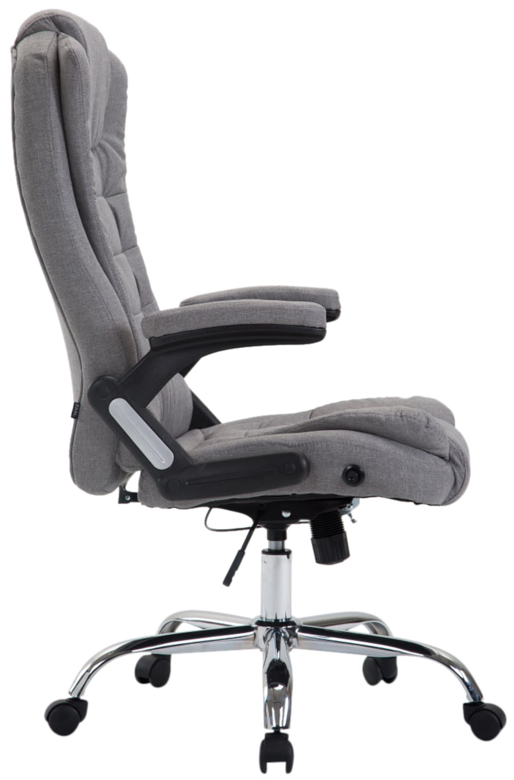Fauteuil de bureau XXL sur roulettes confortablement rembourrés avec accoudoirs en tissu gris et métal chromé 10_0002665