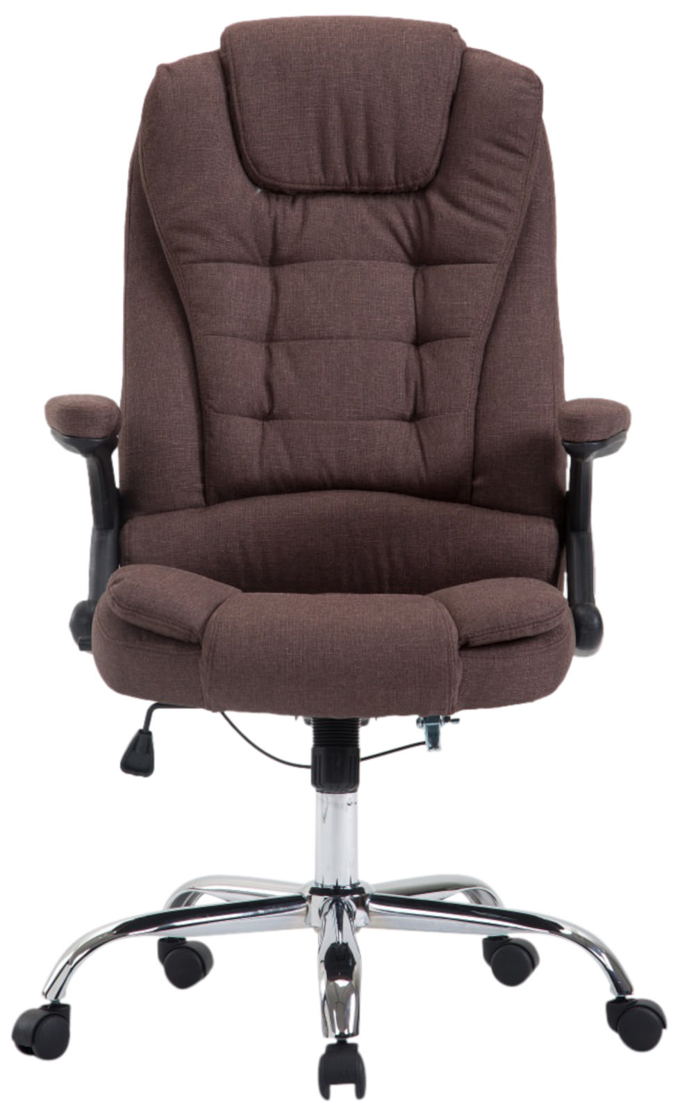 Fauteuil de bureau XXL sur roulettes confortablement rembourrés avec accoudoirs en tissu marron et métal chromé 10_0002662