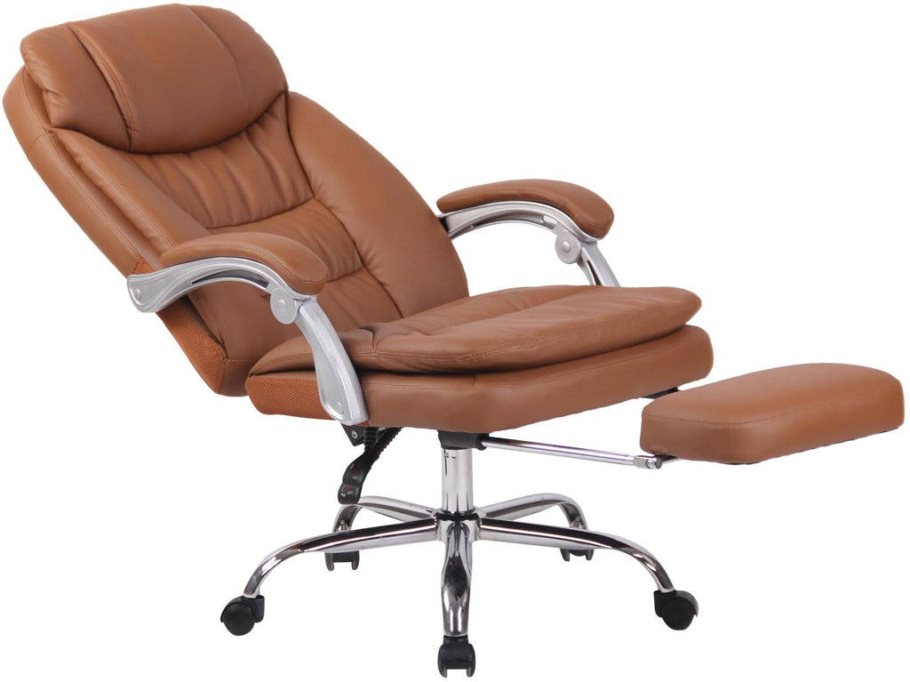 Fauteuil de bureau sur roulettes XL charge max 160 kg avec repose-pied ajustable en similicuir marron clair et métal 10_0007026