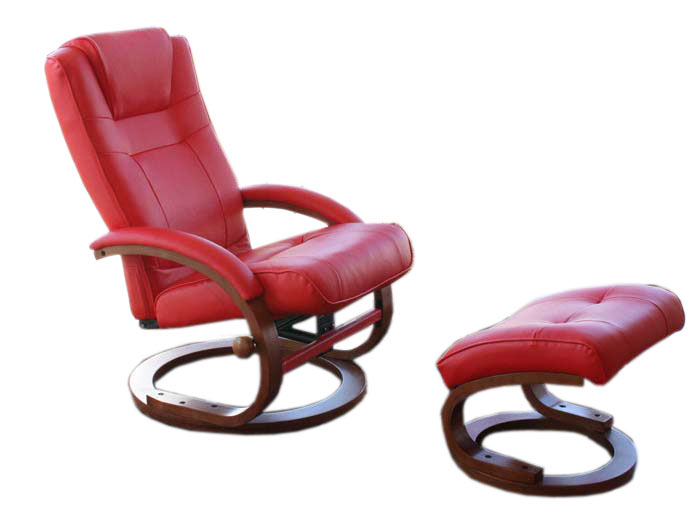 Fauteuil TV fauteuil relaxation pivotant avec repose-pieds en PVC rouge cadre en bois 04_0006897